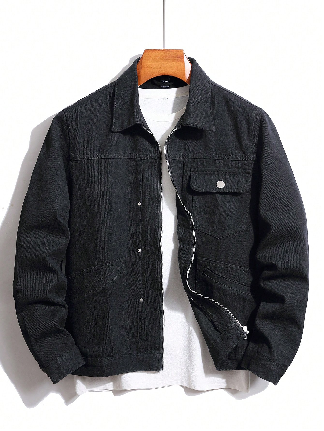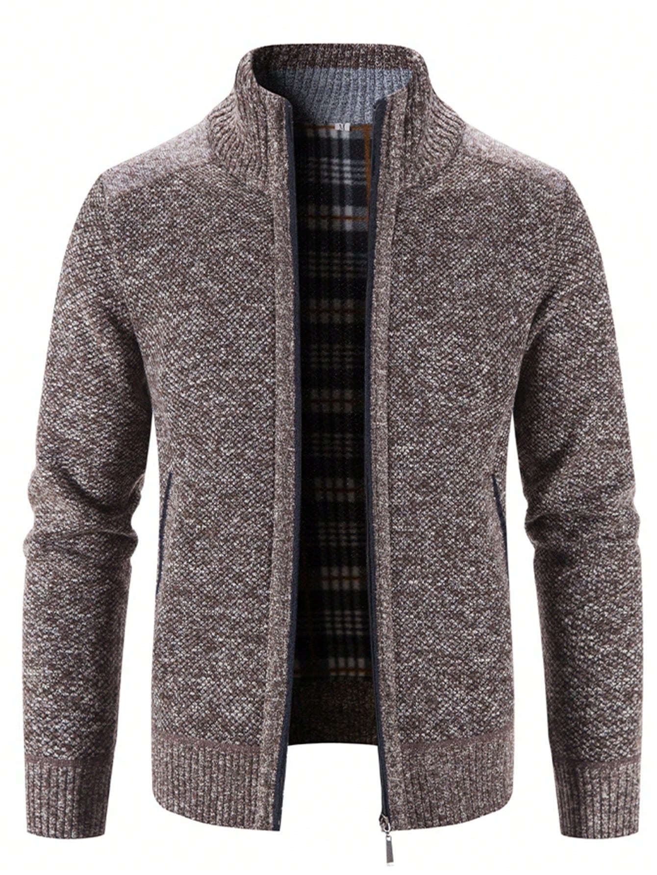 Men Solid Drawstring Pocket Detail Thermal Lined Sweatshirt