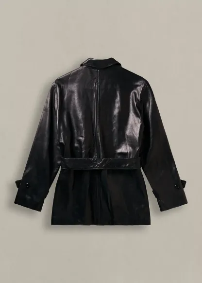 1990 Belted Leather Jacket - Size 10