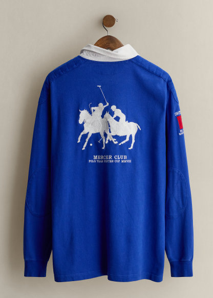 - “R.L. Polo Club,” two mallets, and a polo ball embroidered at the center front. Two polo players and “Mercer Club Polo Team Winter Cup” embroidery at the center back.