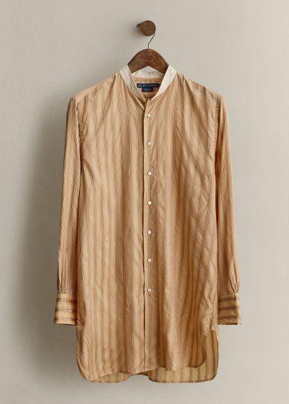 - Shirring at the back yoke. Gusseted shirttail hem.