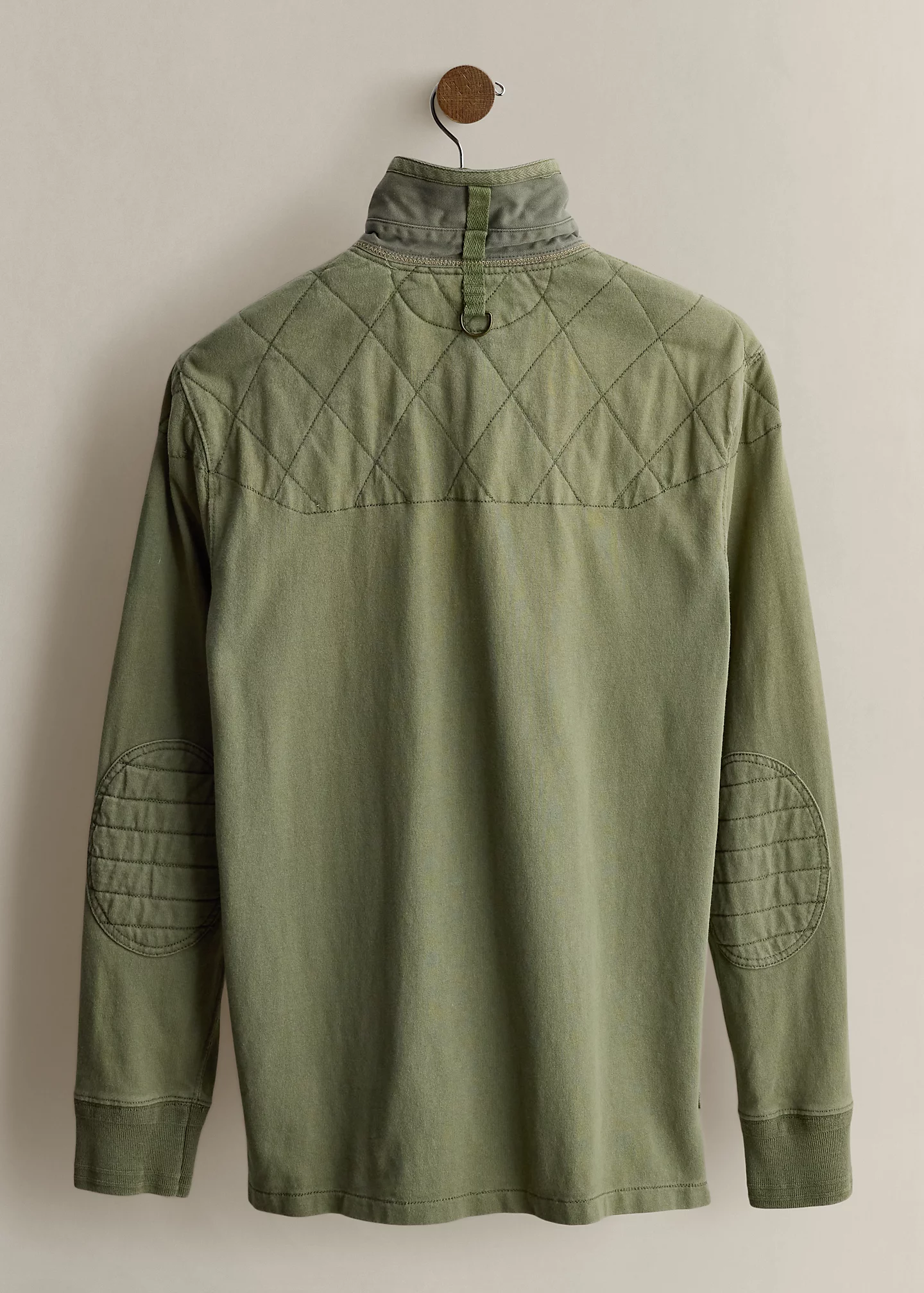 - Long sleeves with quilted elbow patches. Ribbed cuffs. Diamond-quilted front and back yoke.