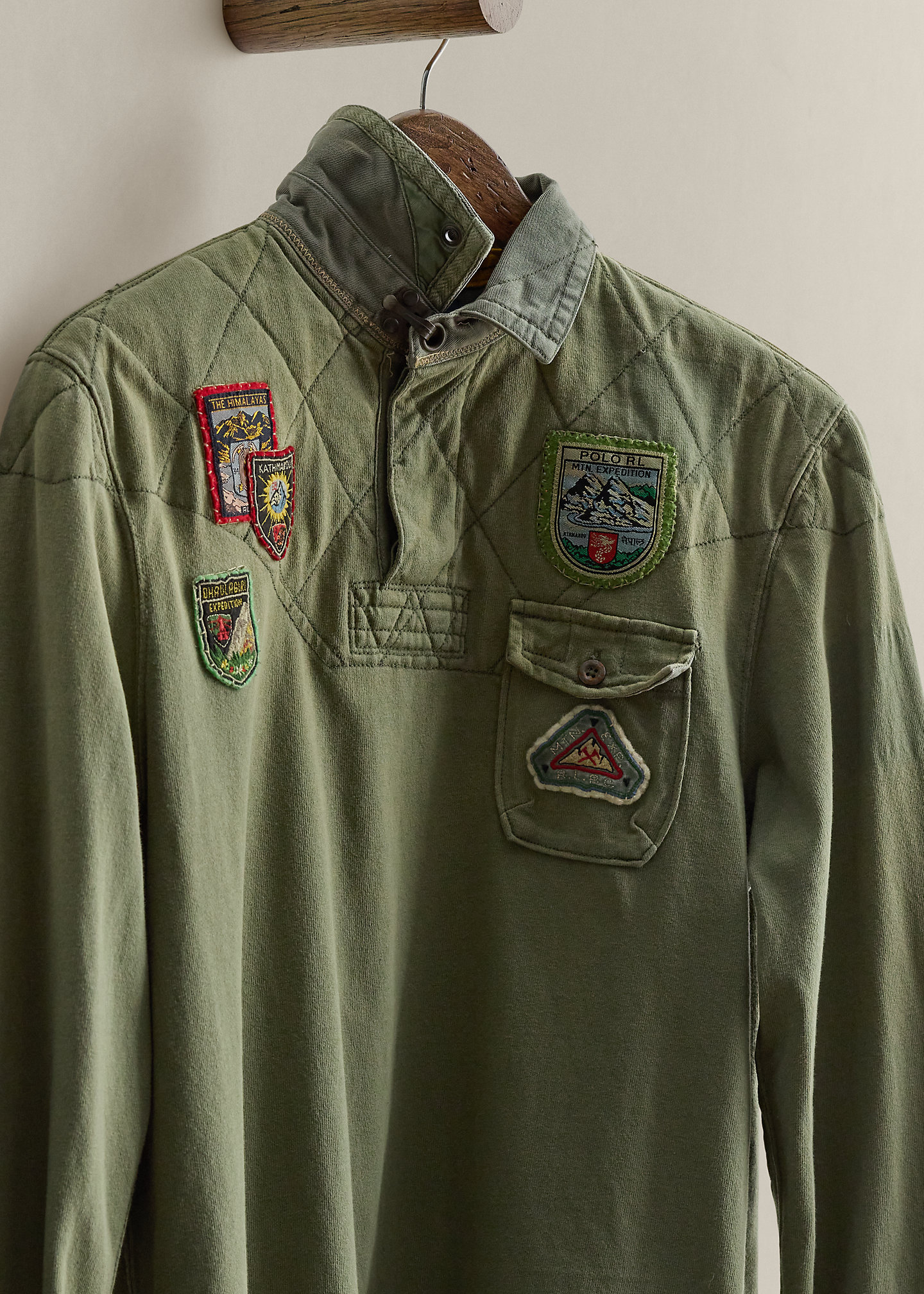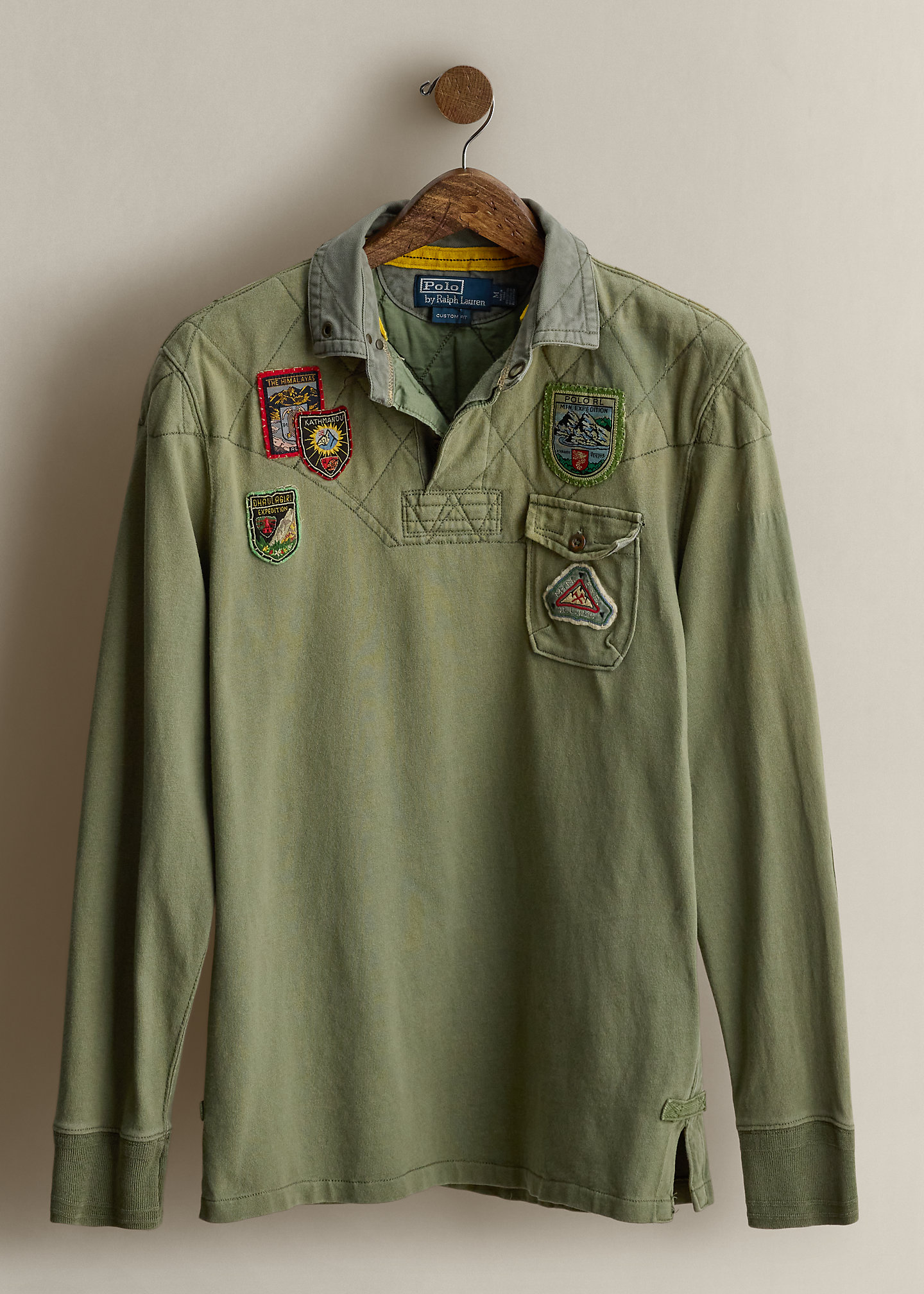 - Left chest buttoned pocket. Expedition-inspired patches at the chest. Even vented hem.