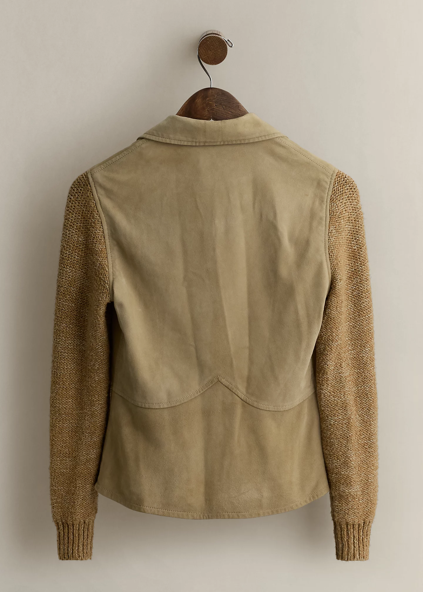 - Long sweater sleeves with rib-knit cuffs.