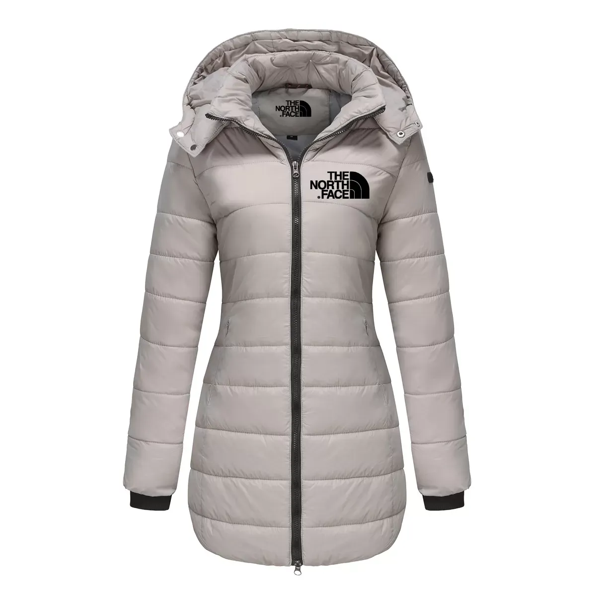 Women's cotton padded clothes, medium length, slim fitting cotton padded jacket, warm, solid hooded cotton padded clothes