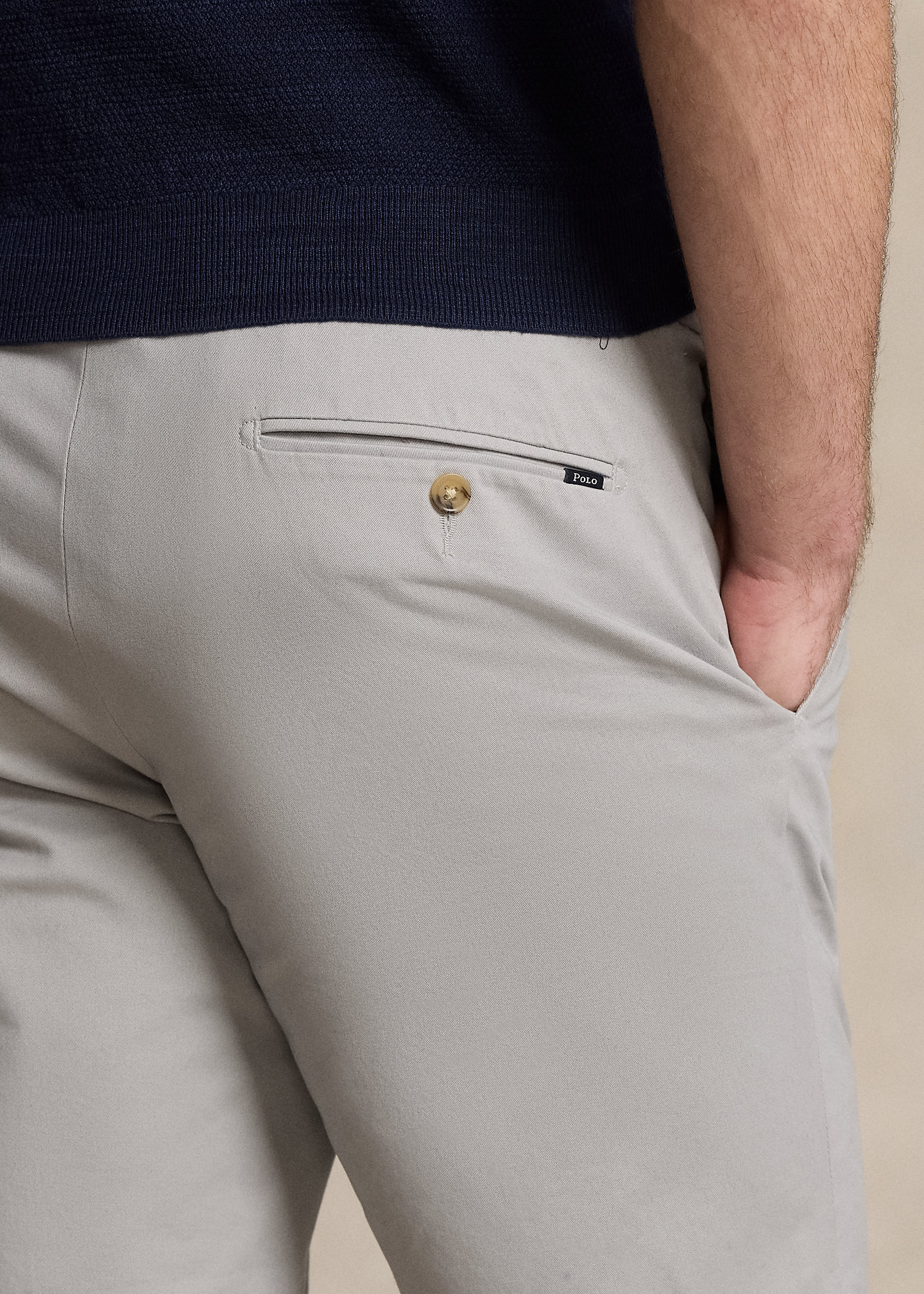 - "Polo" label at the back right pocket.