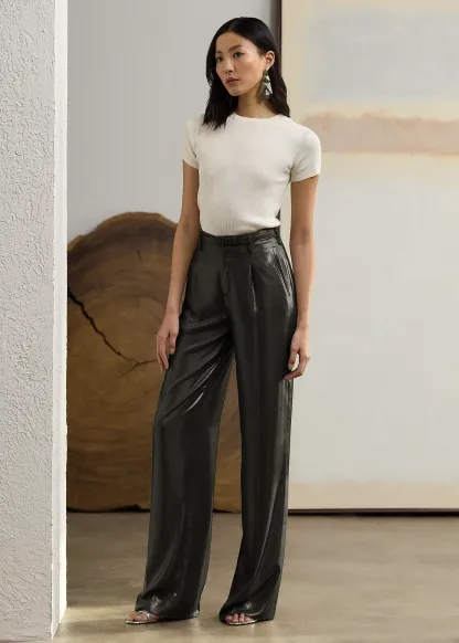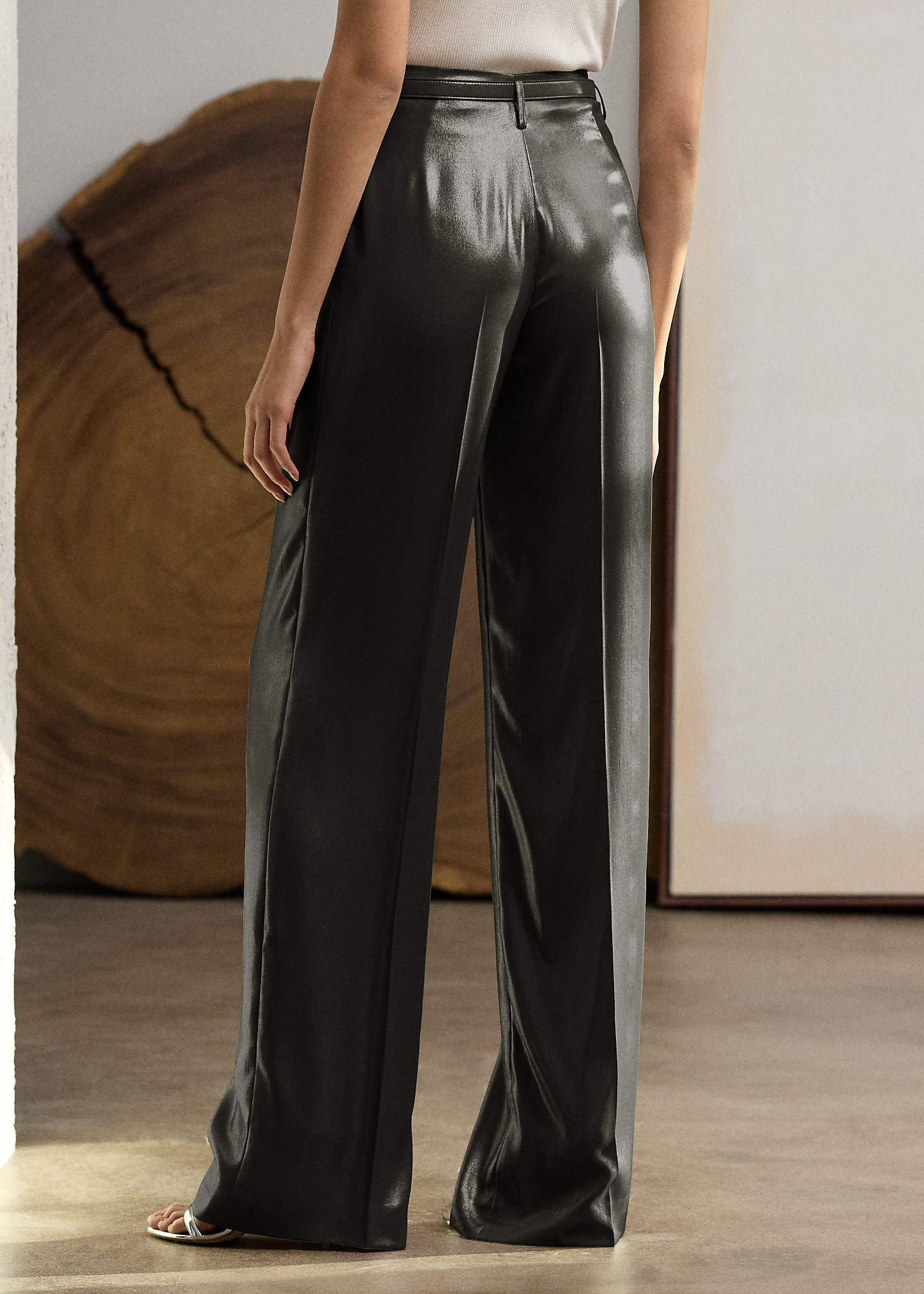 - High rise. Wide-leg silhouette. Intended to hit below the ankle.