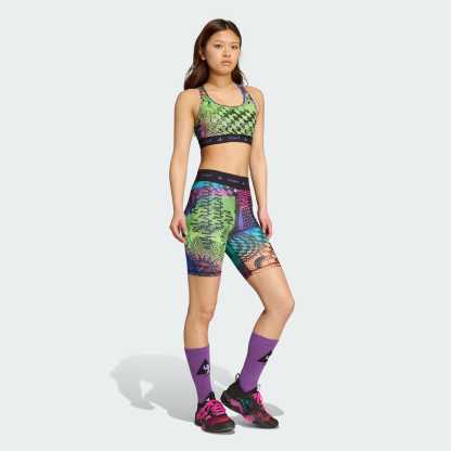 A celebration of unity and individuality. These adidas biker shorts fuse sporty style with '90s club culture. Created with Jeremy Scott, they feature a print that blends vibrant colours with the flashing disco lights of a nightclub. CLIMACOOL wicks and disperses sweat for cool, dry and distraction-free performance.CLIMACOOL helps you manage sweat with materials that wick and manage sweat quickly. Its fast-dry fibers give you a fresh-skin feel.
