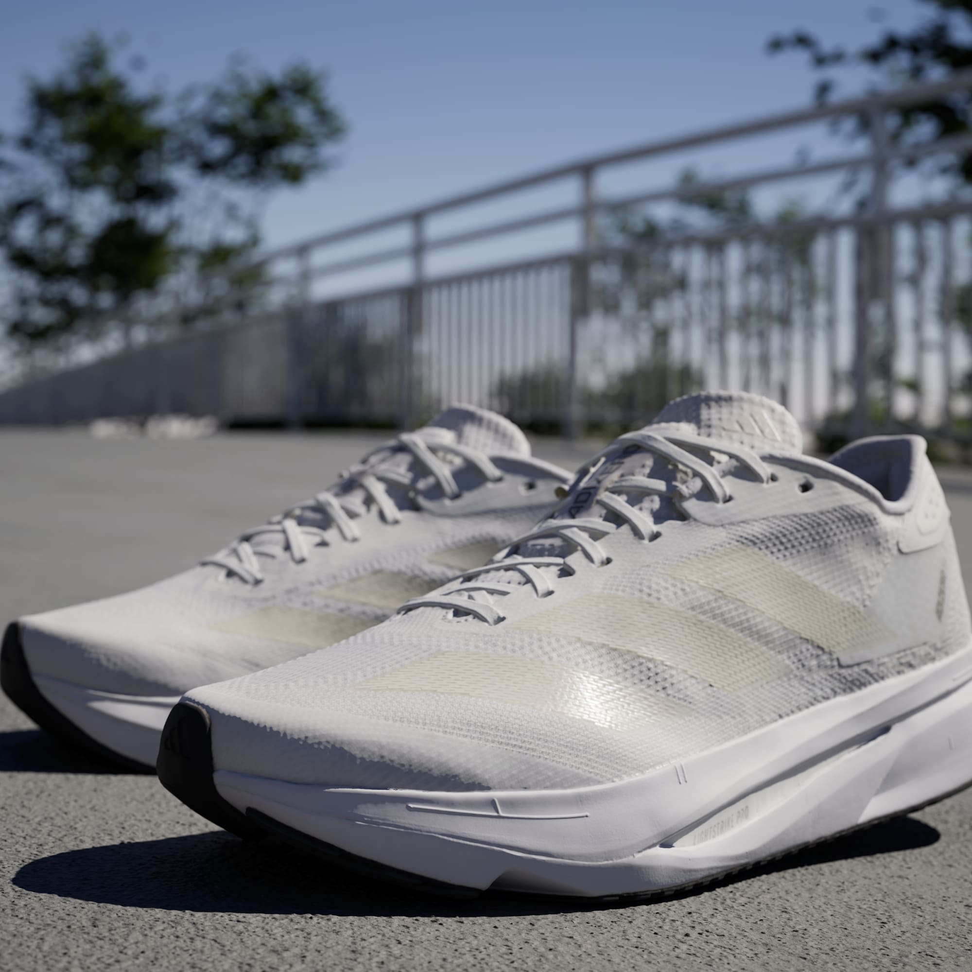Experience the thrill of breaking personal records in a shoe that's as fast as you are. These adidas Adizero running shoes are equipped with responsive Lightstrike Pro, super-light cushioning that delivers energy return for next-level speed. The engineered mesh upper provides breathability and targeted support where you need it most to keep you flying to the finish. This product features at least 20% recycled materials. By reusing materials that have already been created, we help to reduce waste and our reliance on finite resources and reduce the footprint of the products we make.