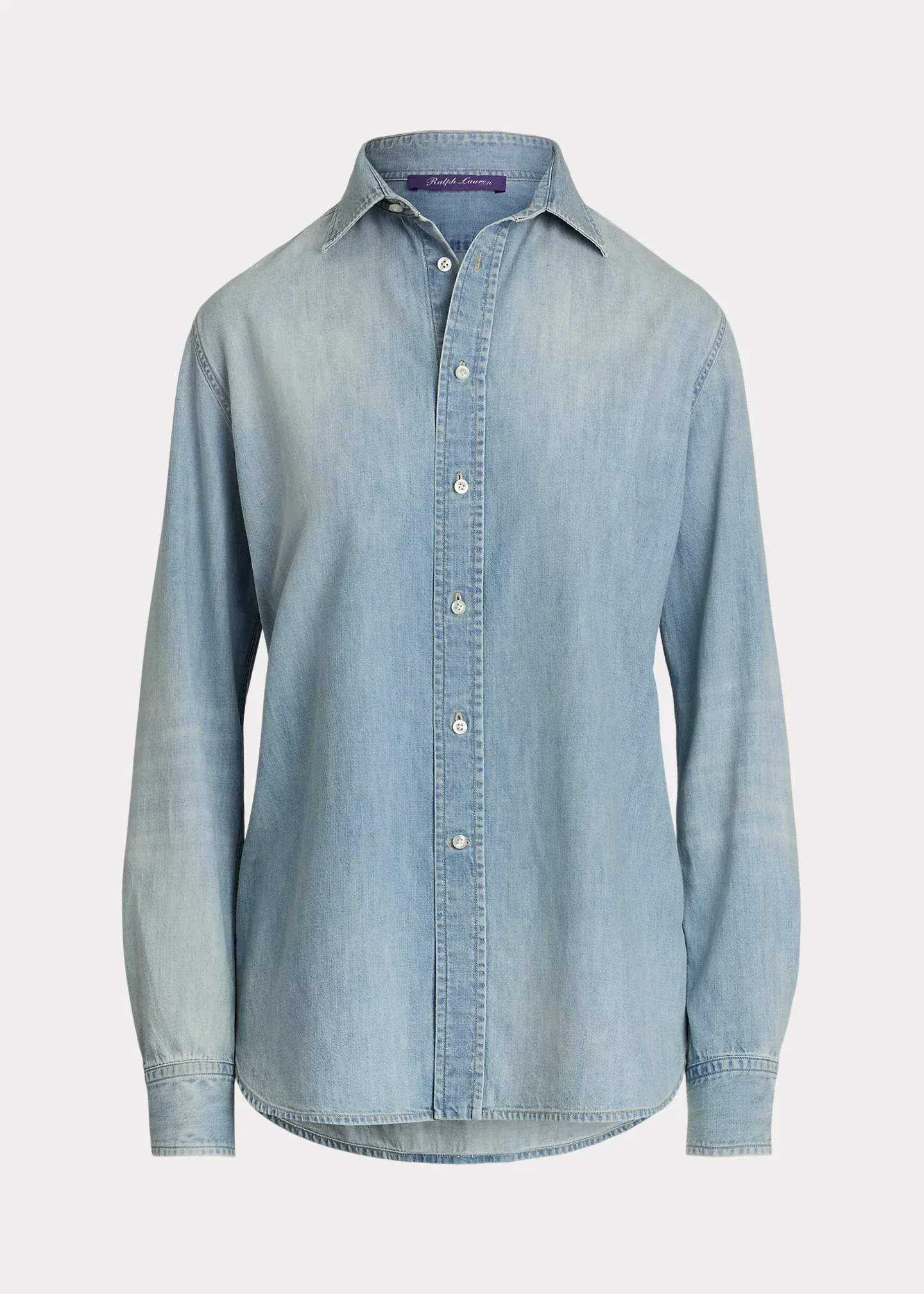 - Spread collar. Buttoned placket. Genuine mother-of-pearl buttons.