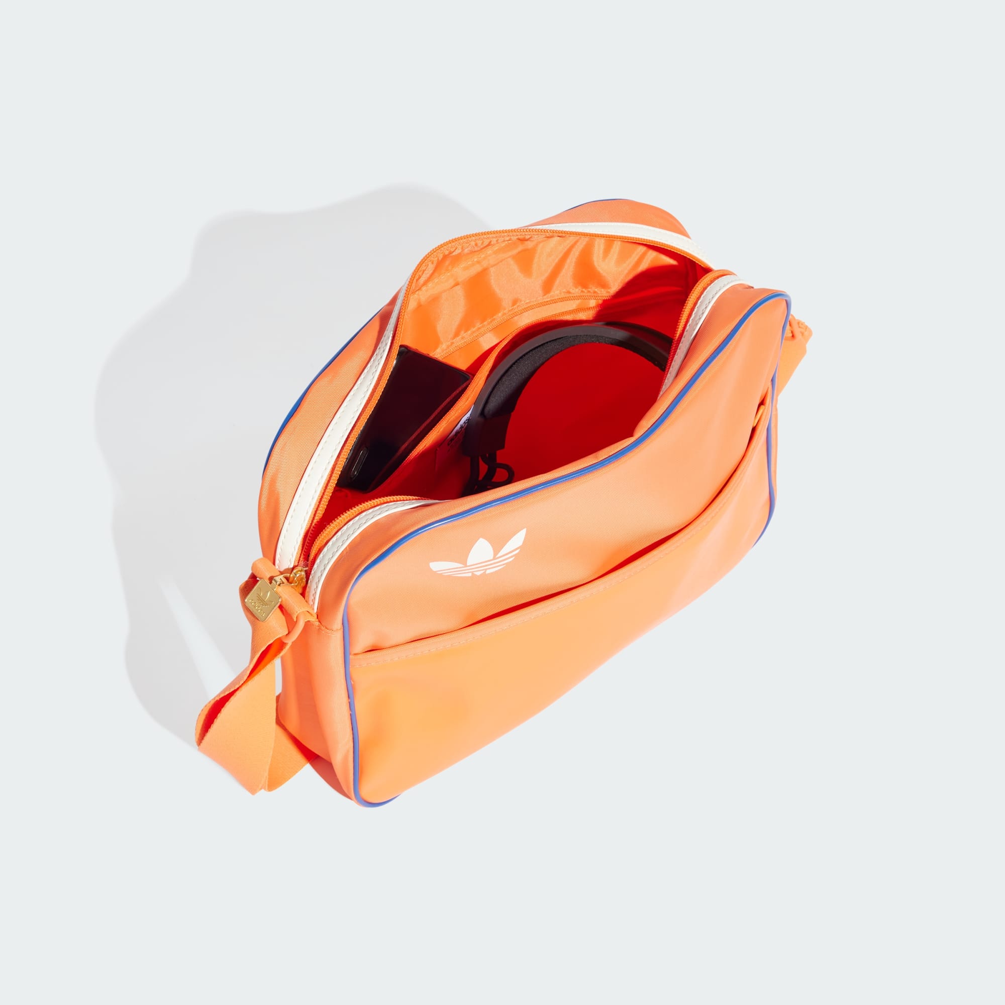A heritage silhouette in a smaller, more contemporary size, this adidas Airliner bag is made of a mix of faux leather and durable polyester. With a front zip pocket, colored piping and overlays, it has a modern yet sporty look. The shoulder strap makes it easy to carry however you like.