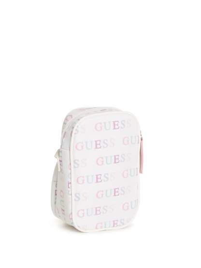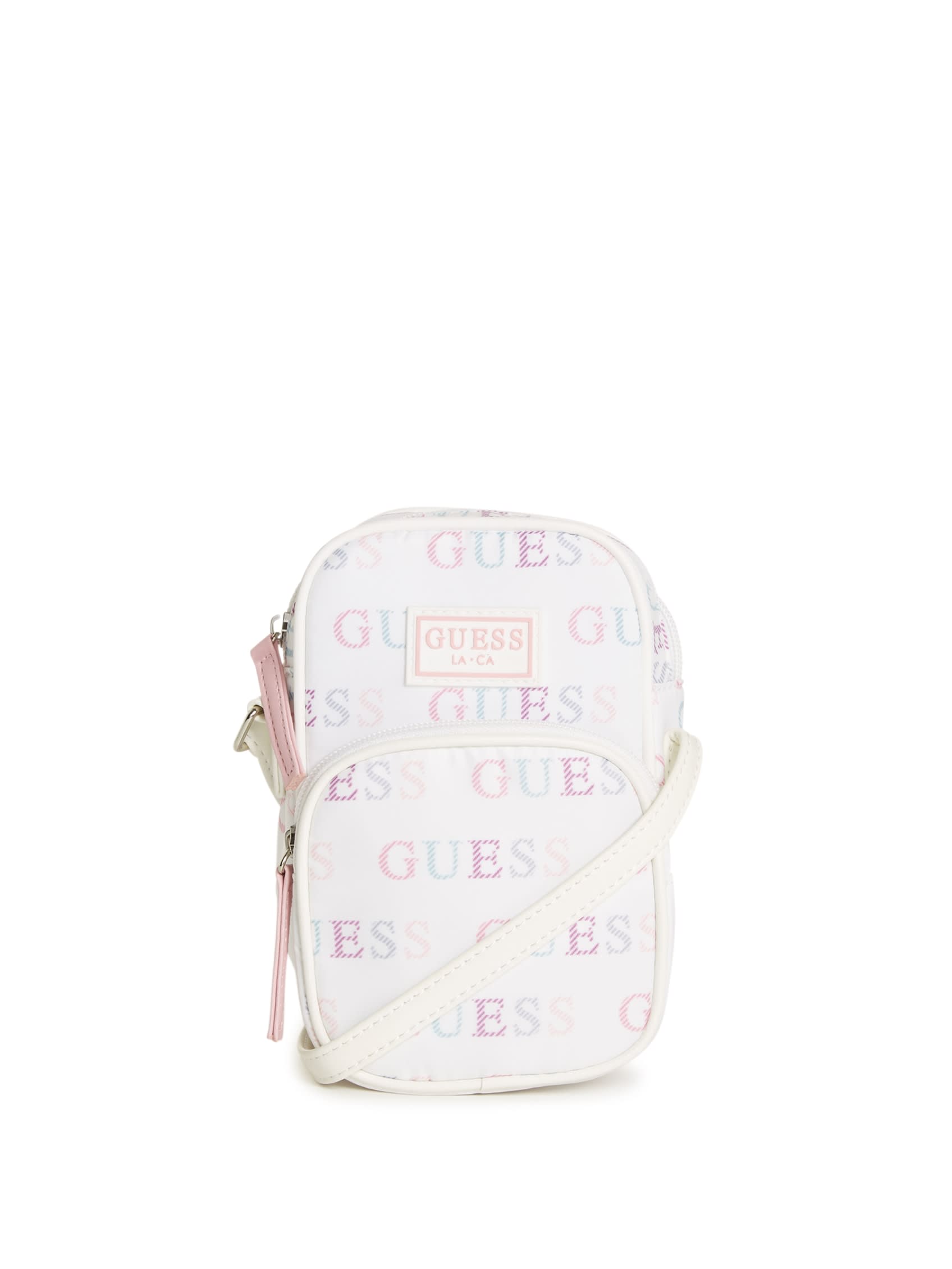 An ideal gift for the little one in your life, this small nylon crossbody features an allover logo print, exterior zip pocket and adjustable faux-leather strap.