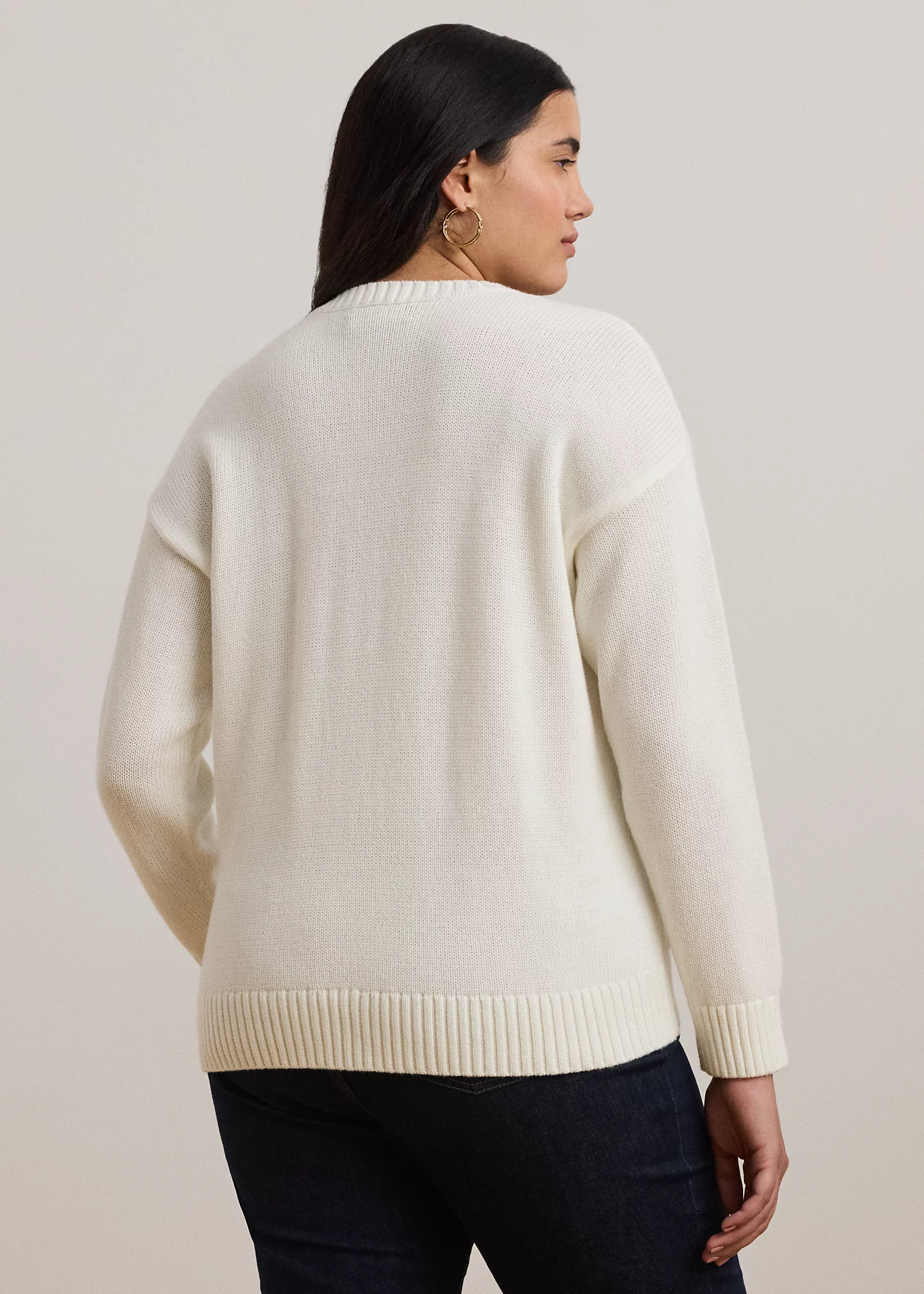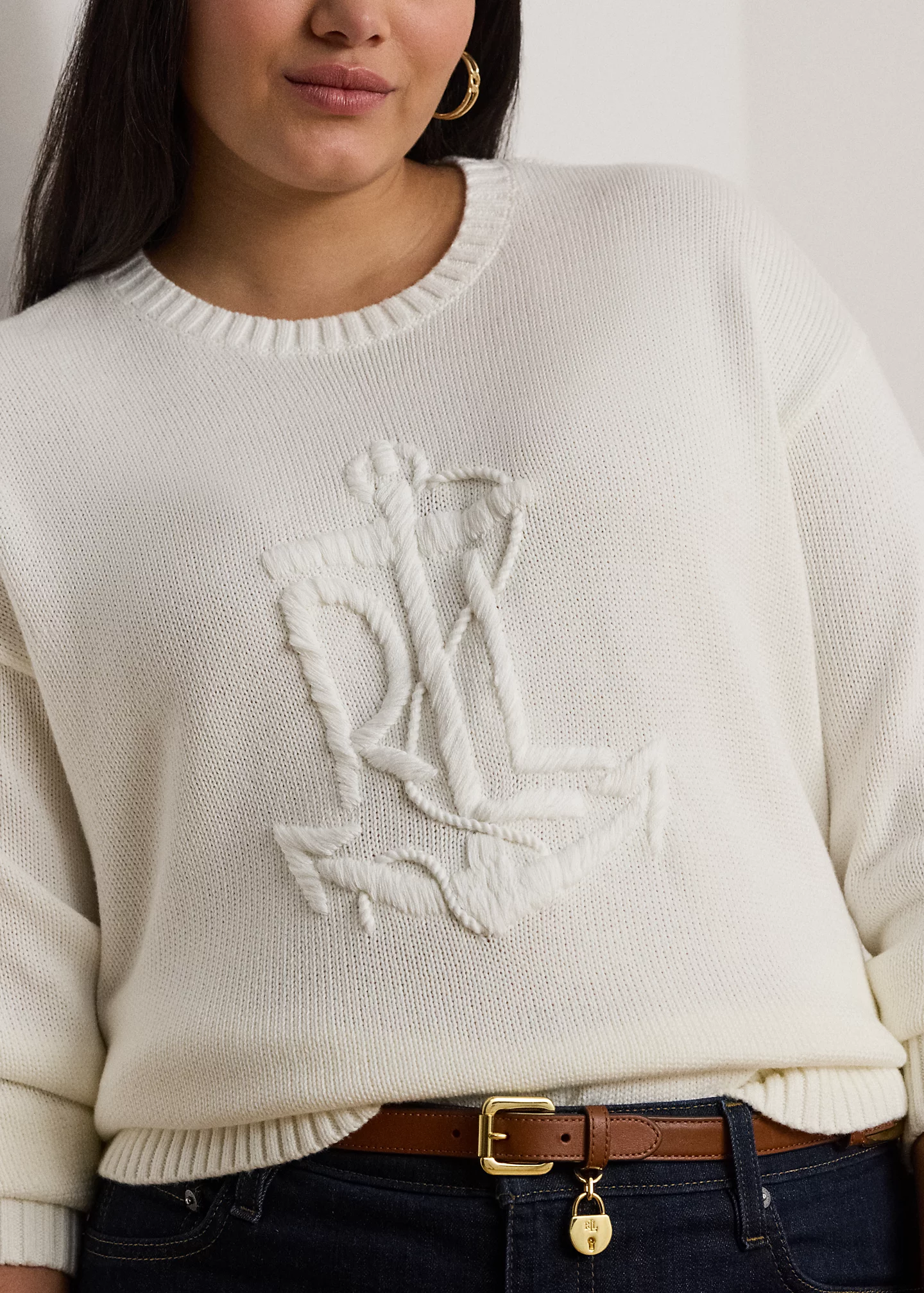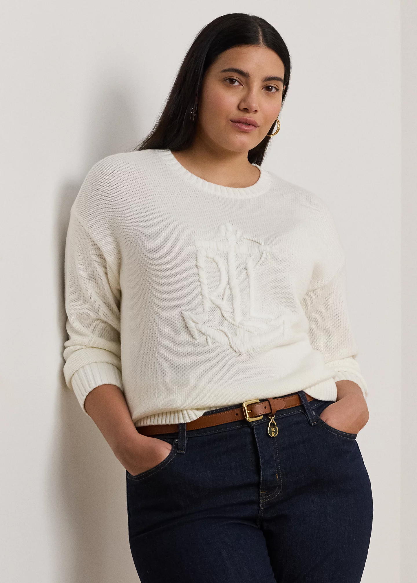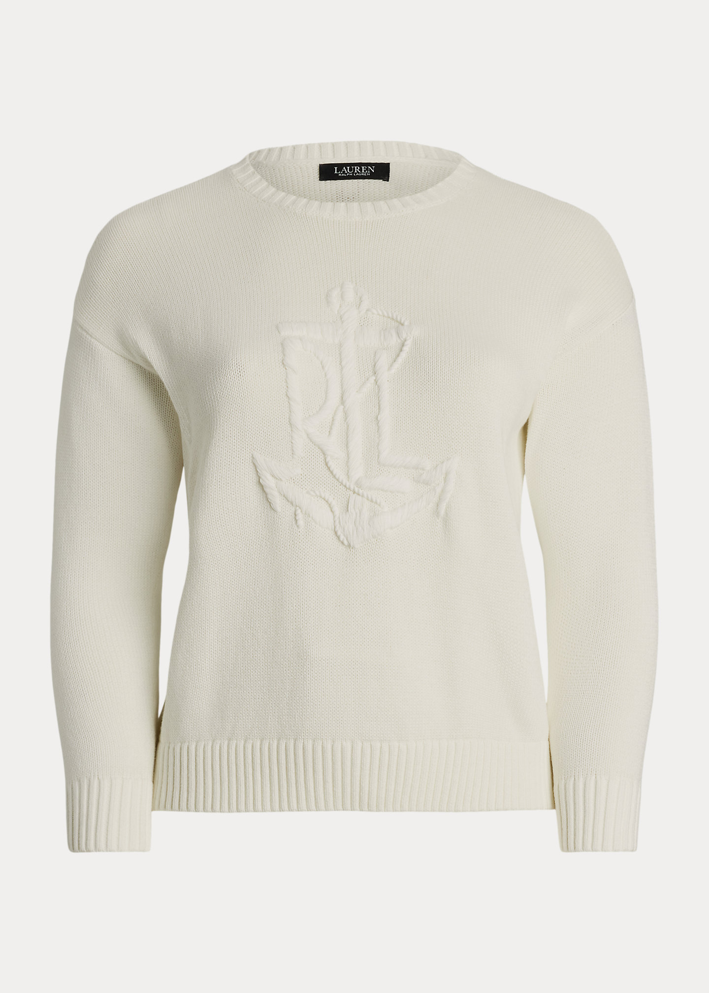 - Long sleeves with ribbed cuffs. Dropped shoulders. Hand-embroidered, oversize “LRL” logo with an anchor at the front. Ribbed hem.