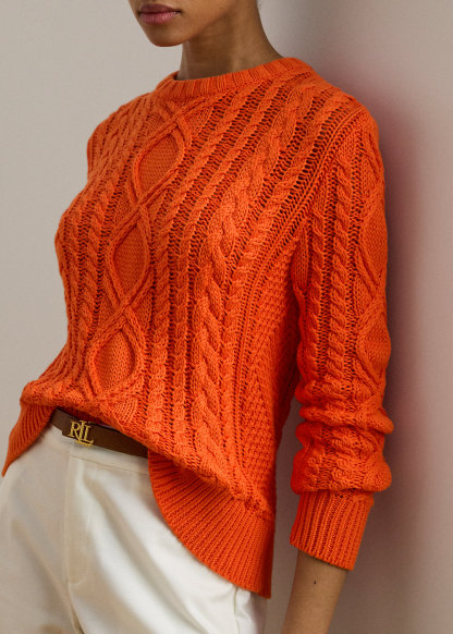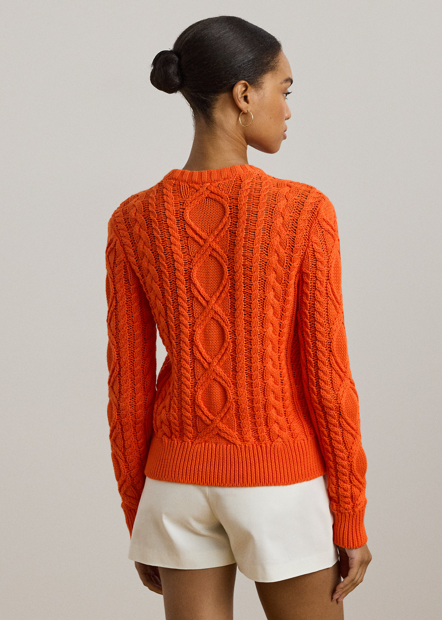 Aran-Knit Cotton-Blend Crewneck Sweater
