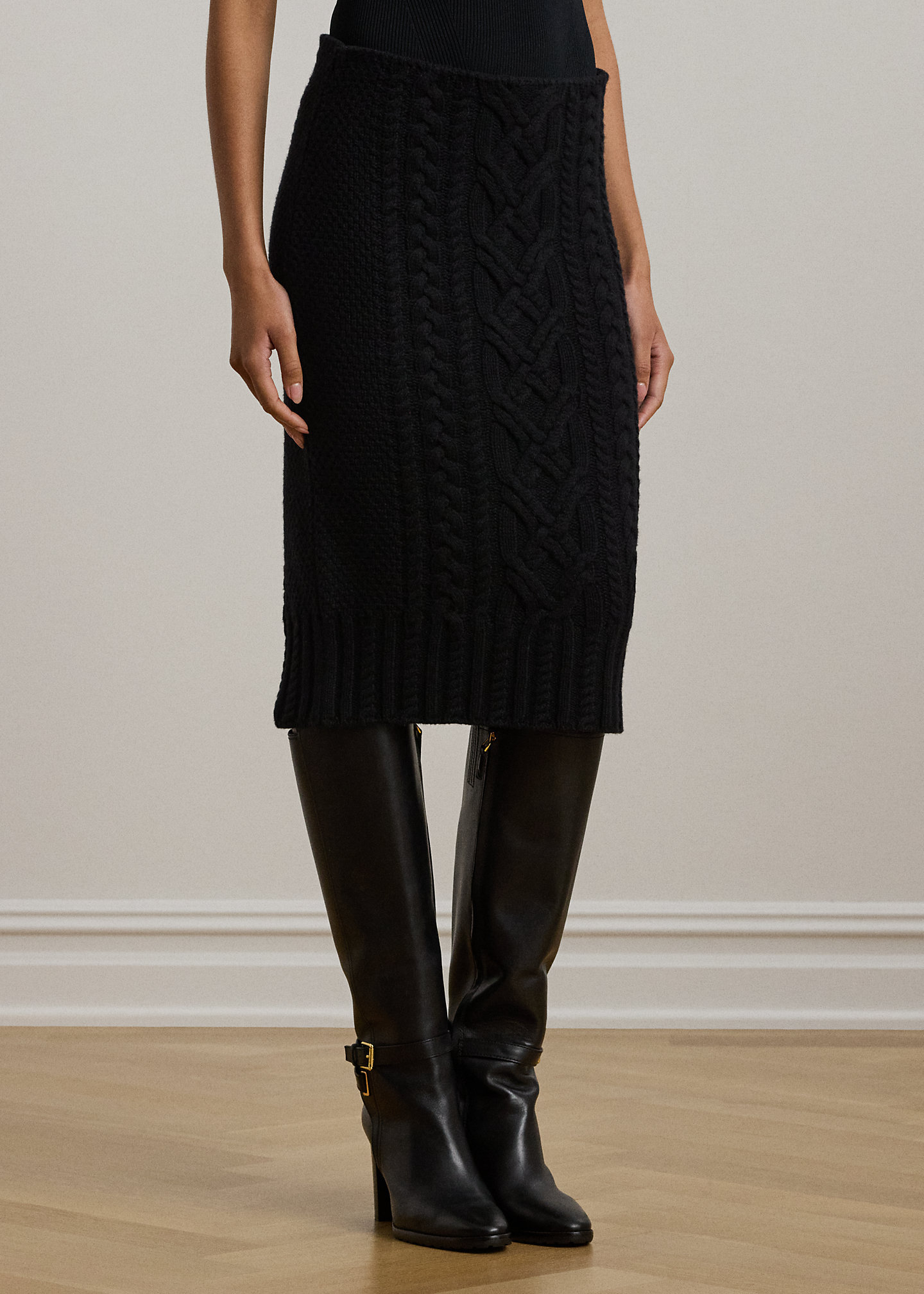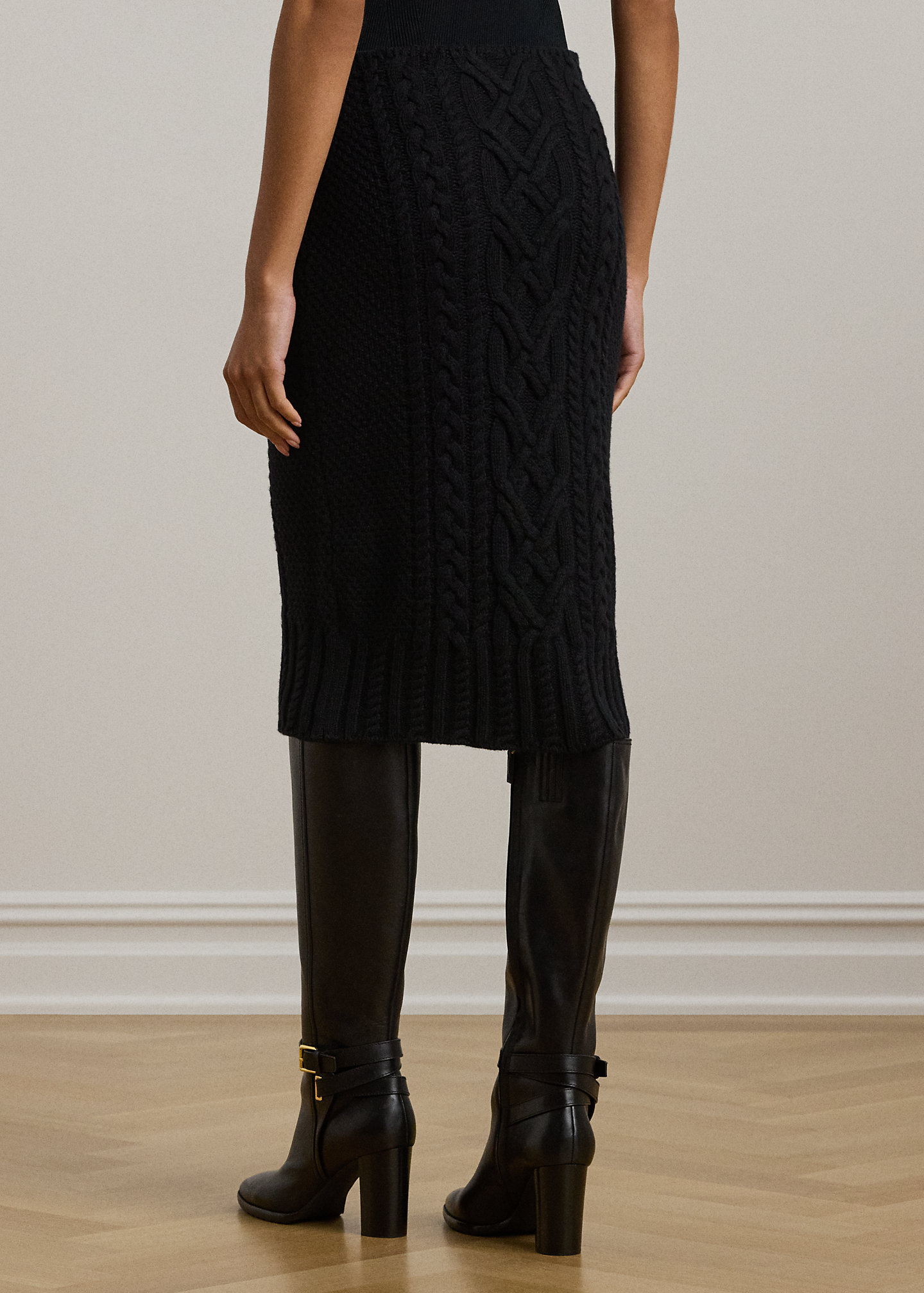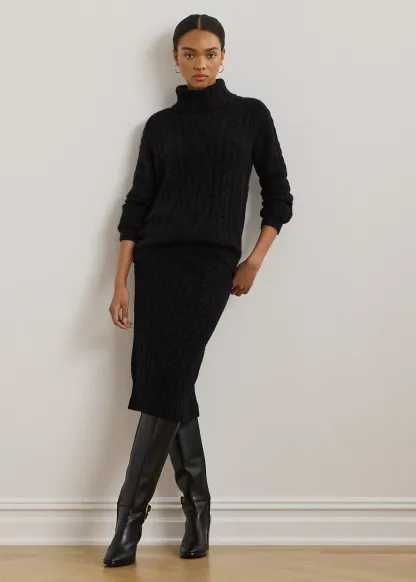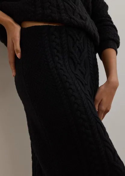 Aran-Knit Wool-Blend Pencil Midi Skirt