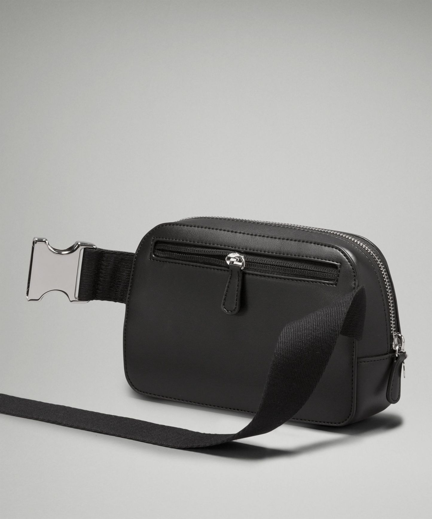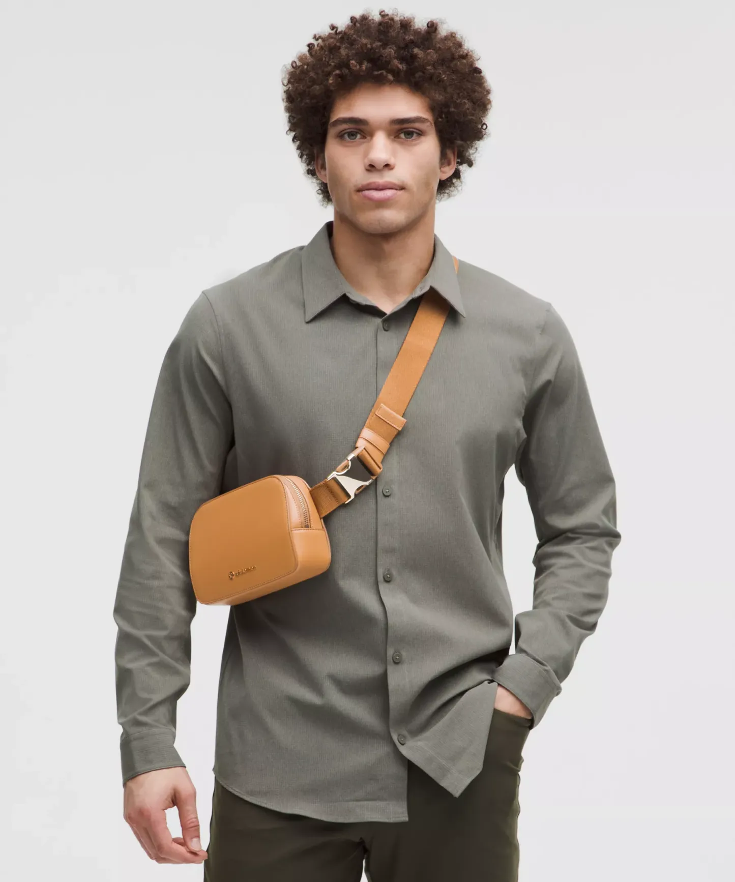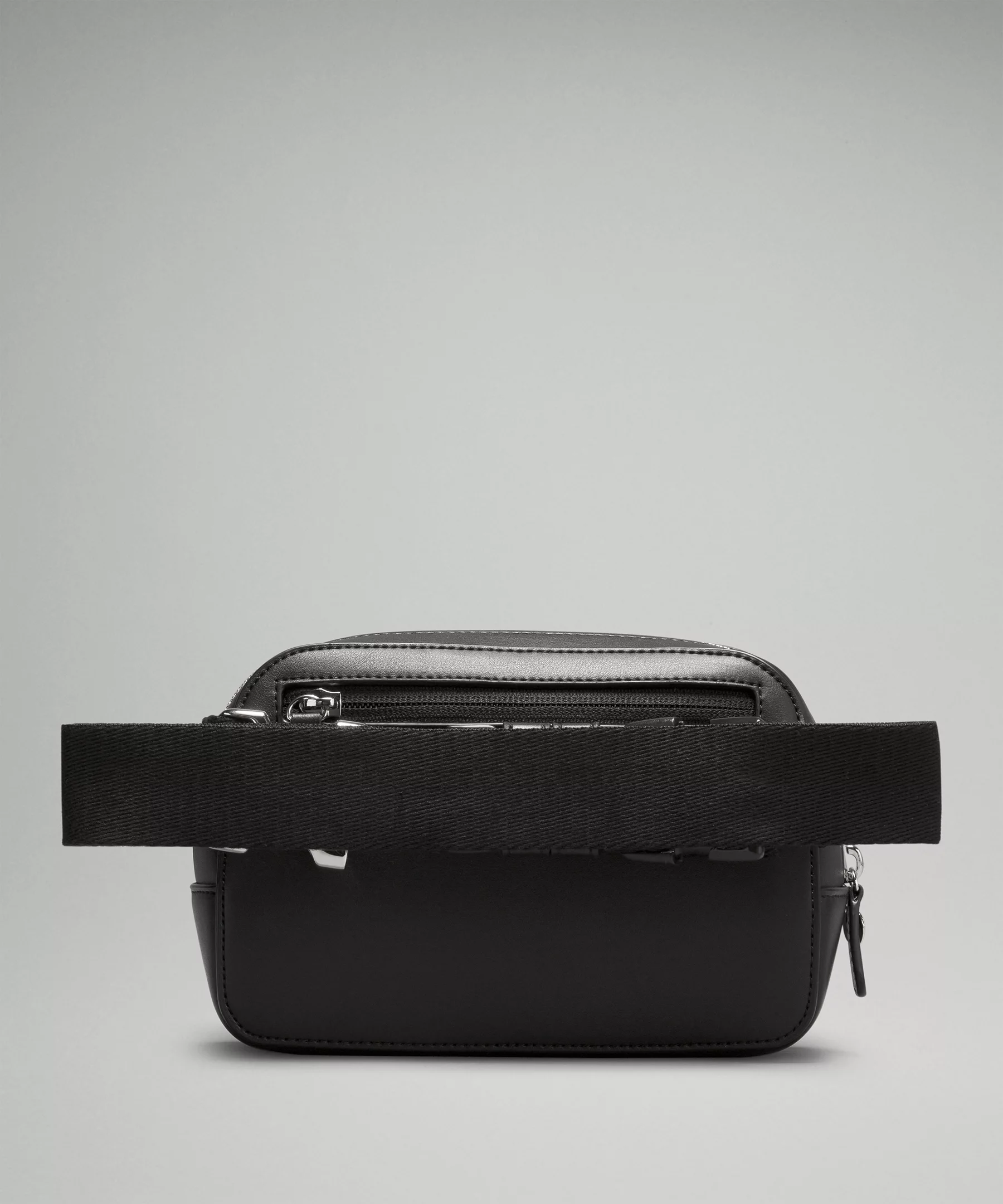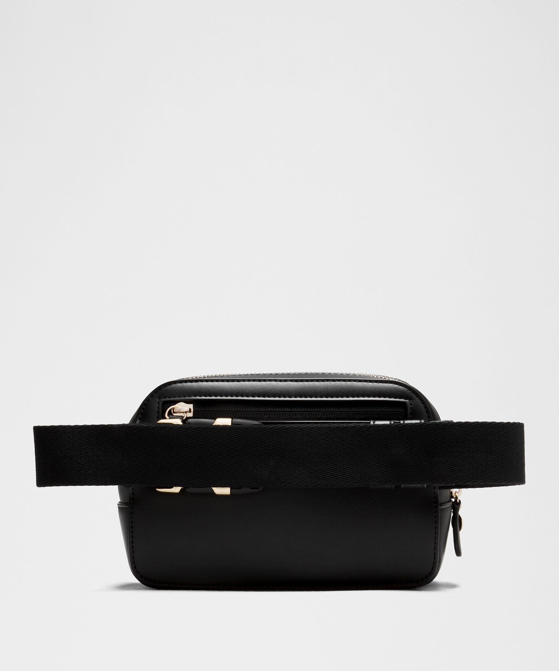 Once you find your perfect fit, tuck the excess belt bag strap into the elastic loops