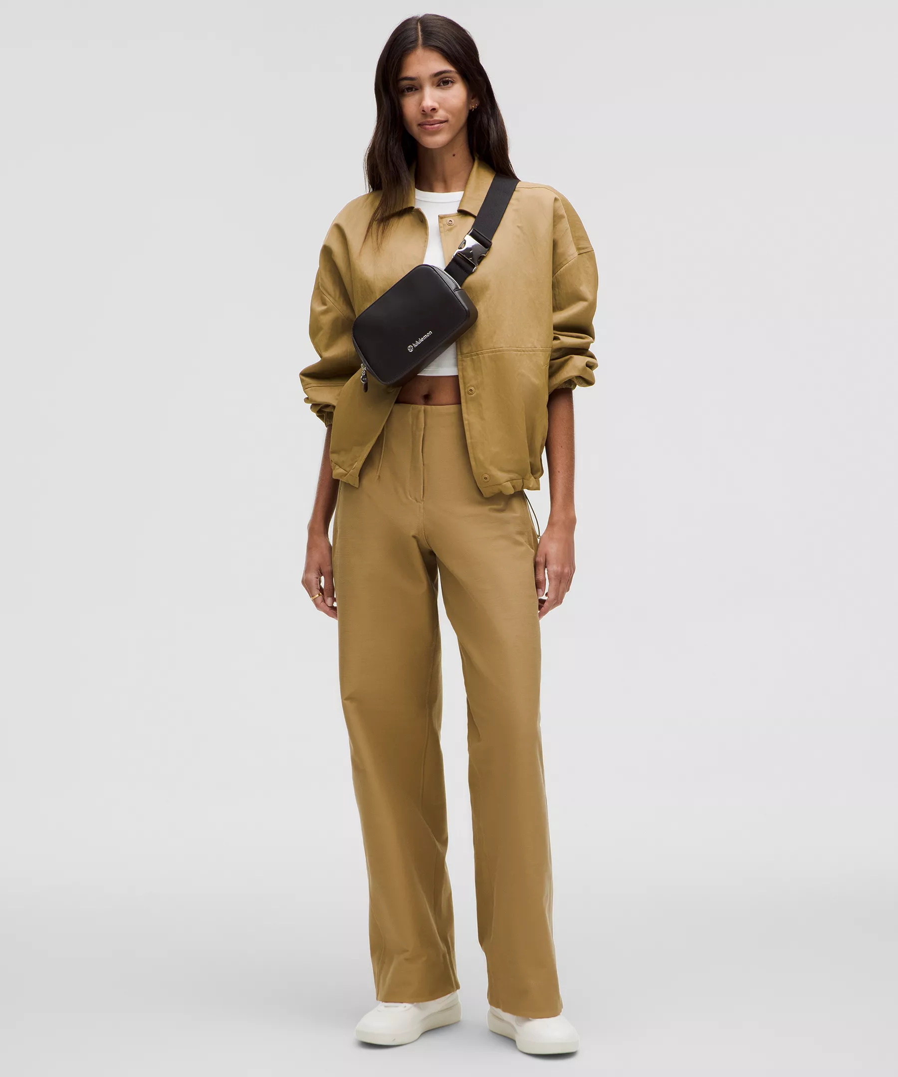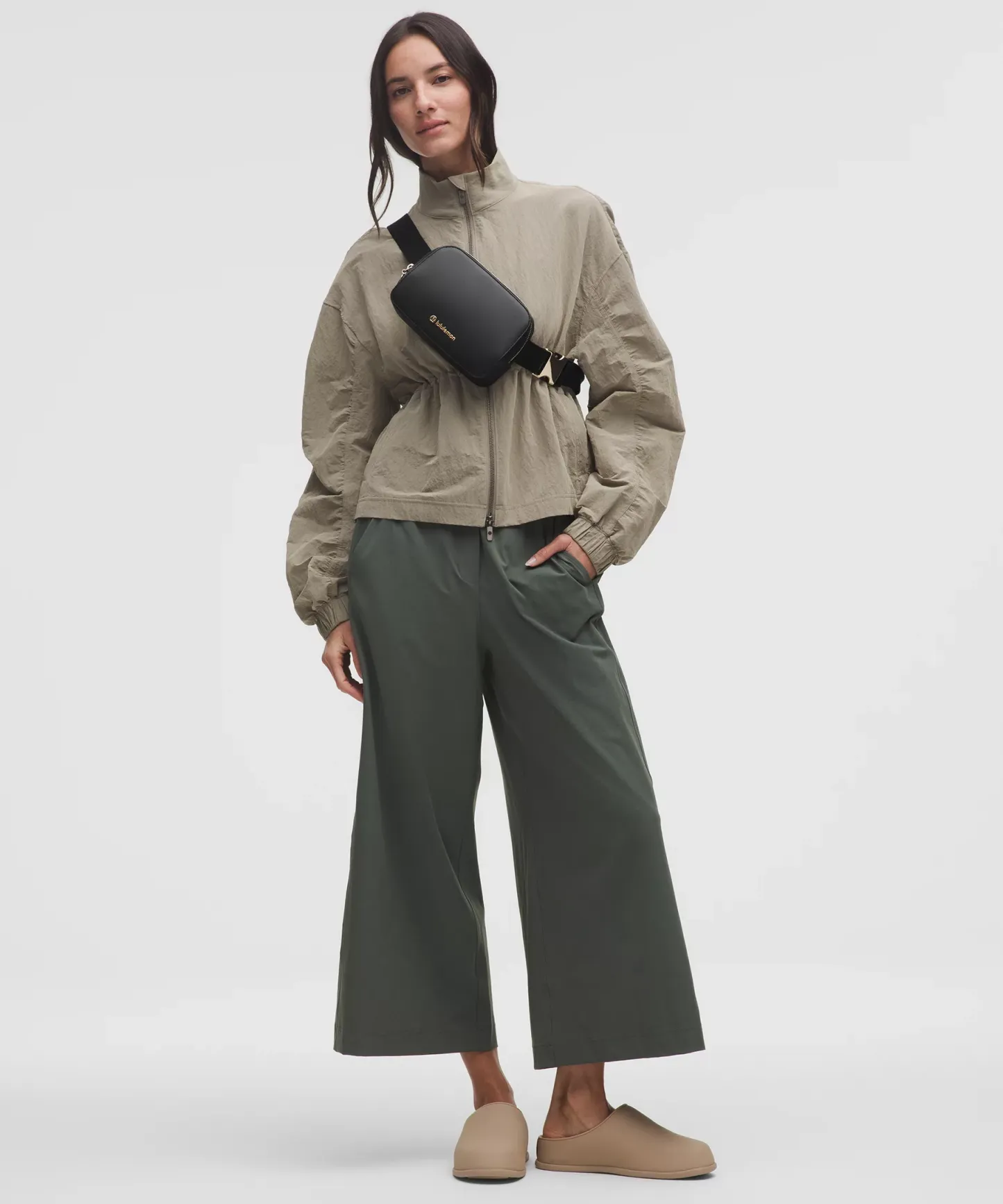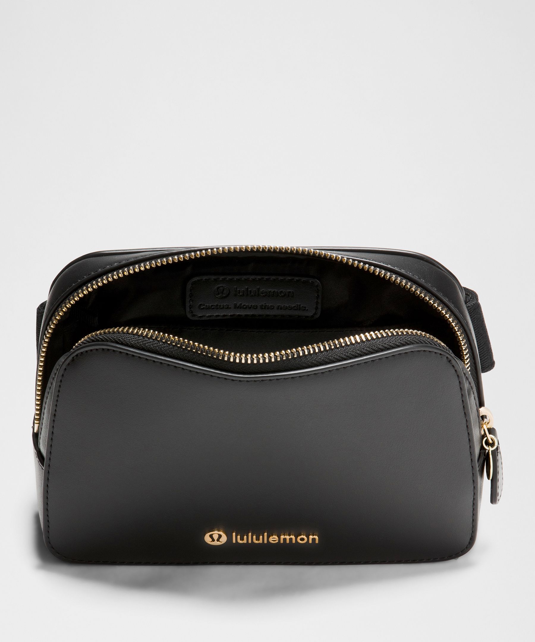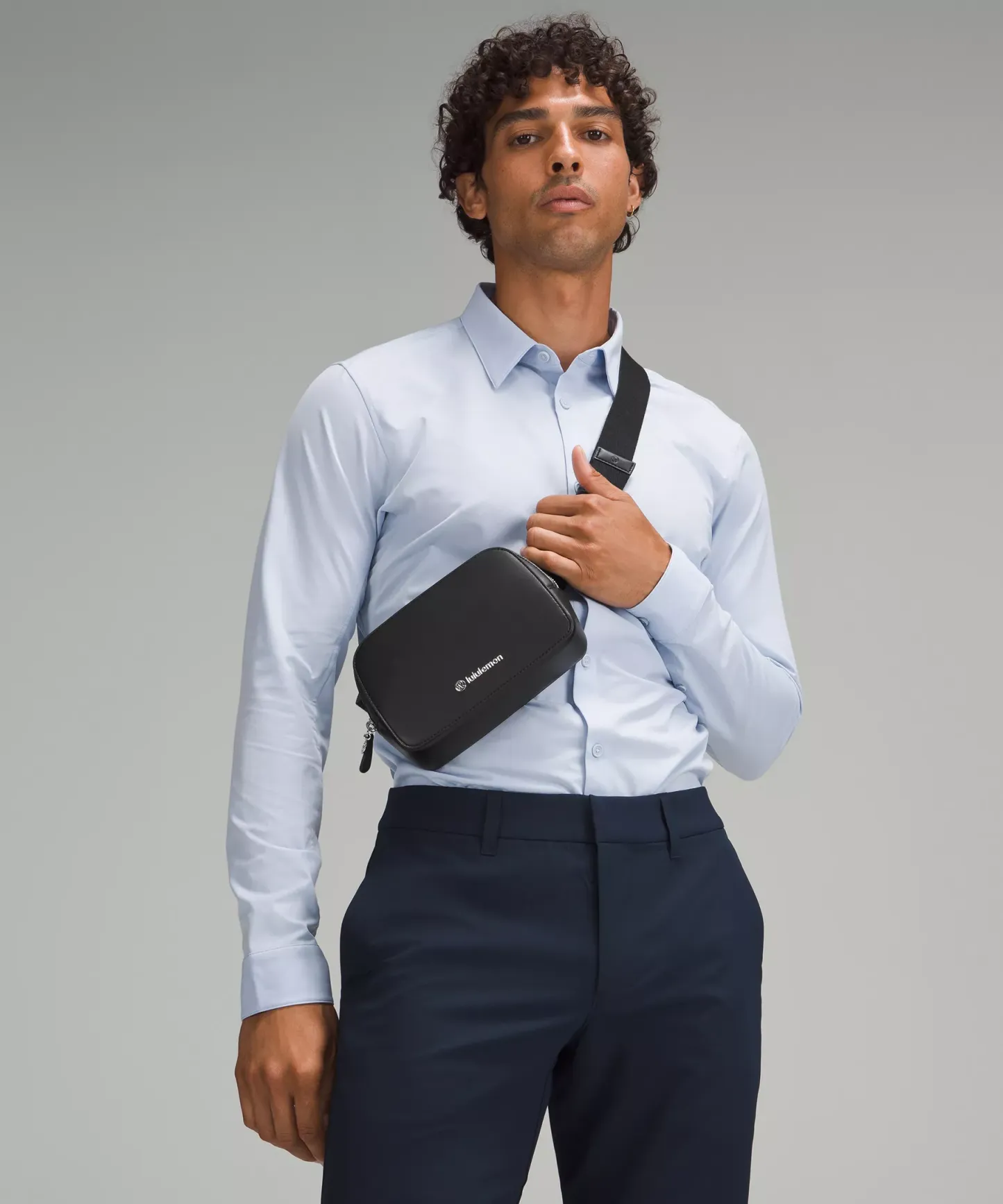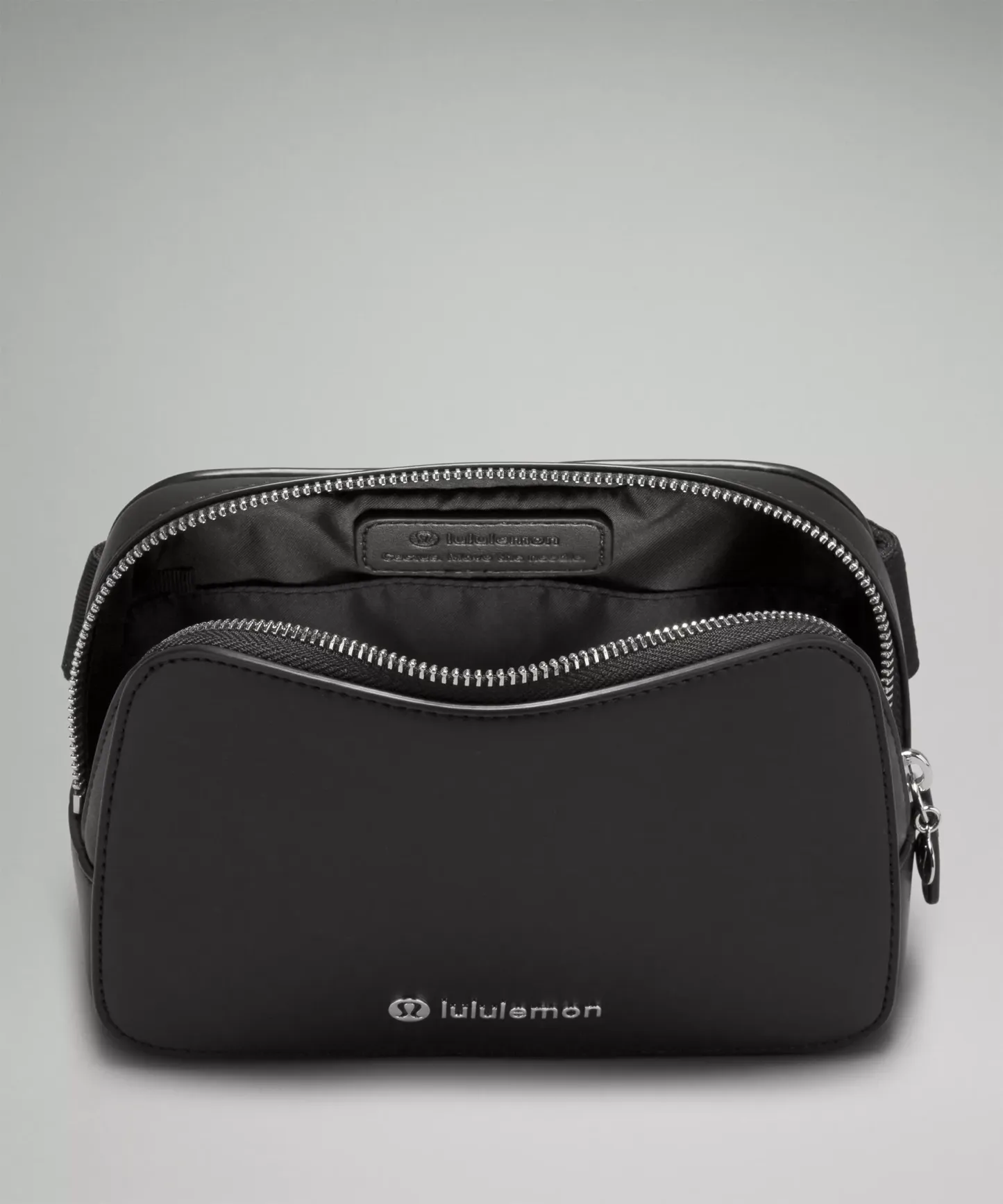 Once you find your perfect fit, tuck the excess belt bag strap into the elastic loops