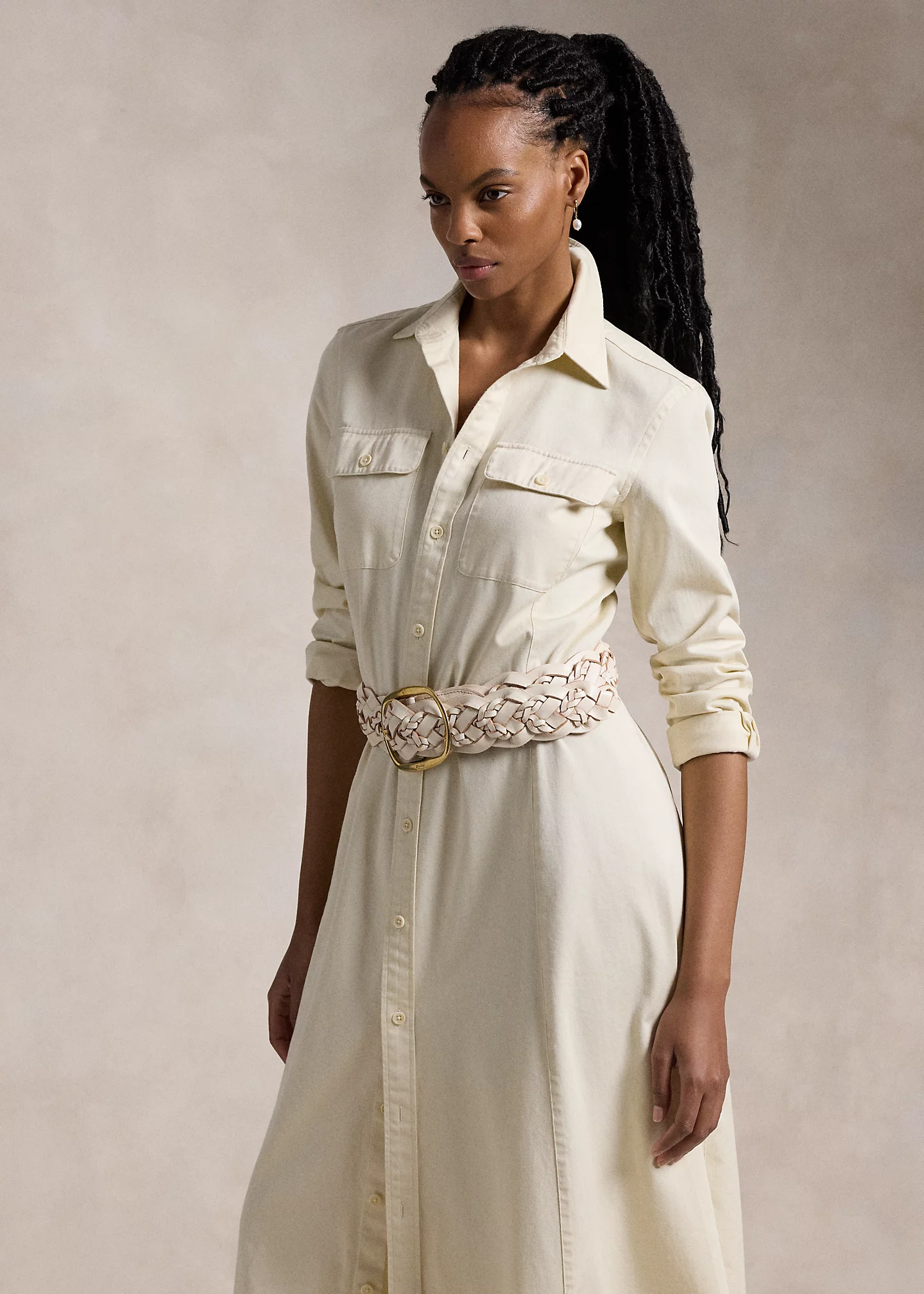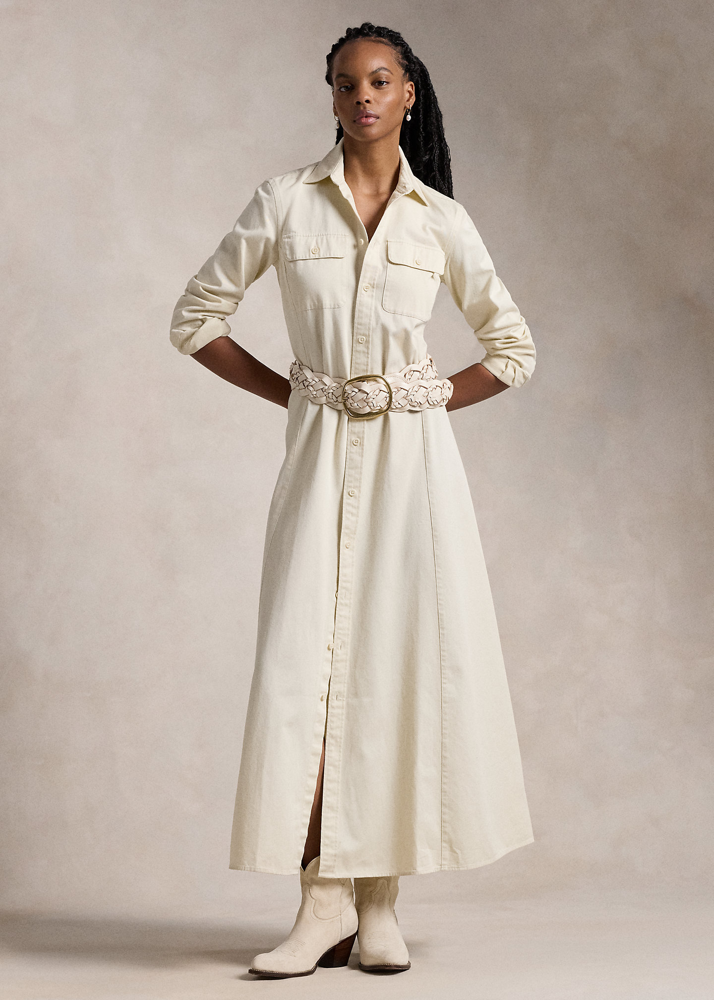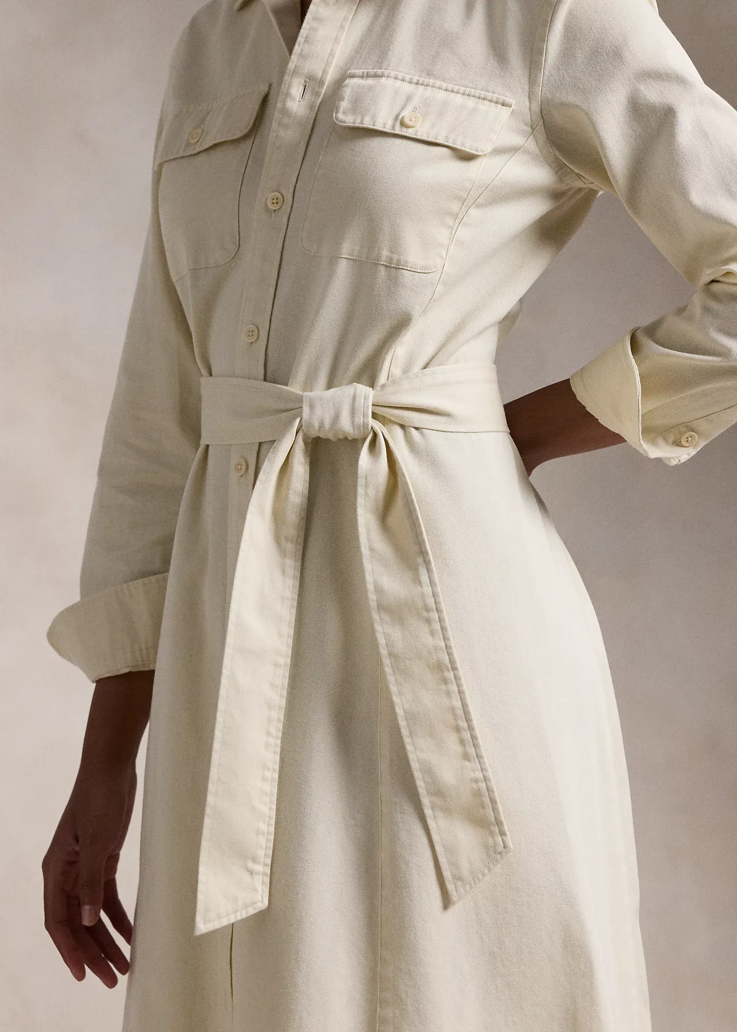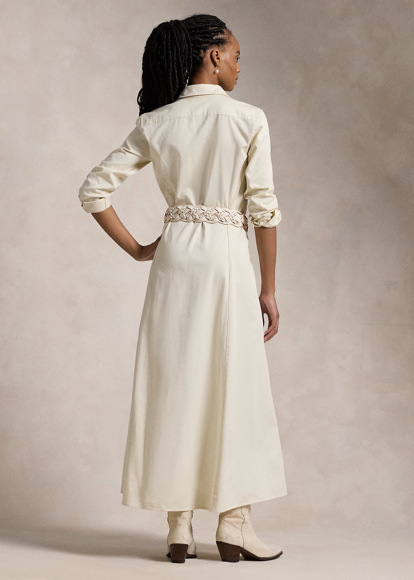 Belted Cotton Twill Shirtdress