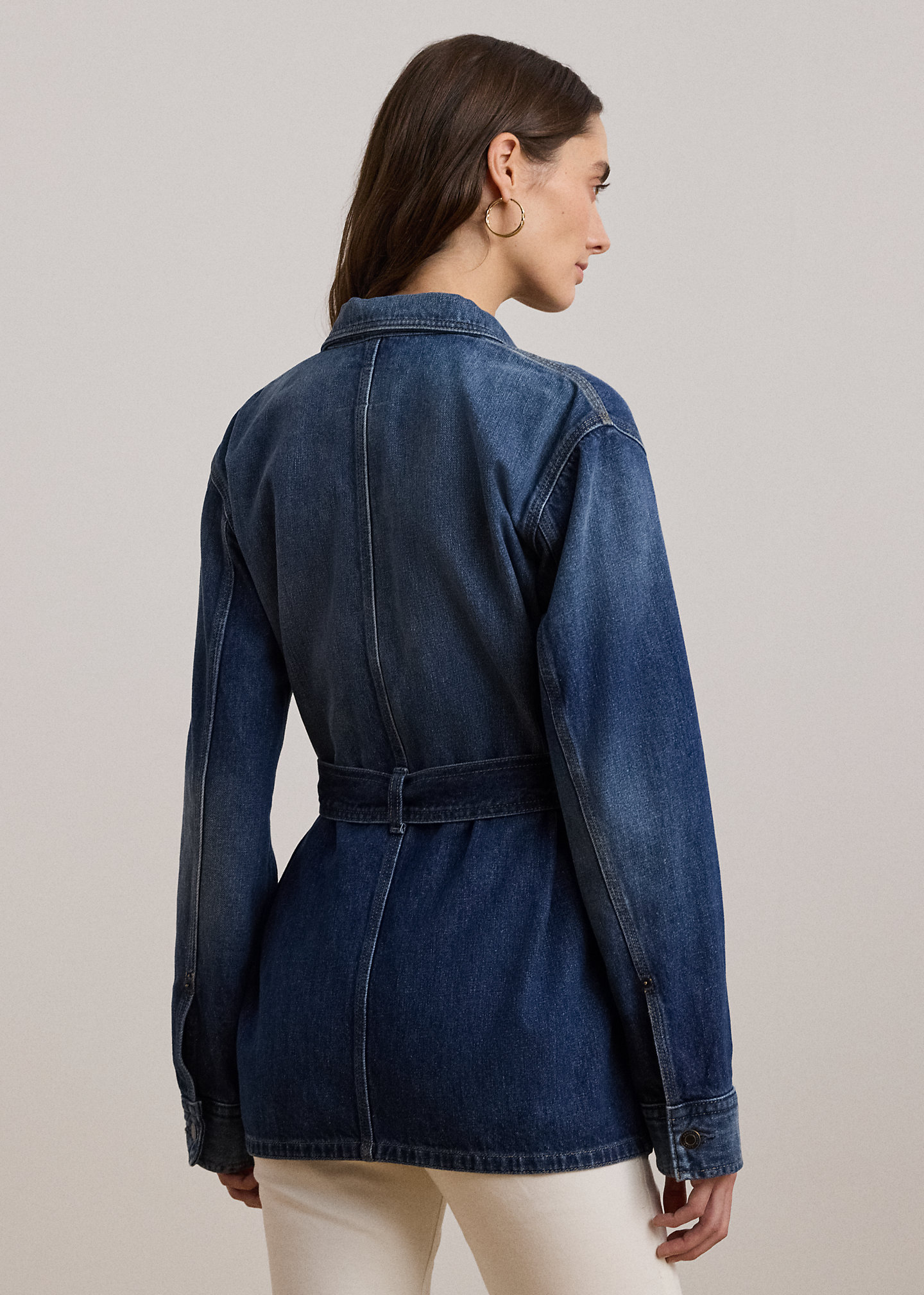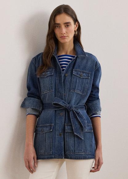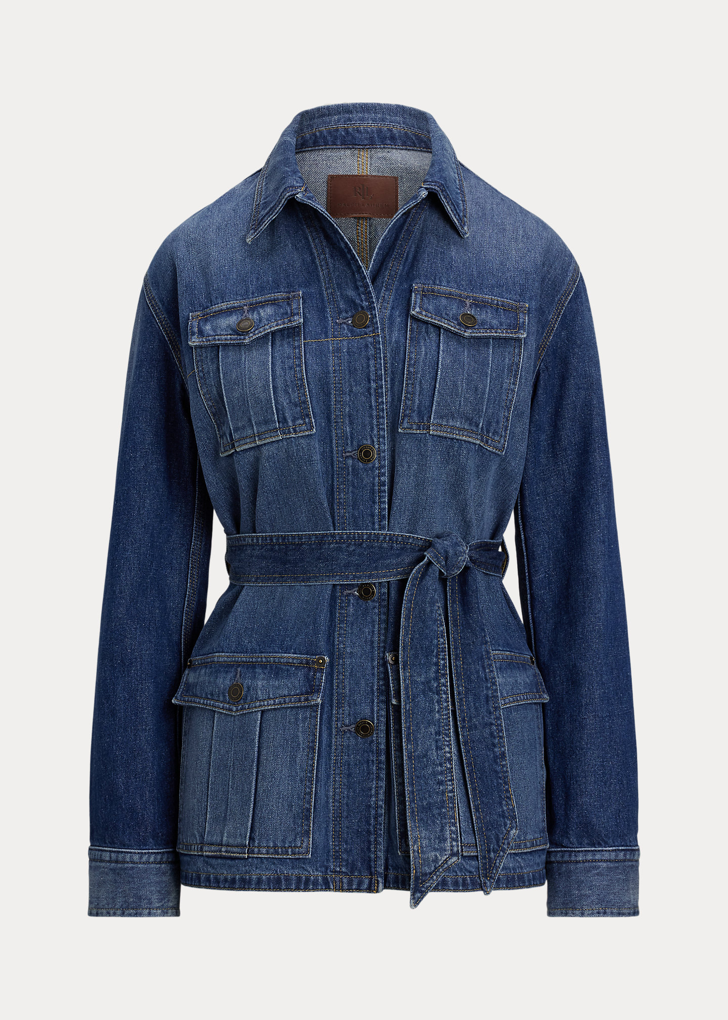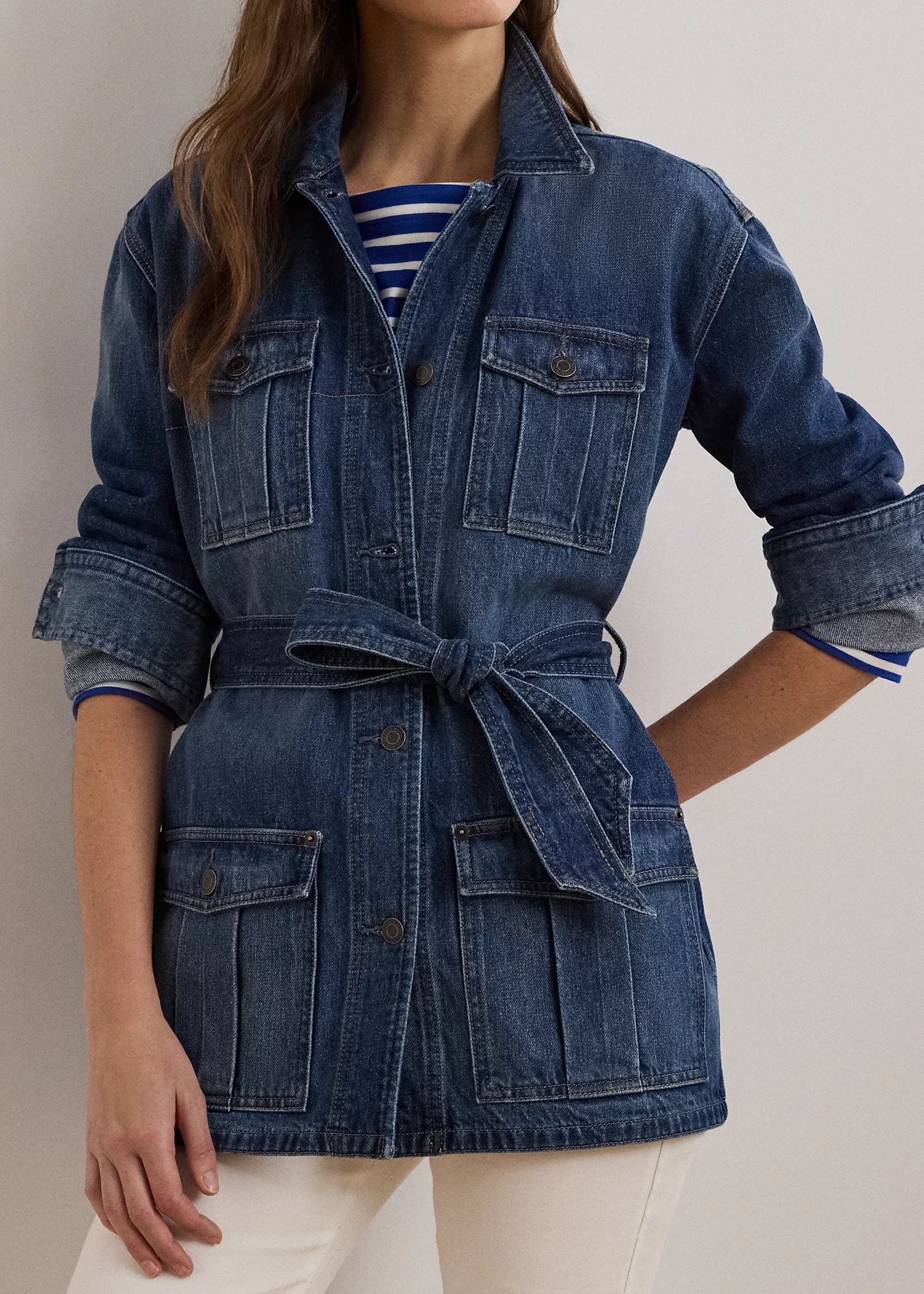 - Long sleeves with buttoned barrel cuffs. Slightly dropped shoulders. Two chest box-pleated buttoned-flap patch pockets. Two front waist box-pleated buttoned-flap patch pockets. Belt loops. Comes with a removable self-belt. Unlined.