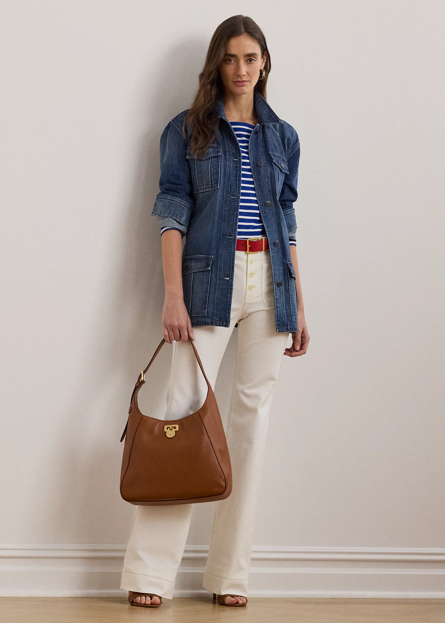 - Spread collar. Buttoned placket. Antiqued “Lauren Ralph Lauren”–embossed brass-finished buttons. “LRL Ralph Lauren”–debossed leather patch at the interior center back of the neck.