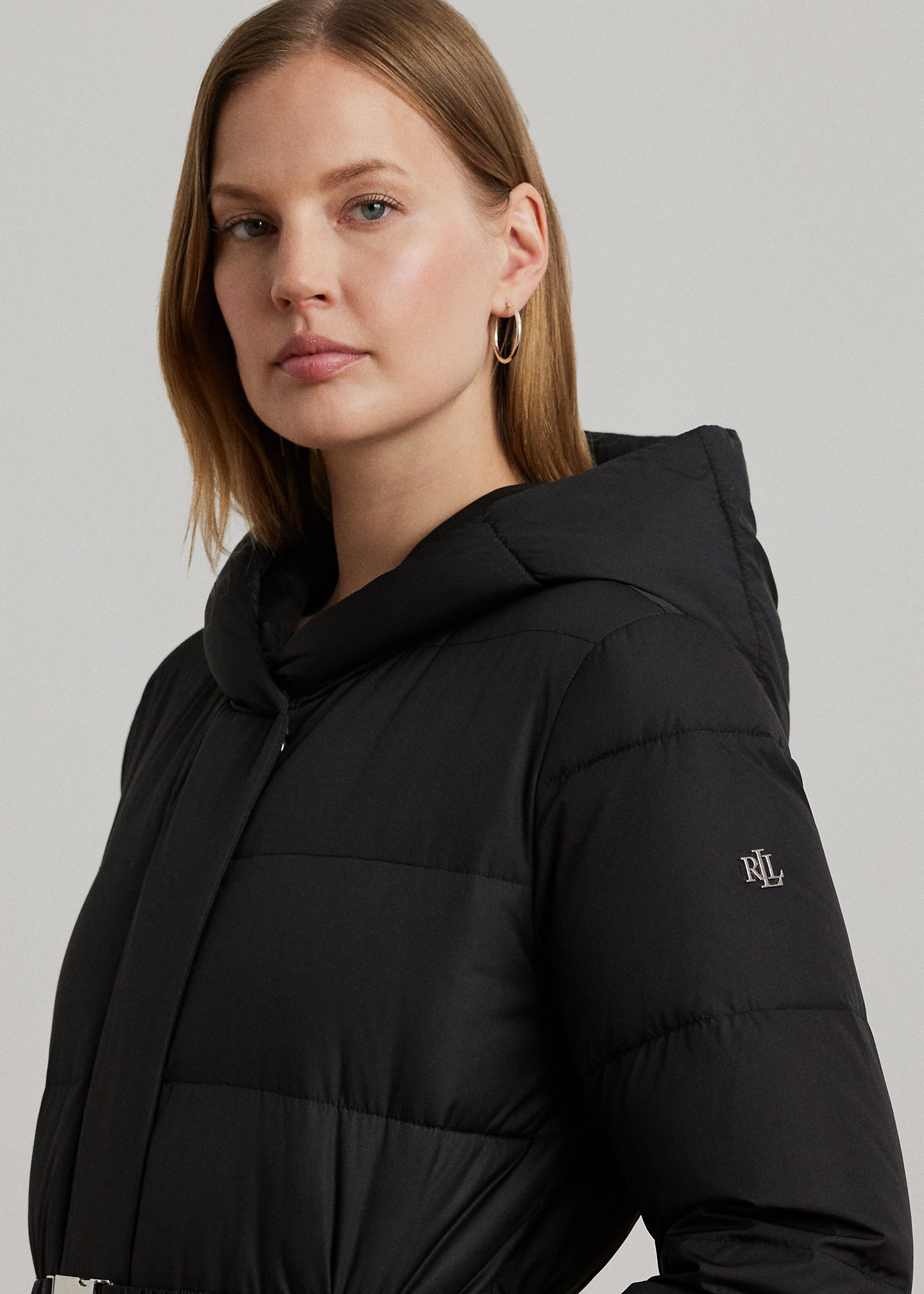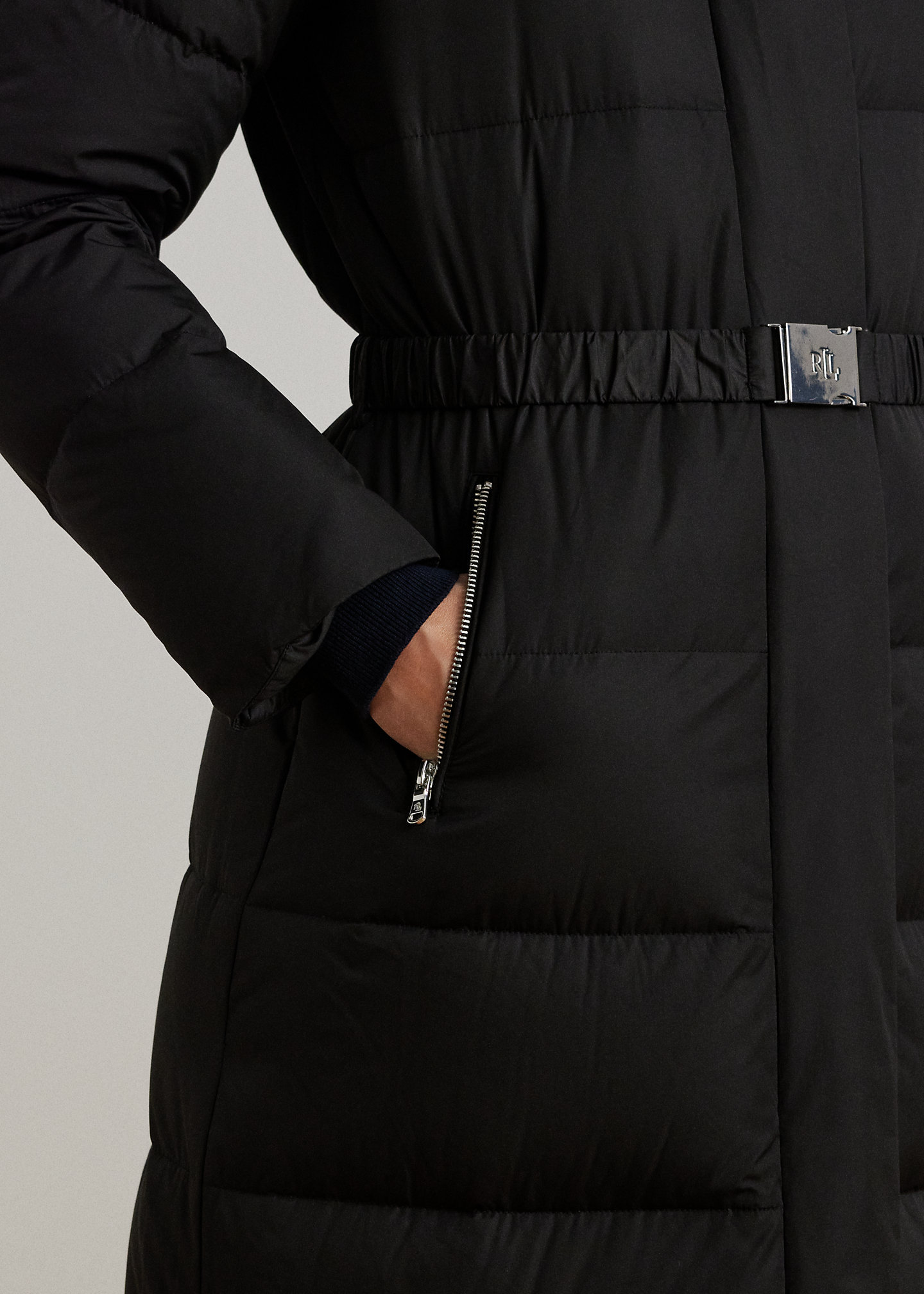 - Shell and lining: 100% polyester. Fill: 90% duck down, 10% other feathers.