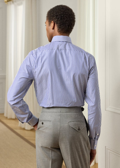 - Split pleated back yoke ensures smooth, contoured shoulders.