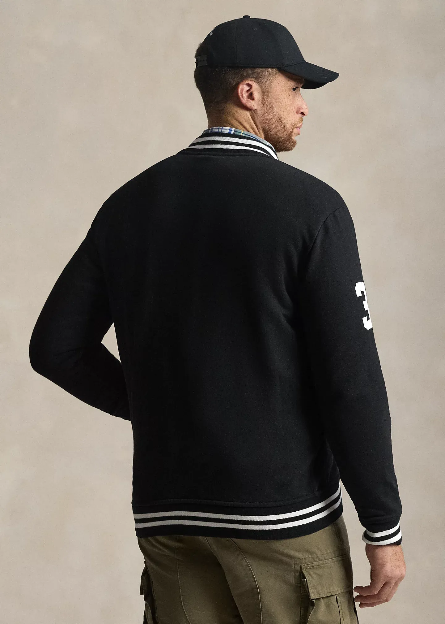 - Long sleeves with striped, ribbed cuffs. Twill "3" patch at the right sleeve.