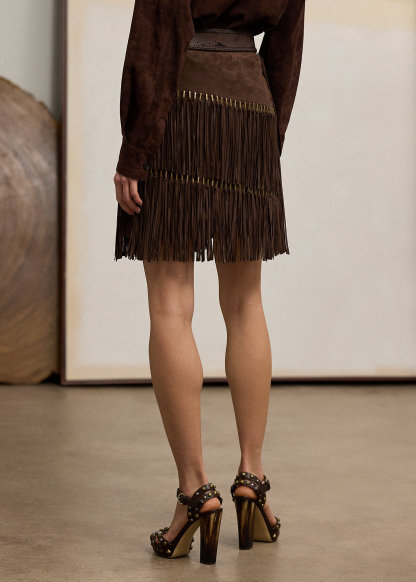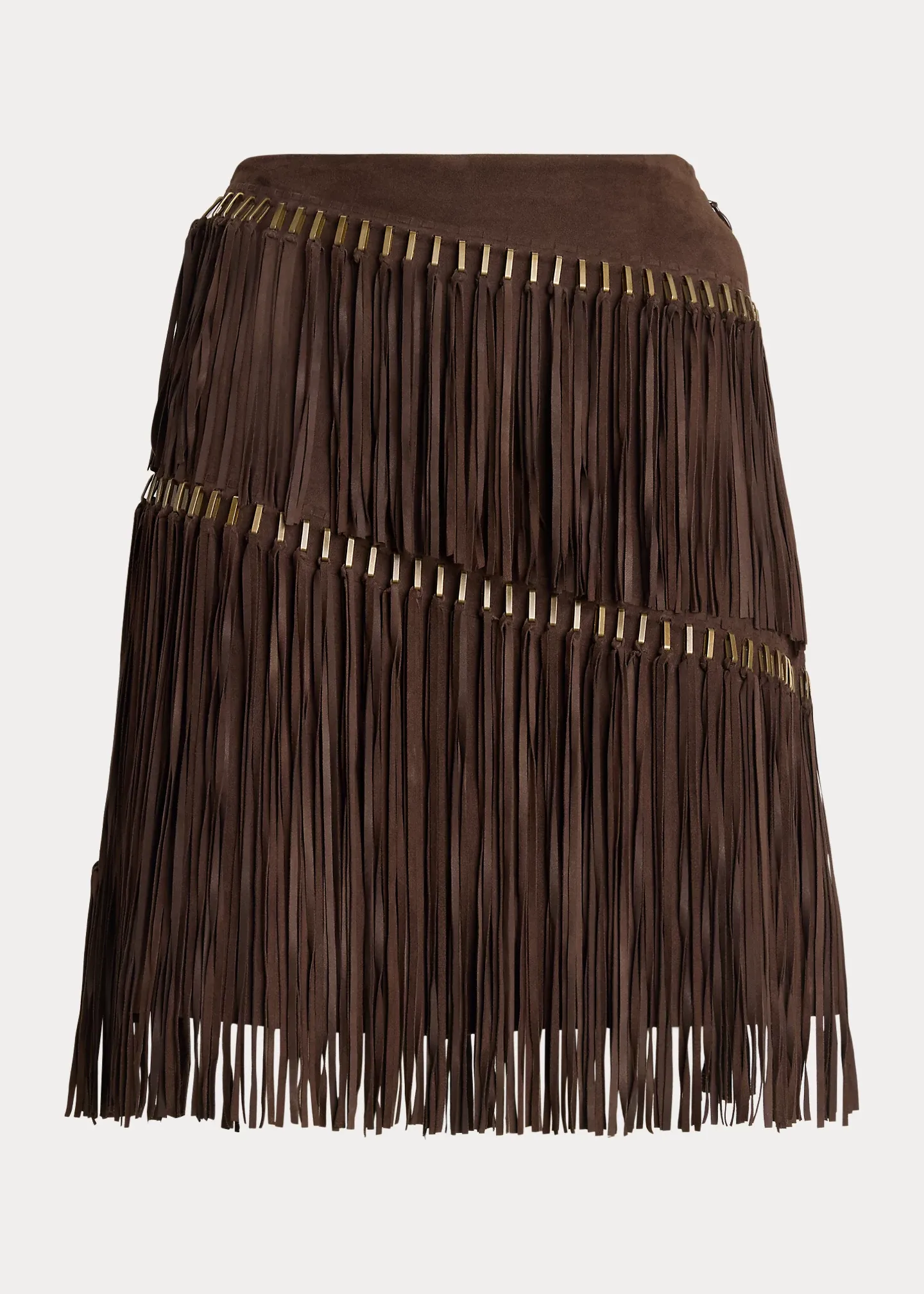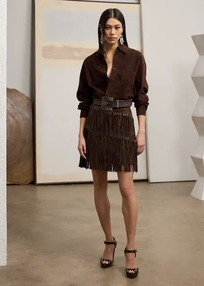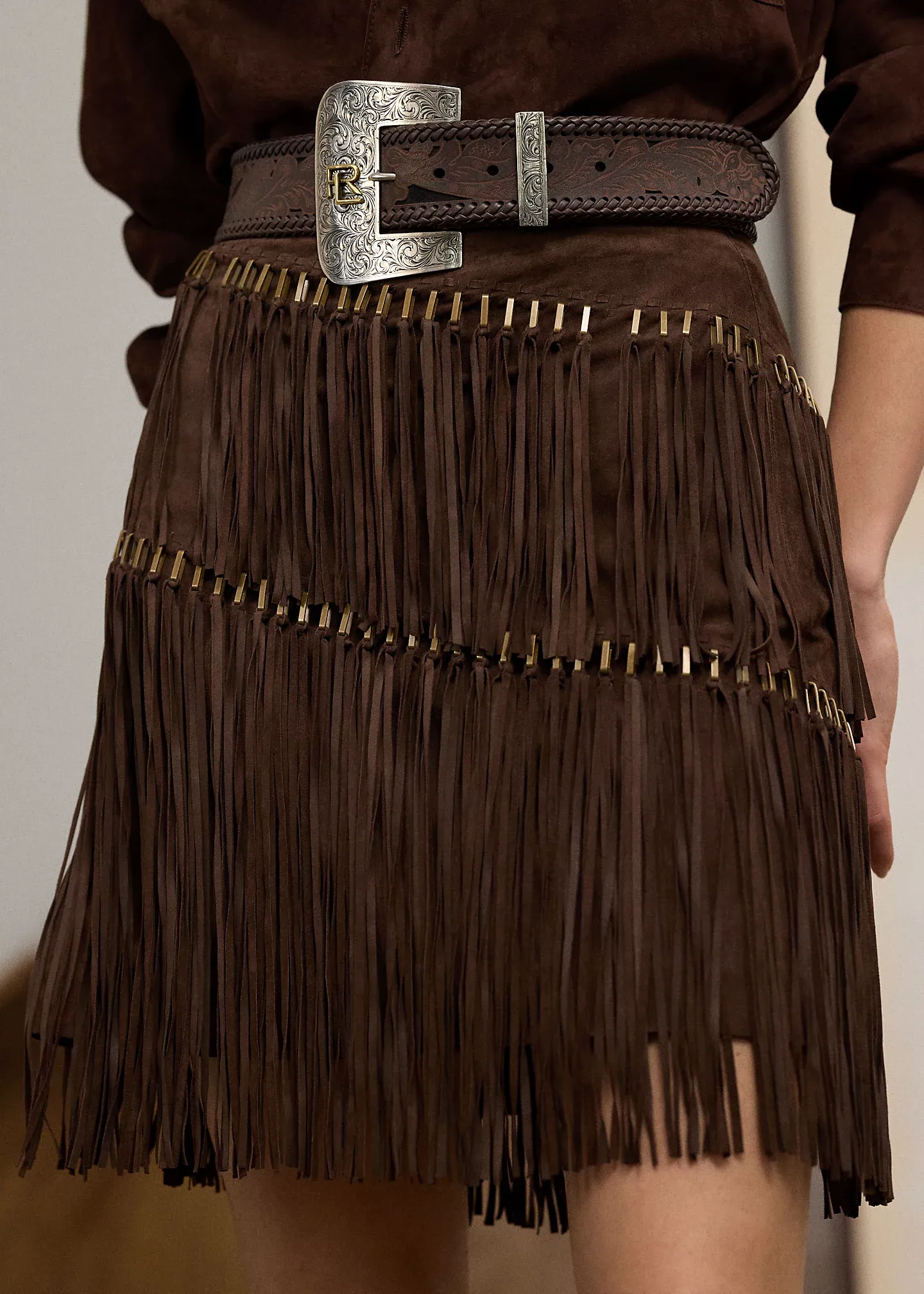 Brielle Fringe-Trim Lamb-Suede Skirt