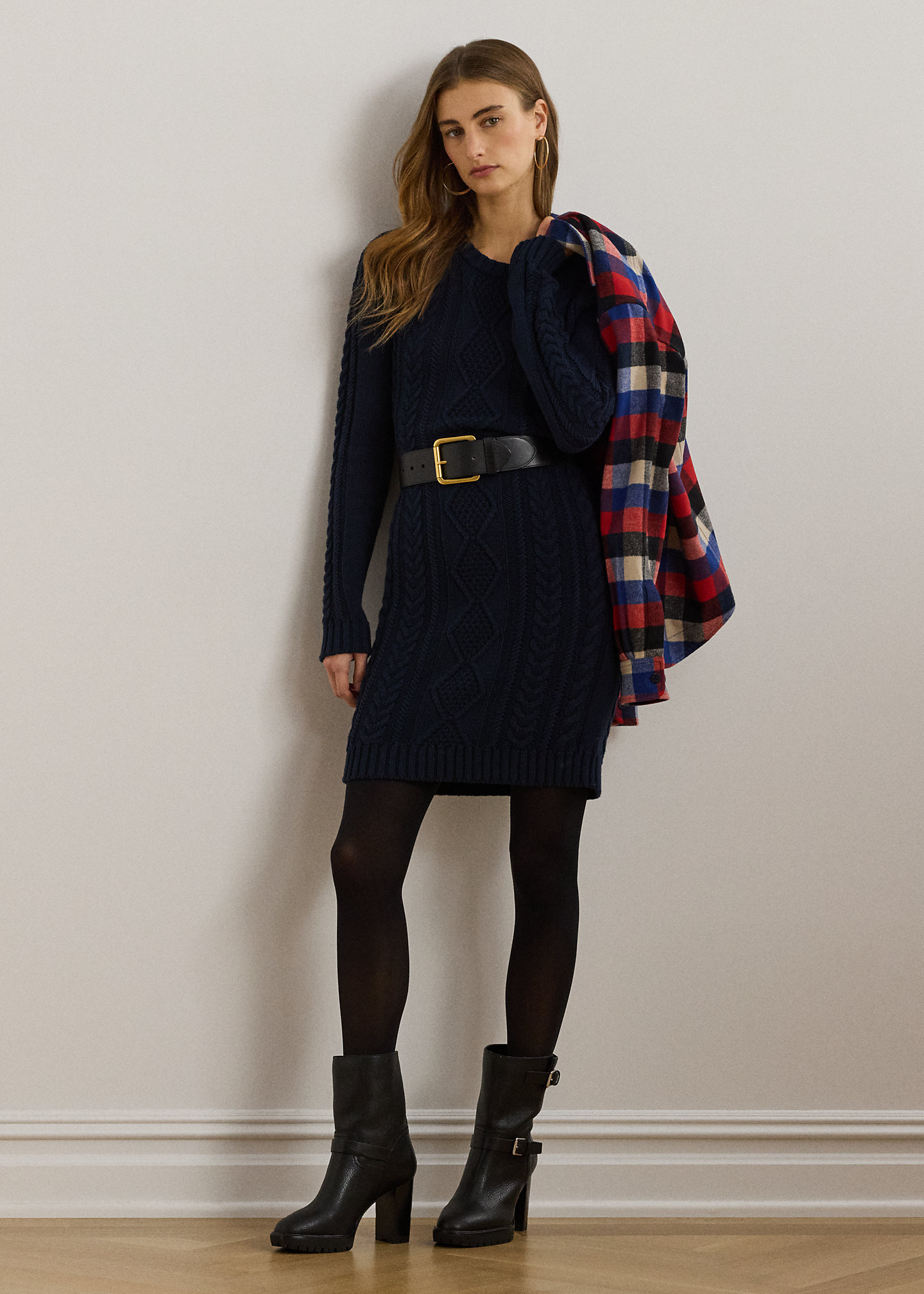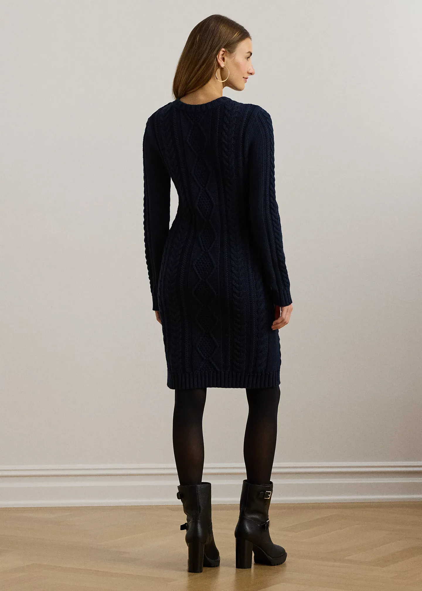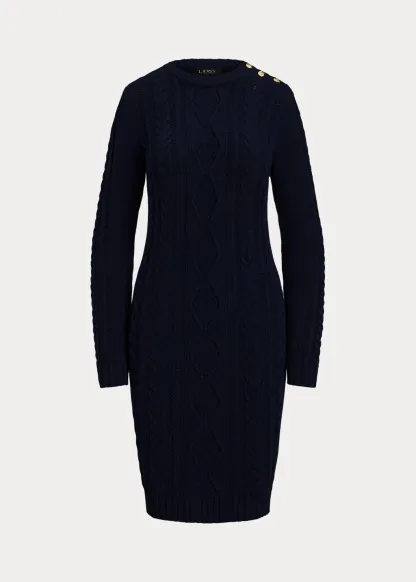 Button-Trim Aran-Knit Sweater Dress