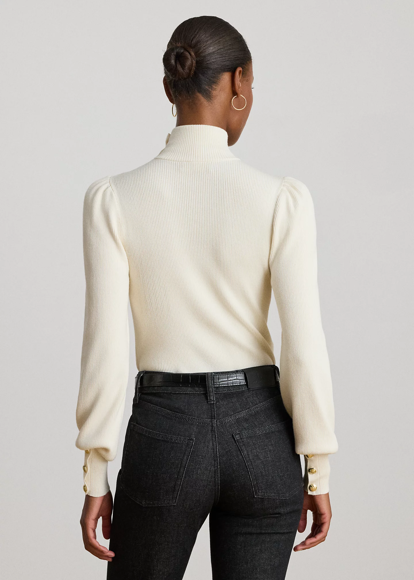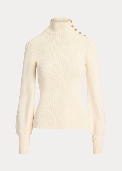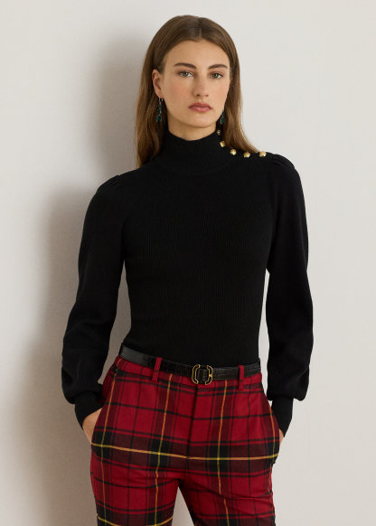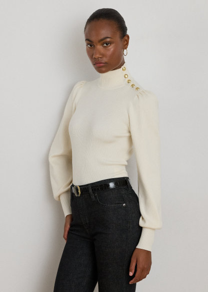 Button-Trim Mockneck Sweater