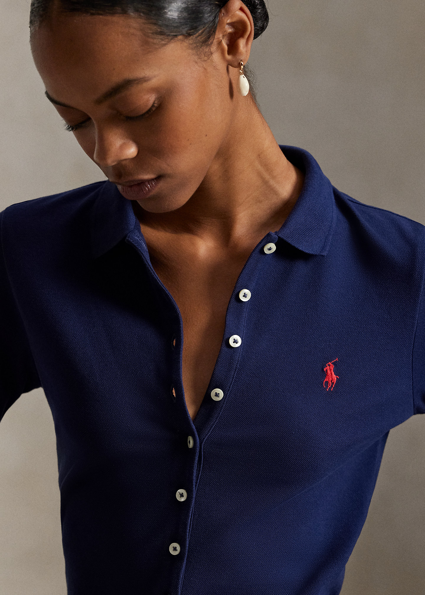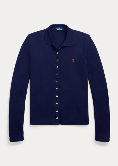 - Ribbed Polo collar. Buttoned placket.