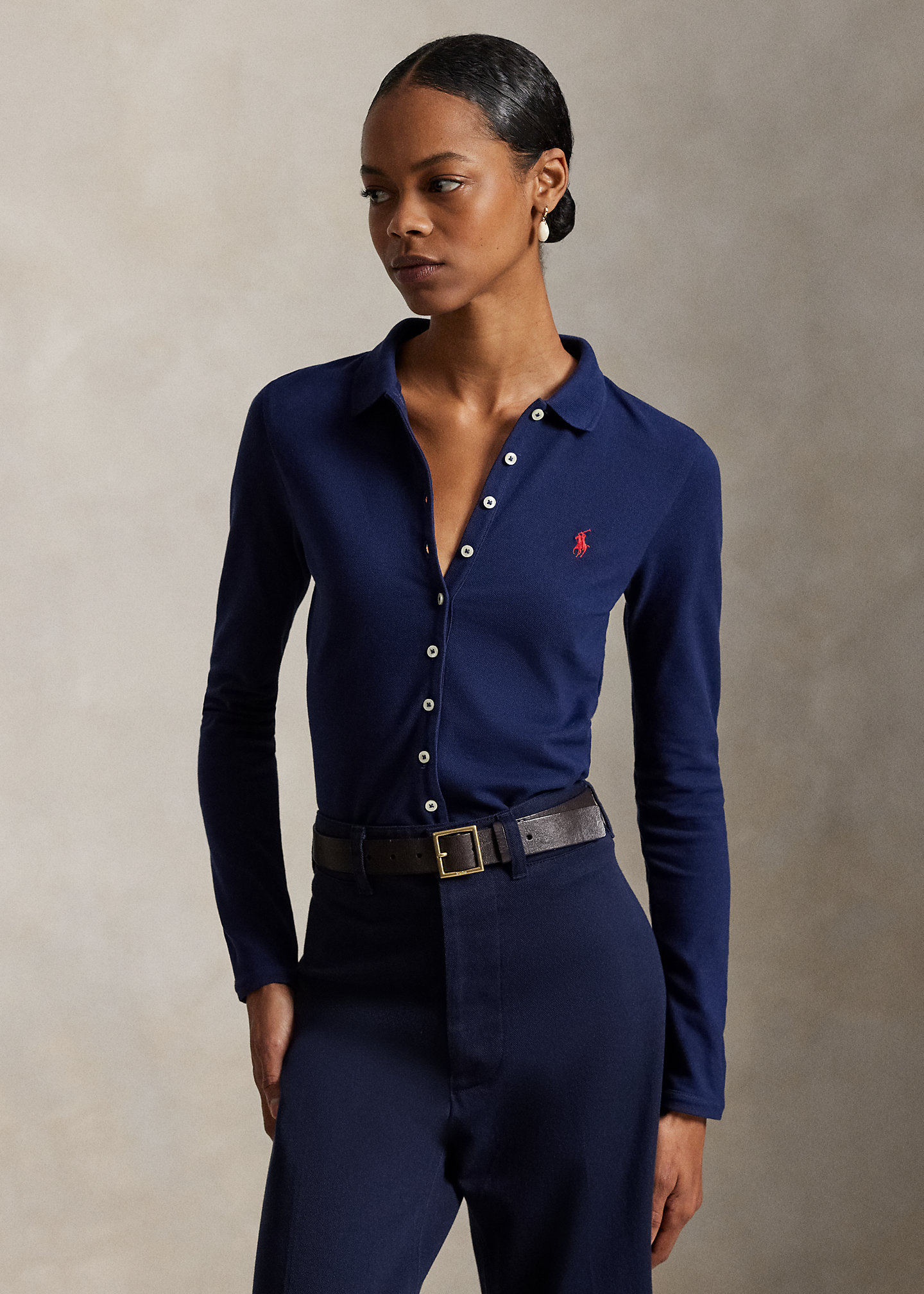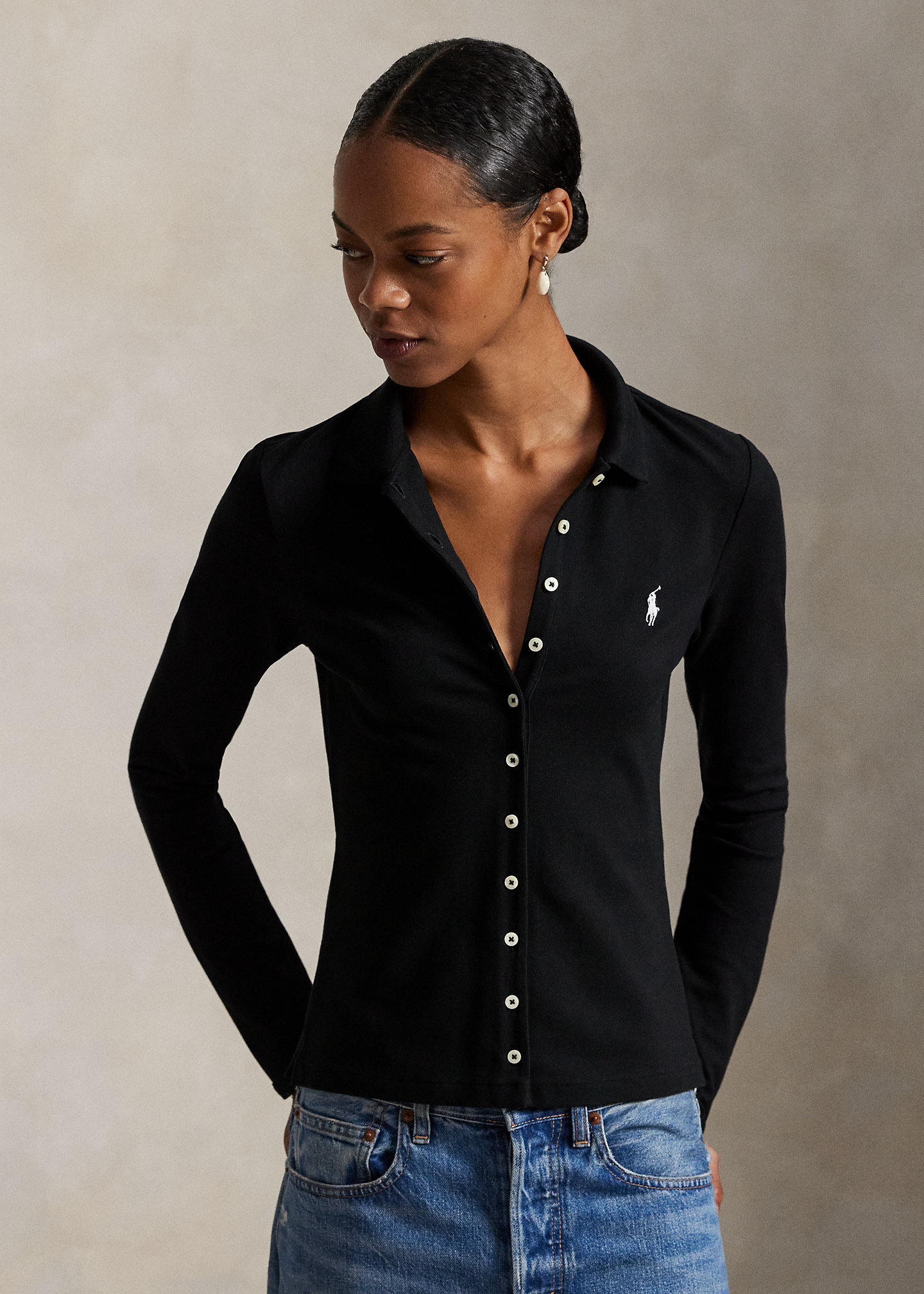 - Long sleeves. Signature embroidered Pony at the left chest.