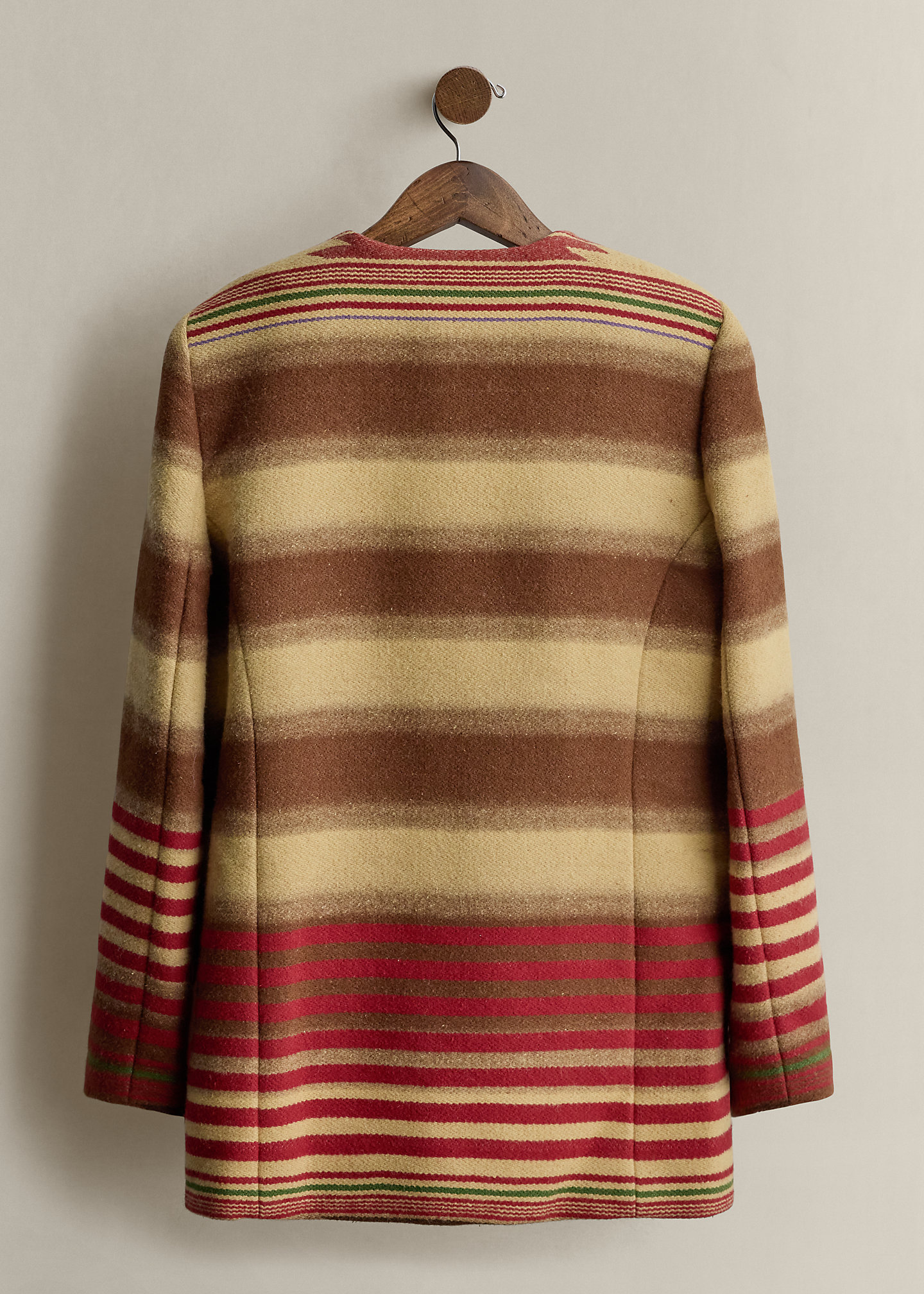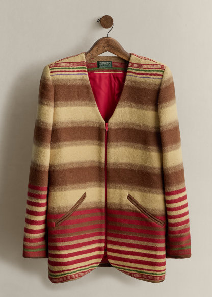 c. 1990 Striped Wool Zip Coat - Size L