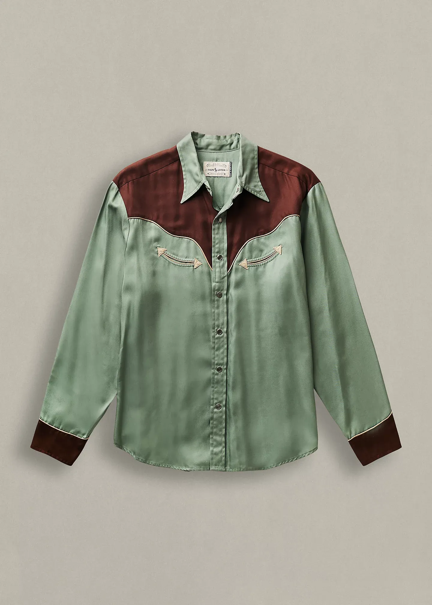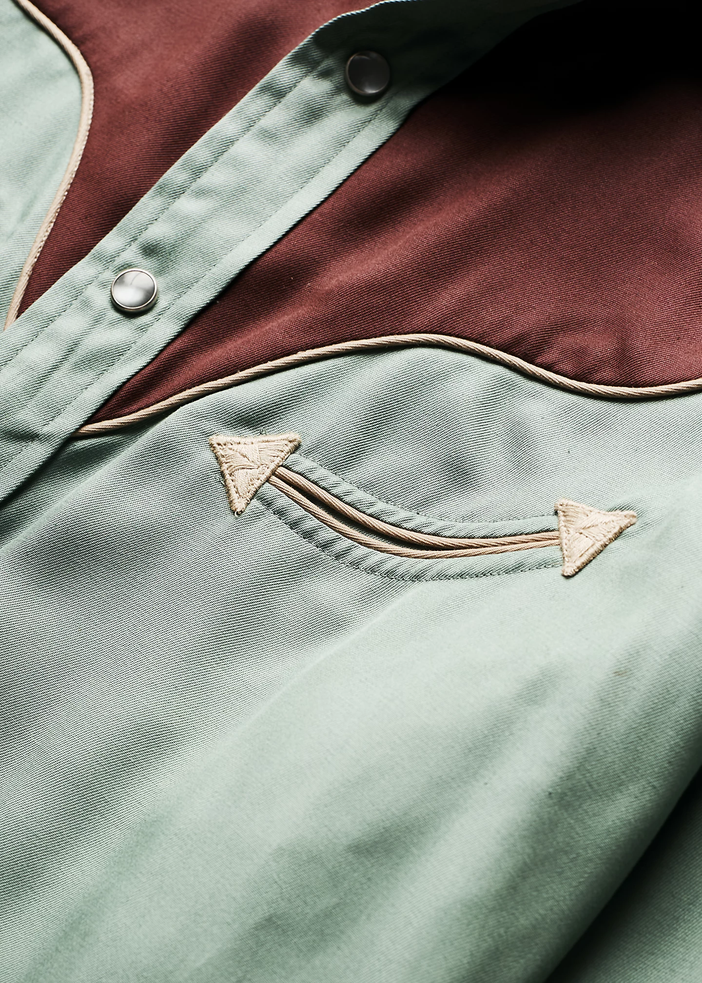 - Two front chest Western-style welt pockets with triangle reinforcements.