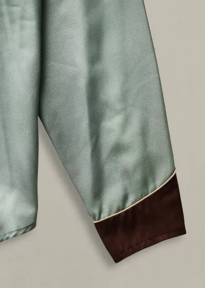 - Long sleeves with contrast snapped barrel cuffs.