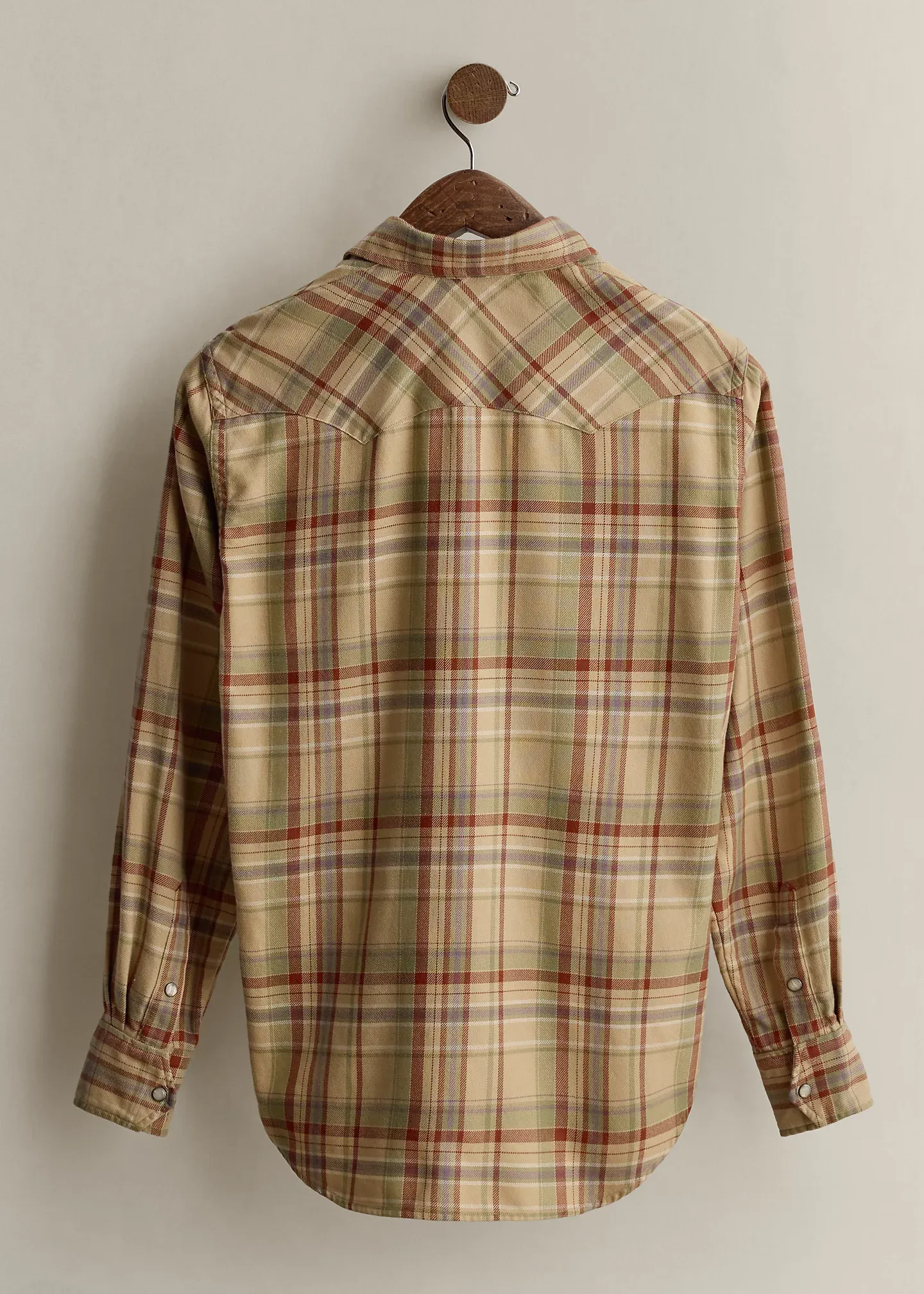 - Shaped Western-style front and back yoke. Shirttail hem.