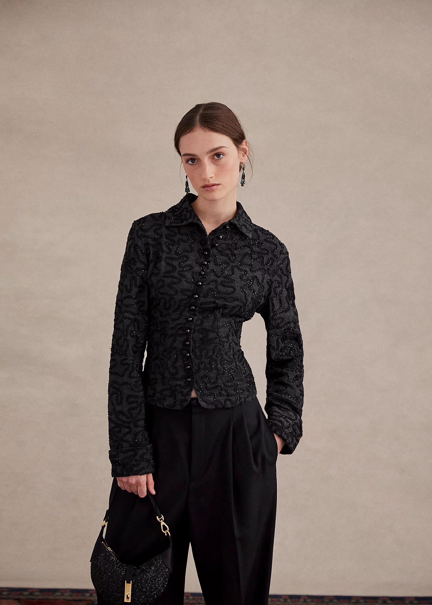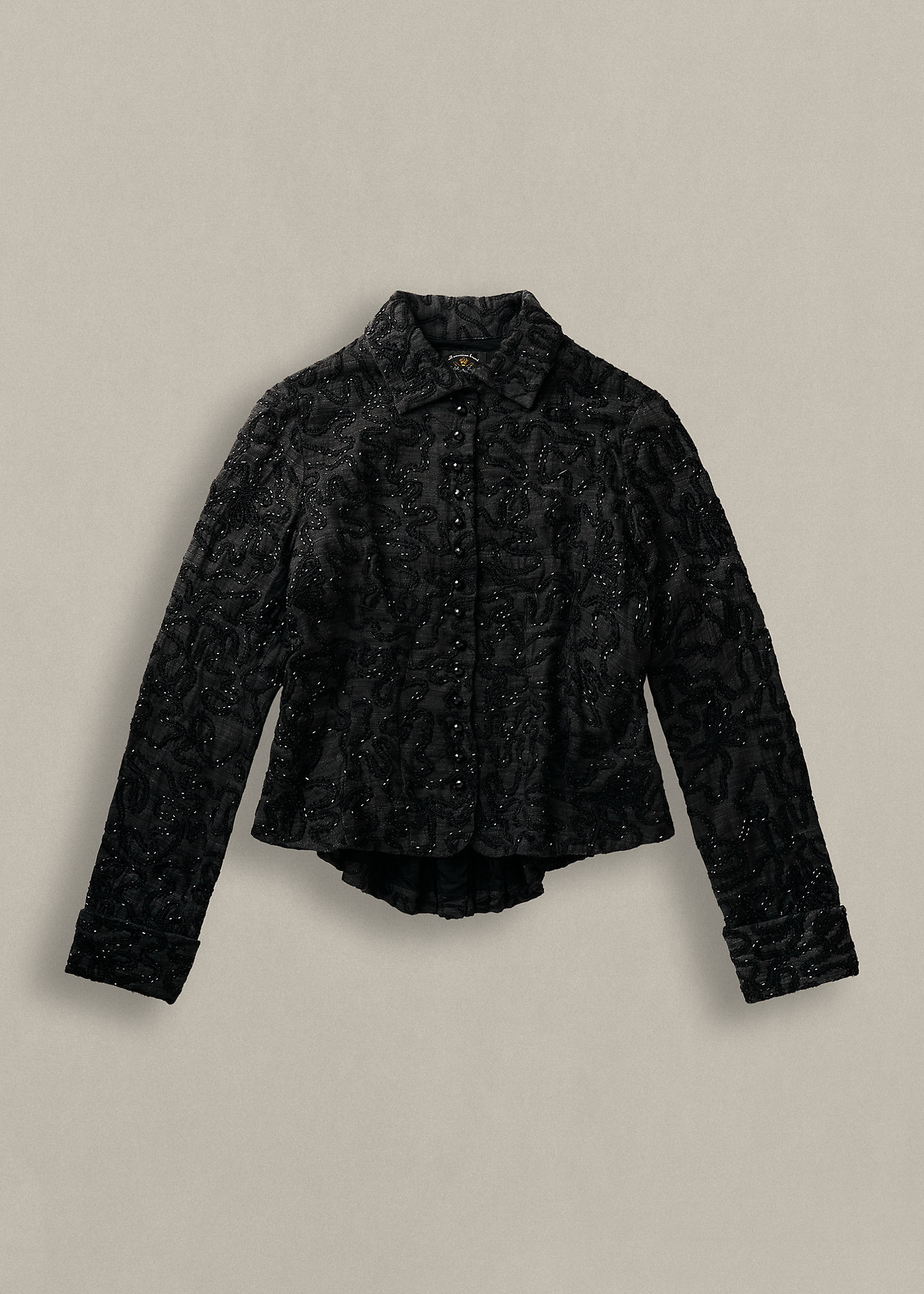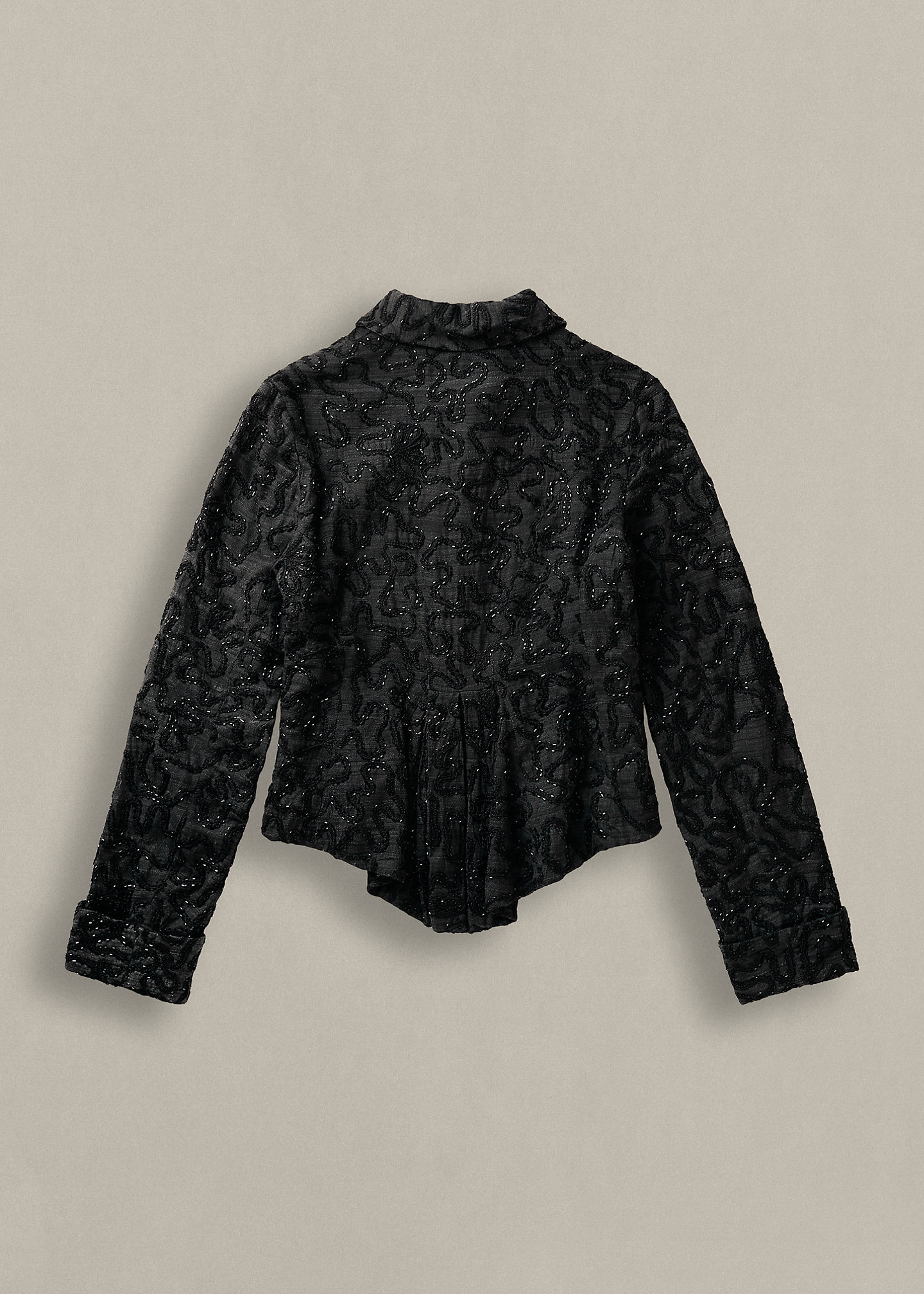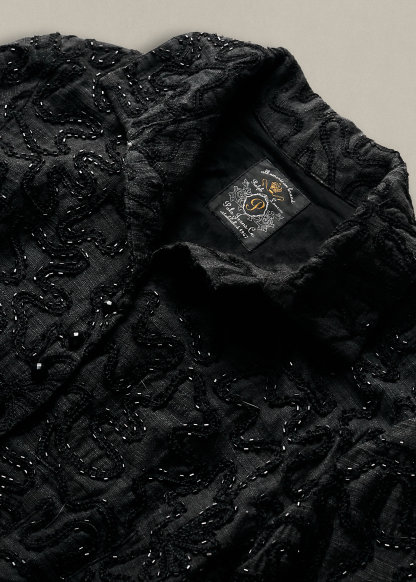 - Allover embroidery and beadwork.