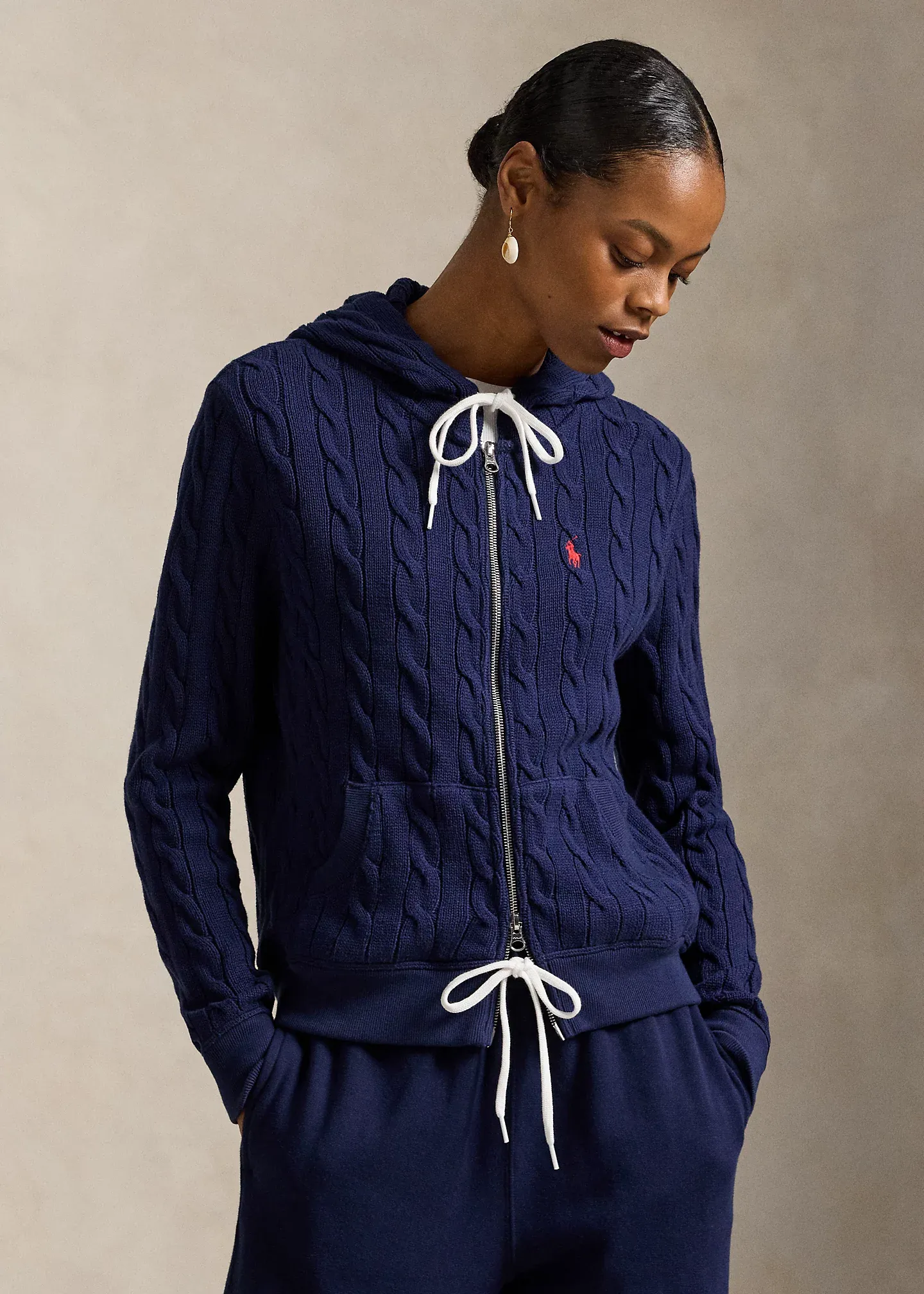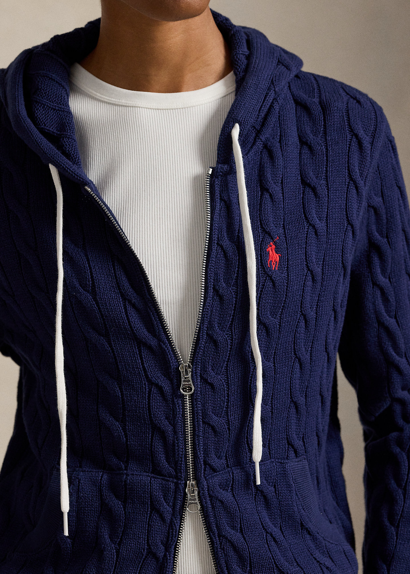 Cable-Knit Cotton Full-Zip Hoodie