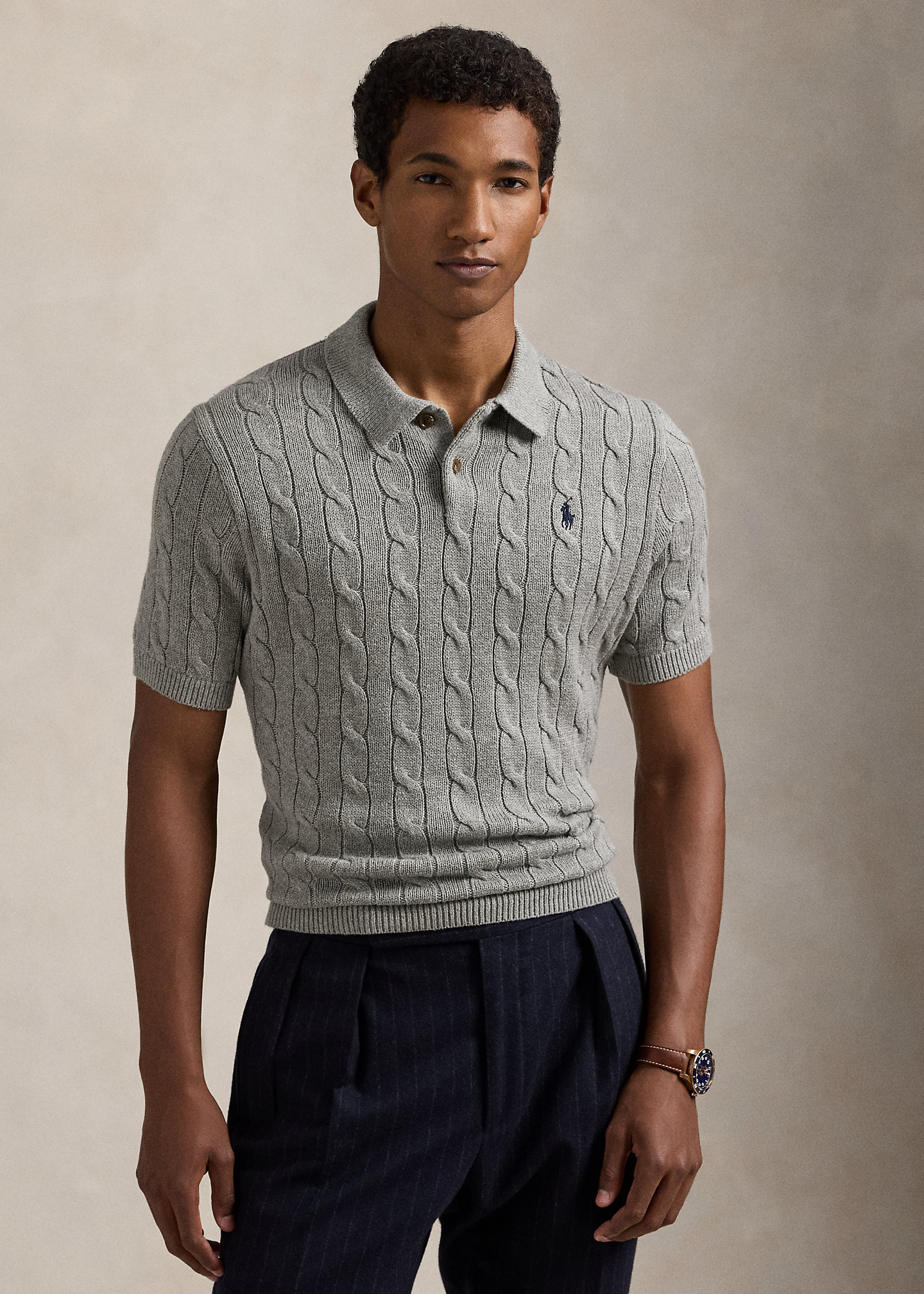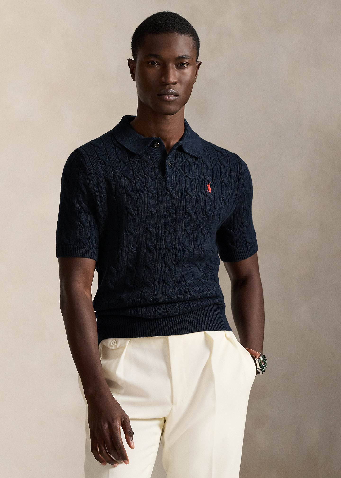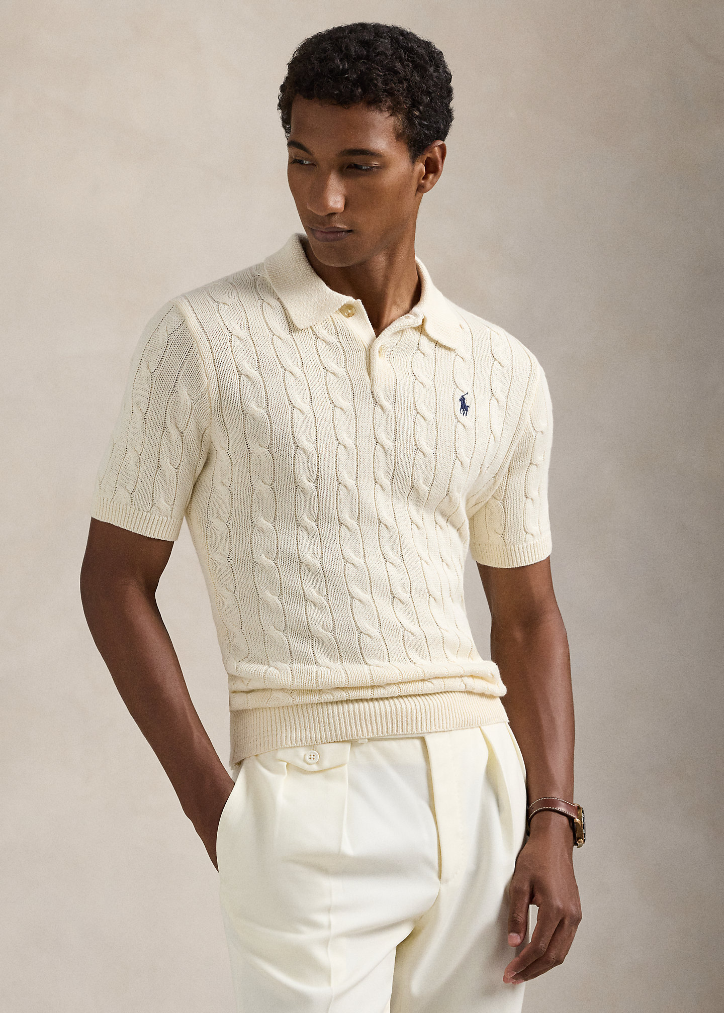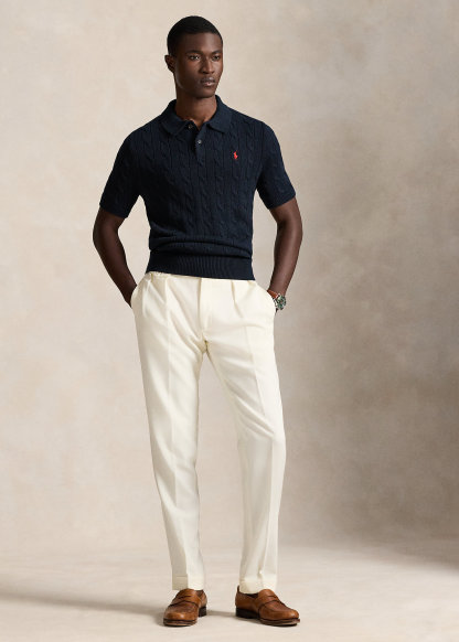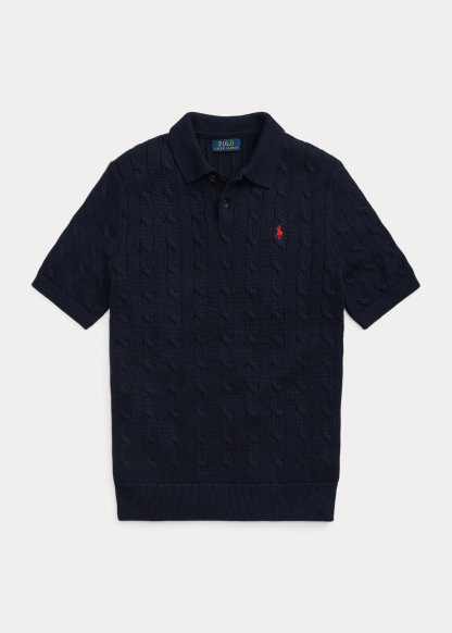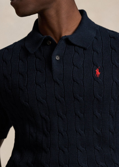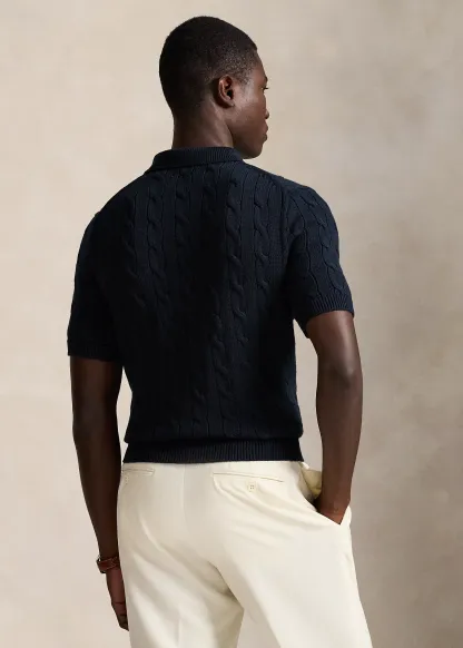 Cable-Knit Cotton Polo-Collar Sweater
