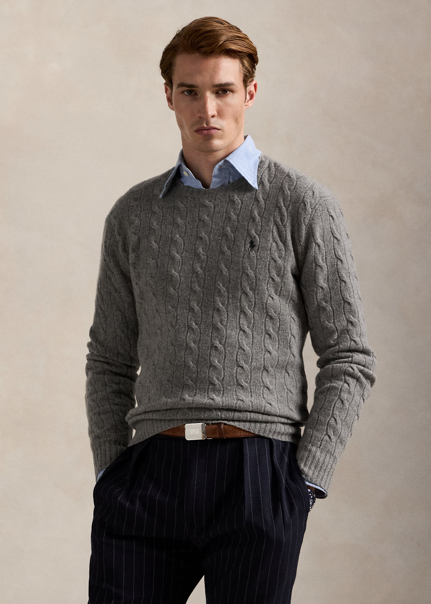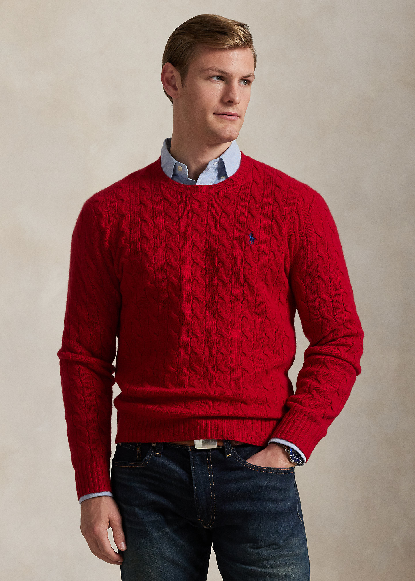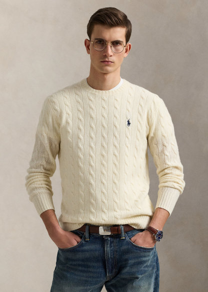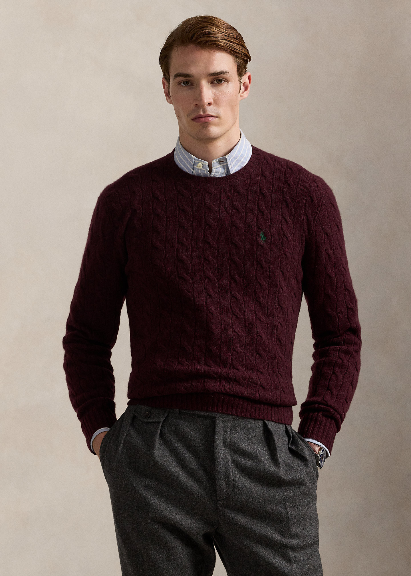 - 90% wool, 10% cashmere. Hand wash or dry clean. Imported.