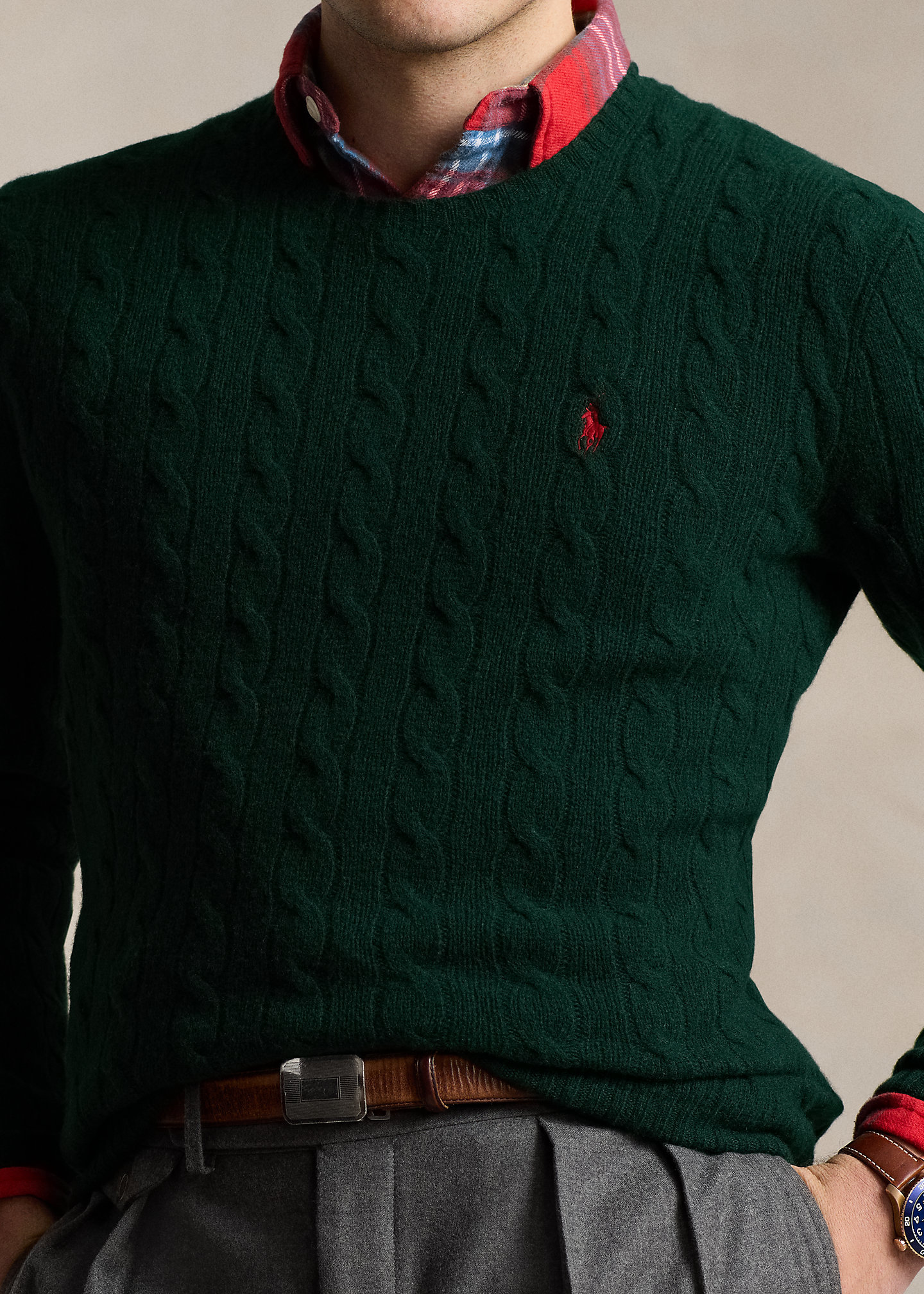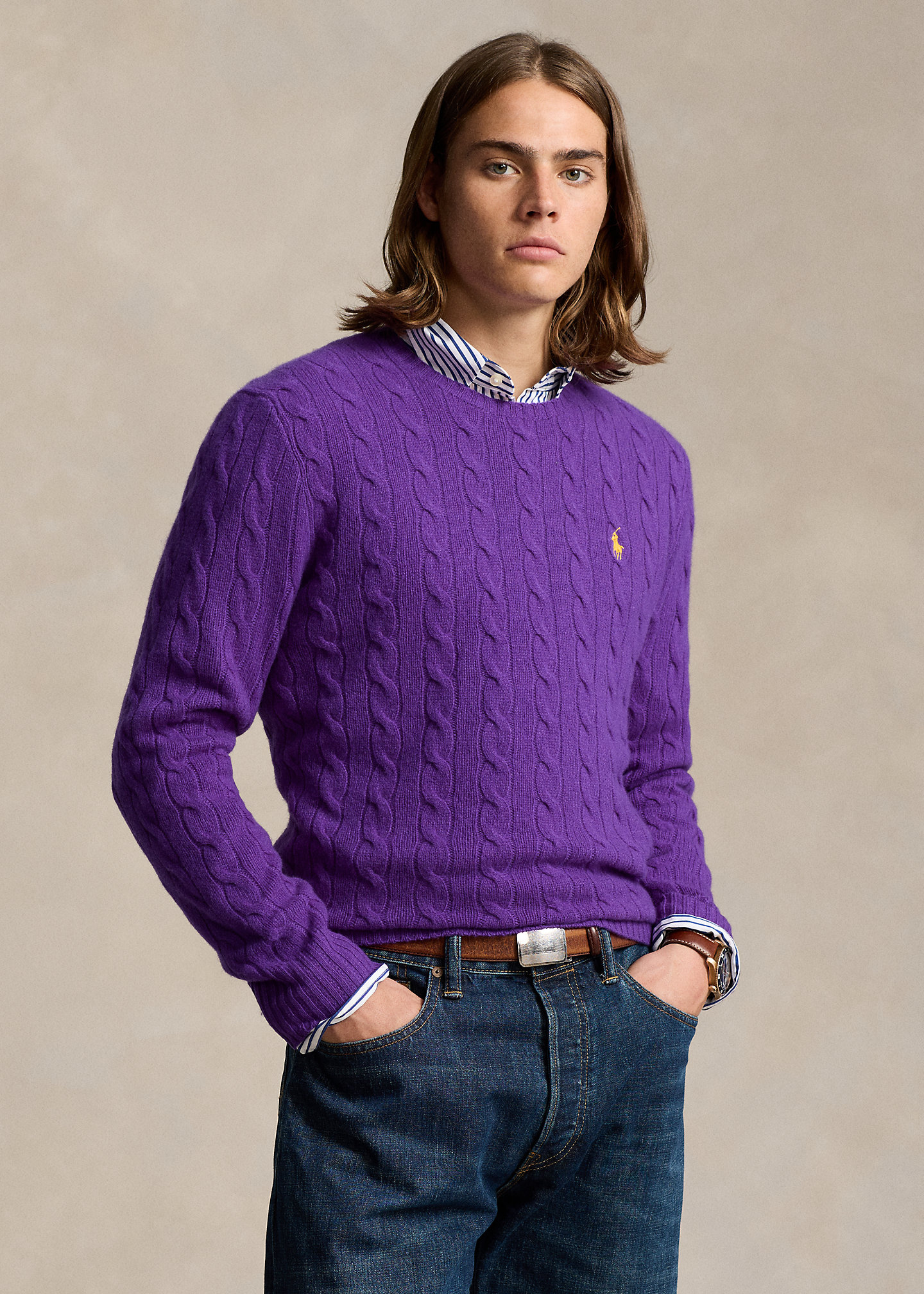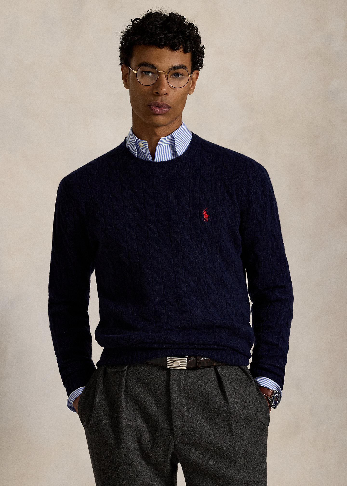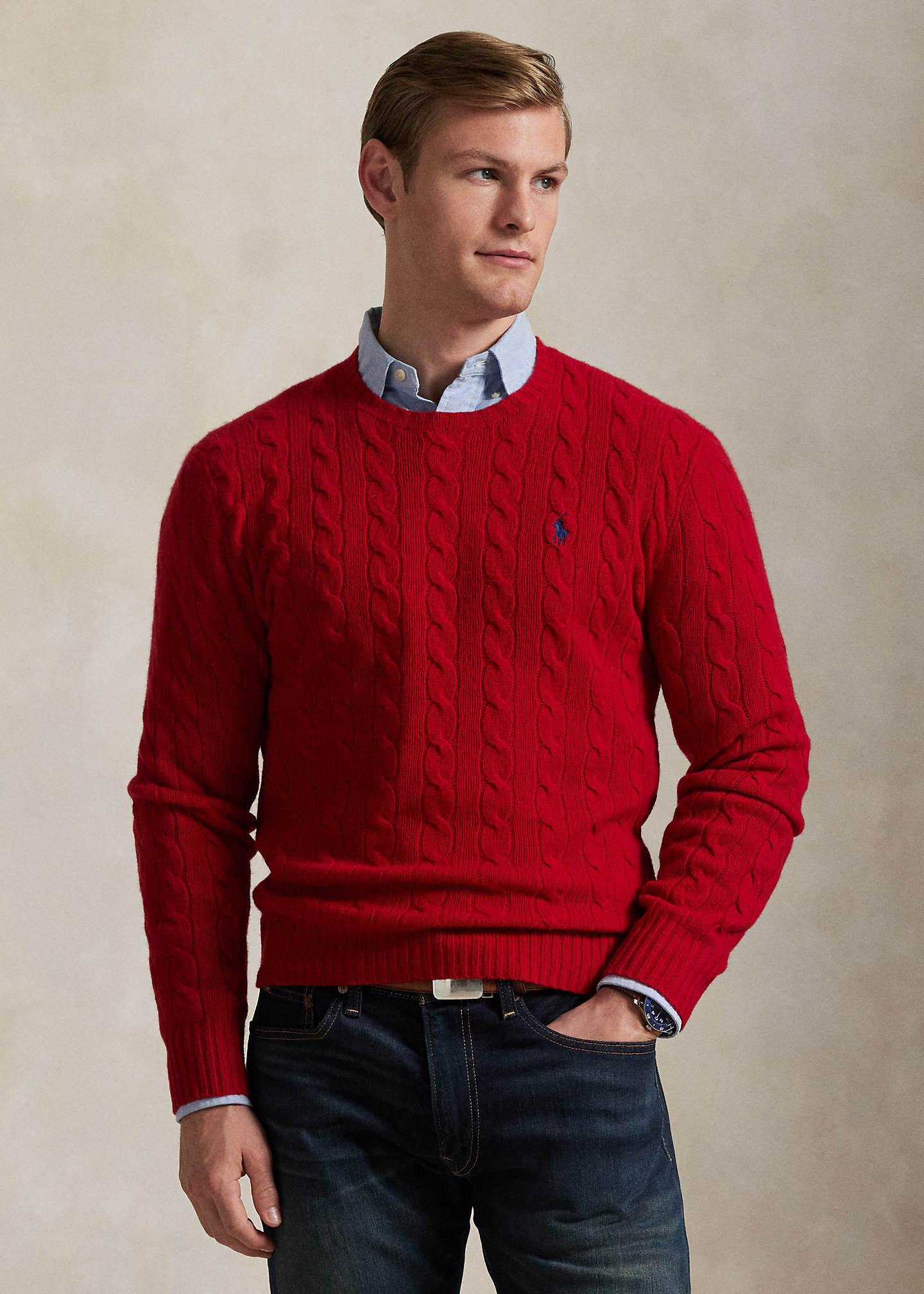 - 90% wool, 10% cashmere. Hand wash or dry clean. Imported.
