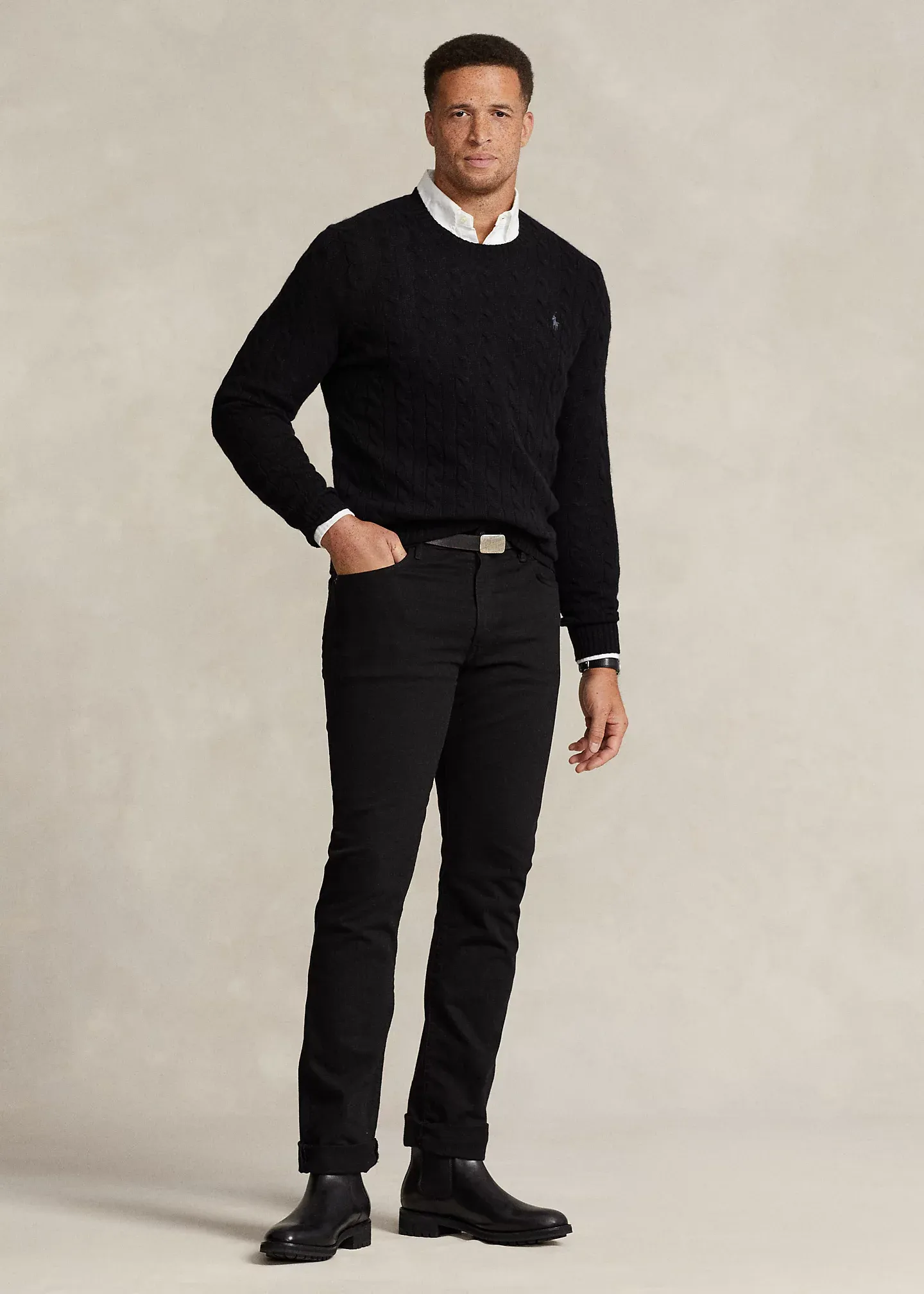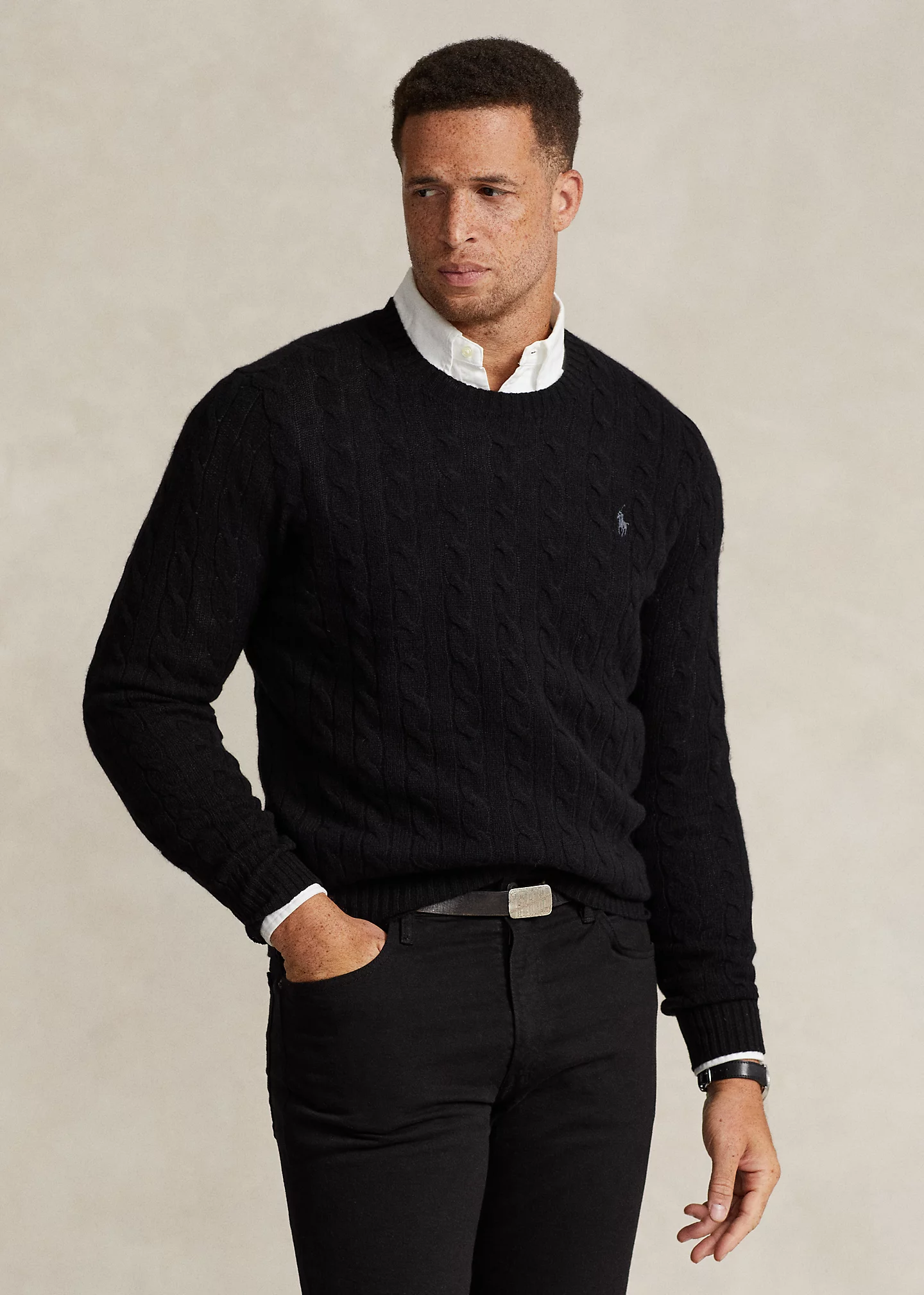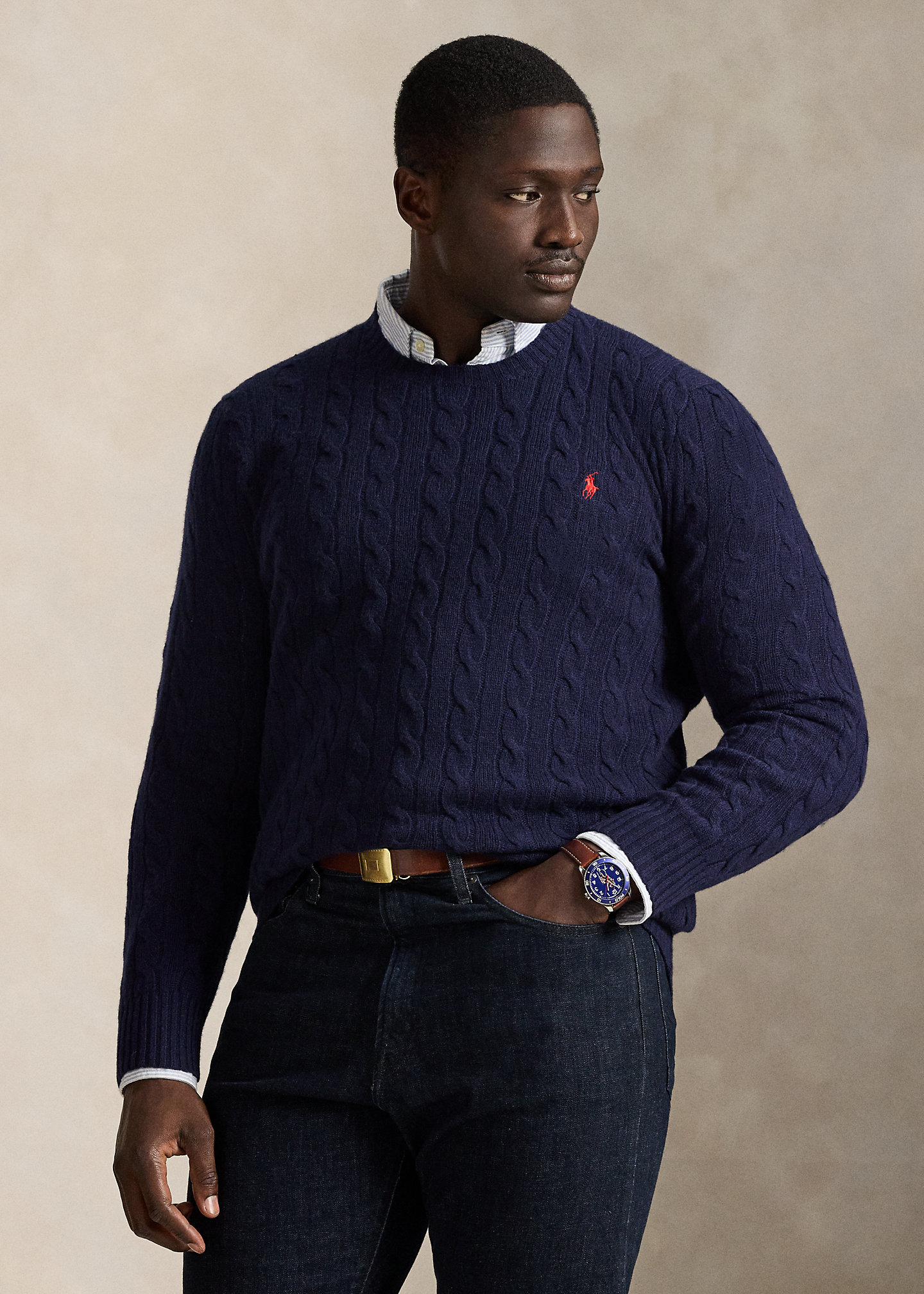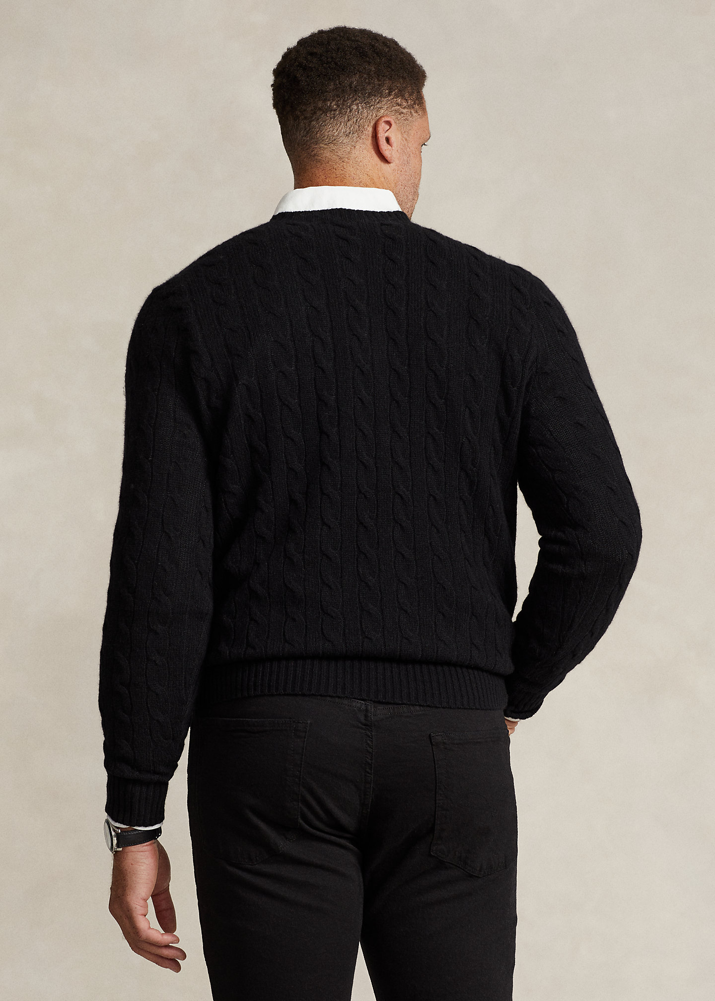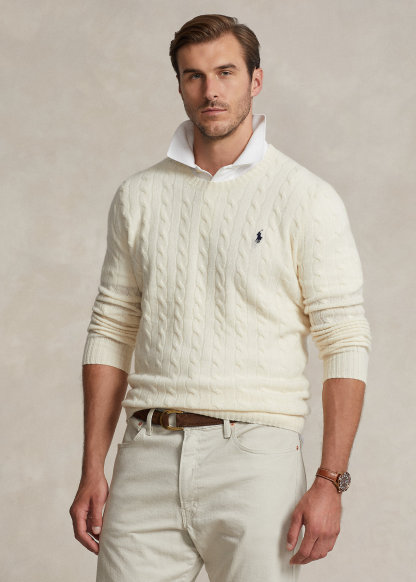 - 90% wool, 10% cashmere. Hand wash or dry clean. Imported.