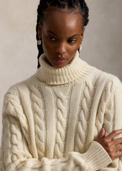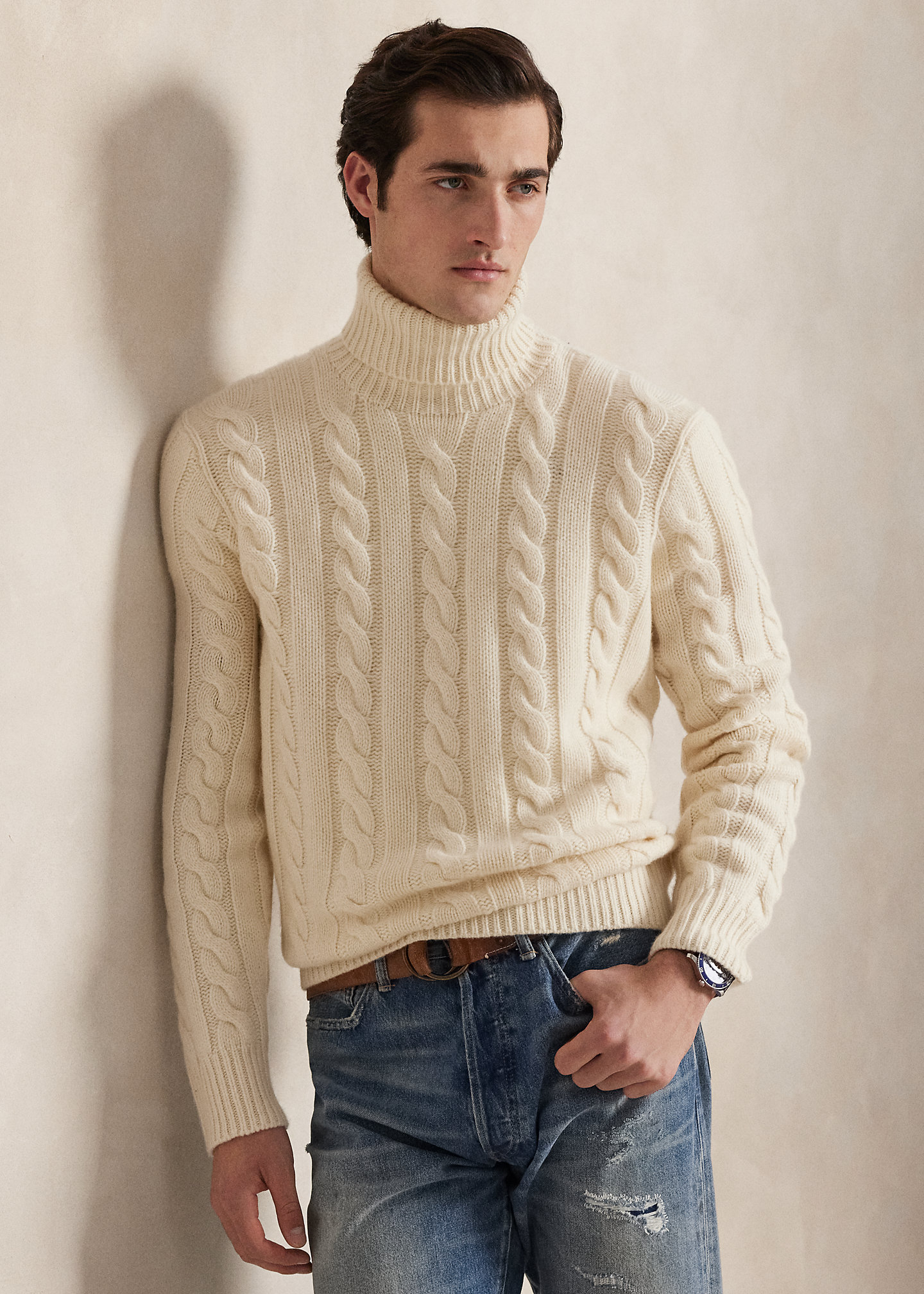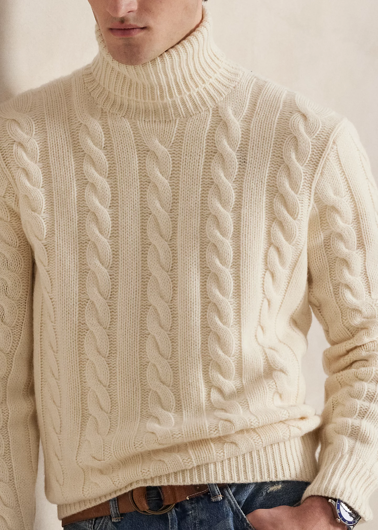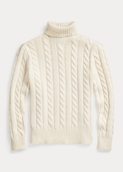 - Rib-knit turtleneck. Long sleeves with rib-knit cuffs. Rib-knit hem.