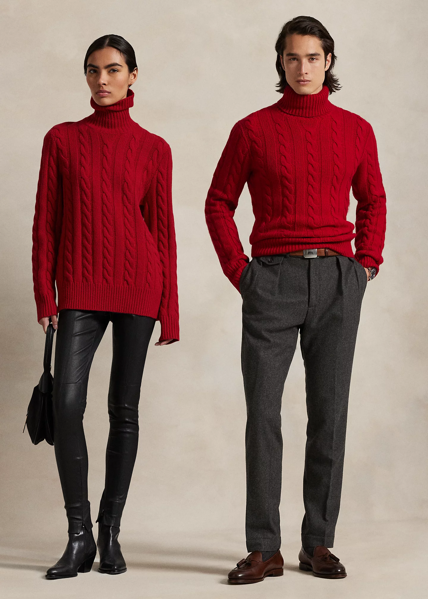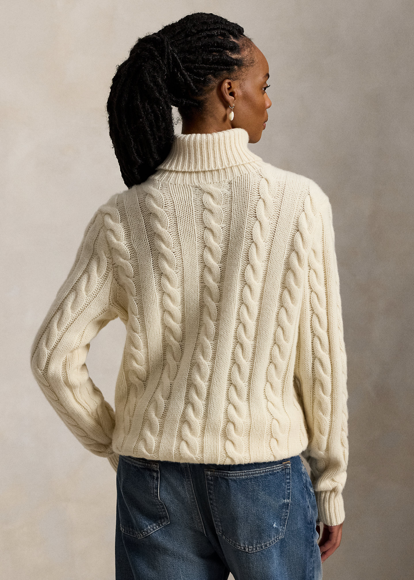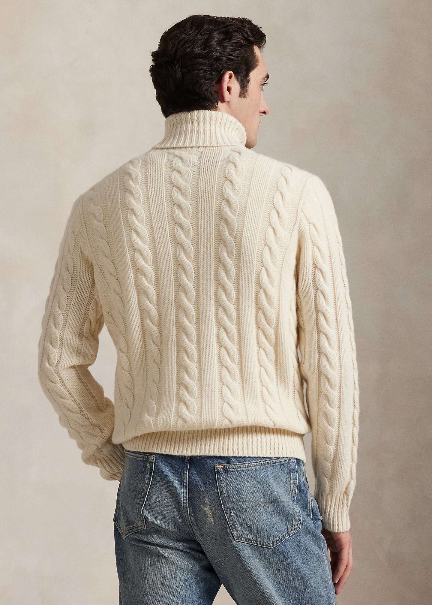 - Rib-knit turtleneck. Long sleeves with rib-knit cuffs. Rib-knit hem.