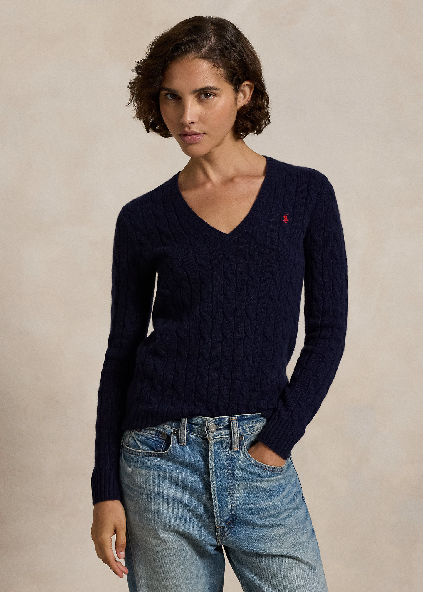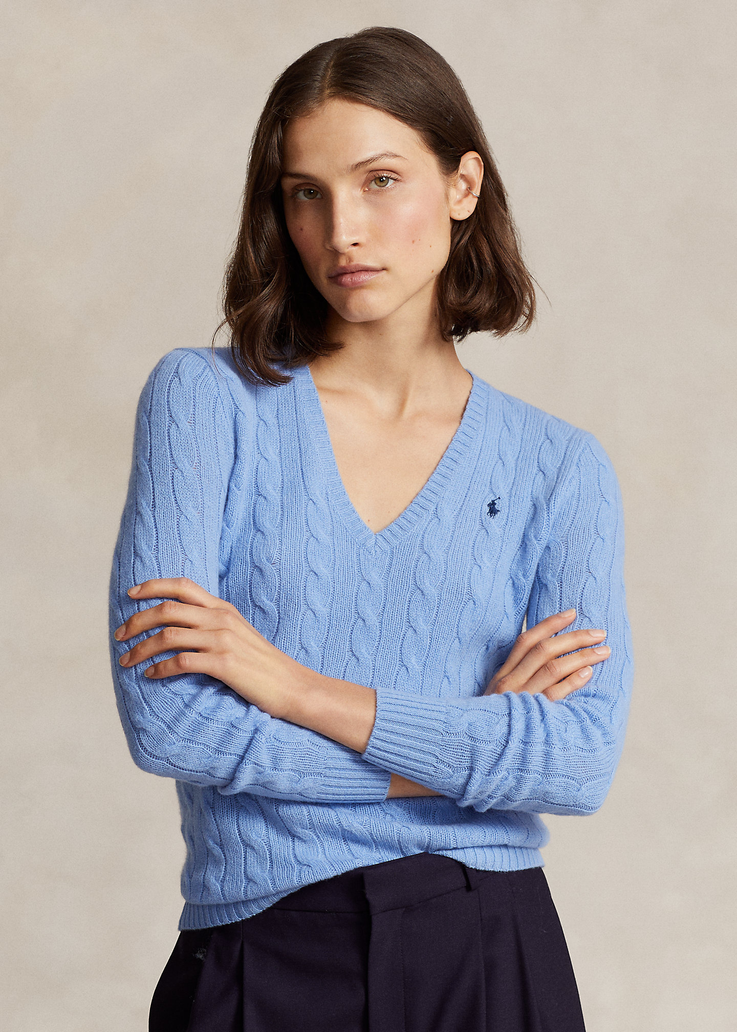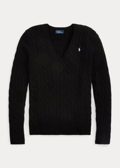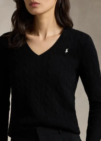 Cable-Knit Wool-Cashmere V-Neck Sweater