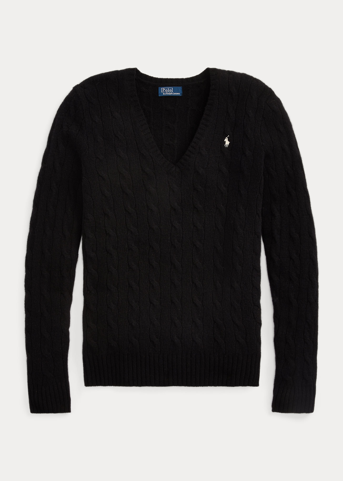 - V-neckline. Long sleeves with ribbed cuffs. Ribbed hem.
