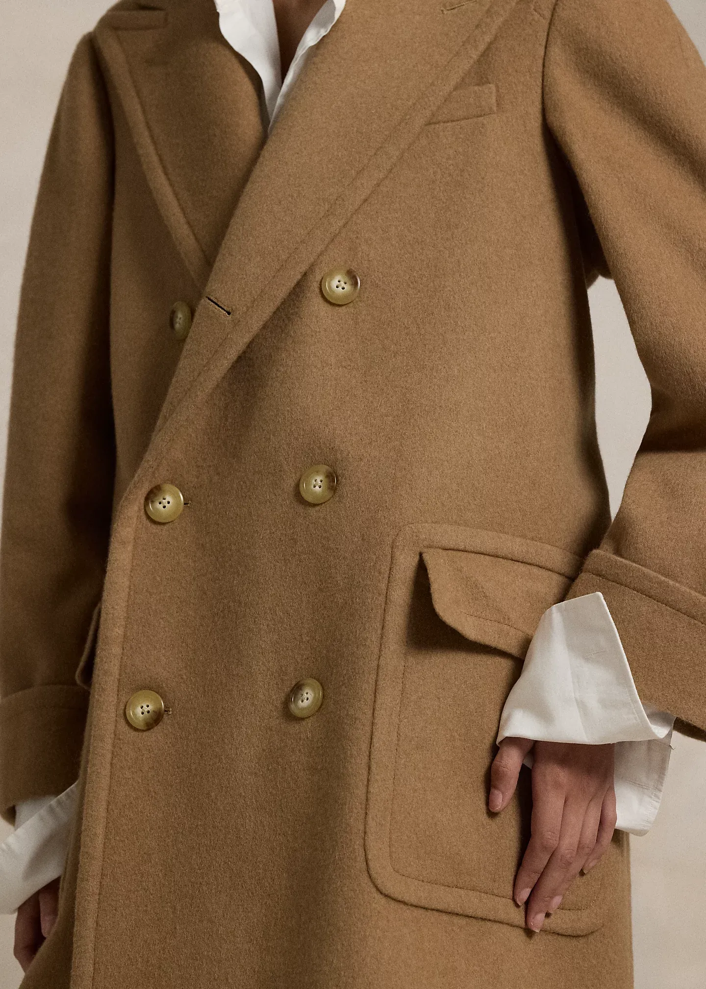 - Shell: camel hair. Lining: cupro.