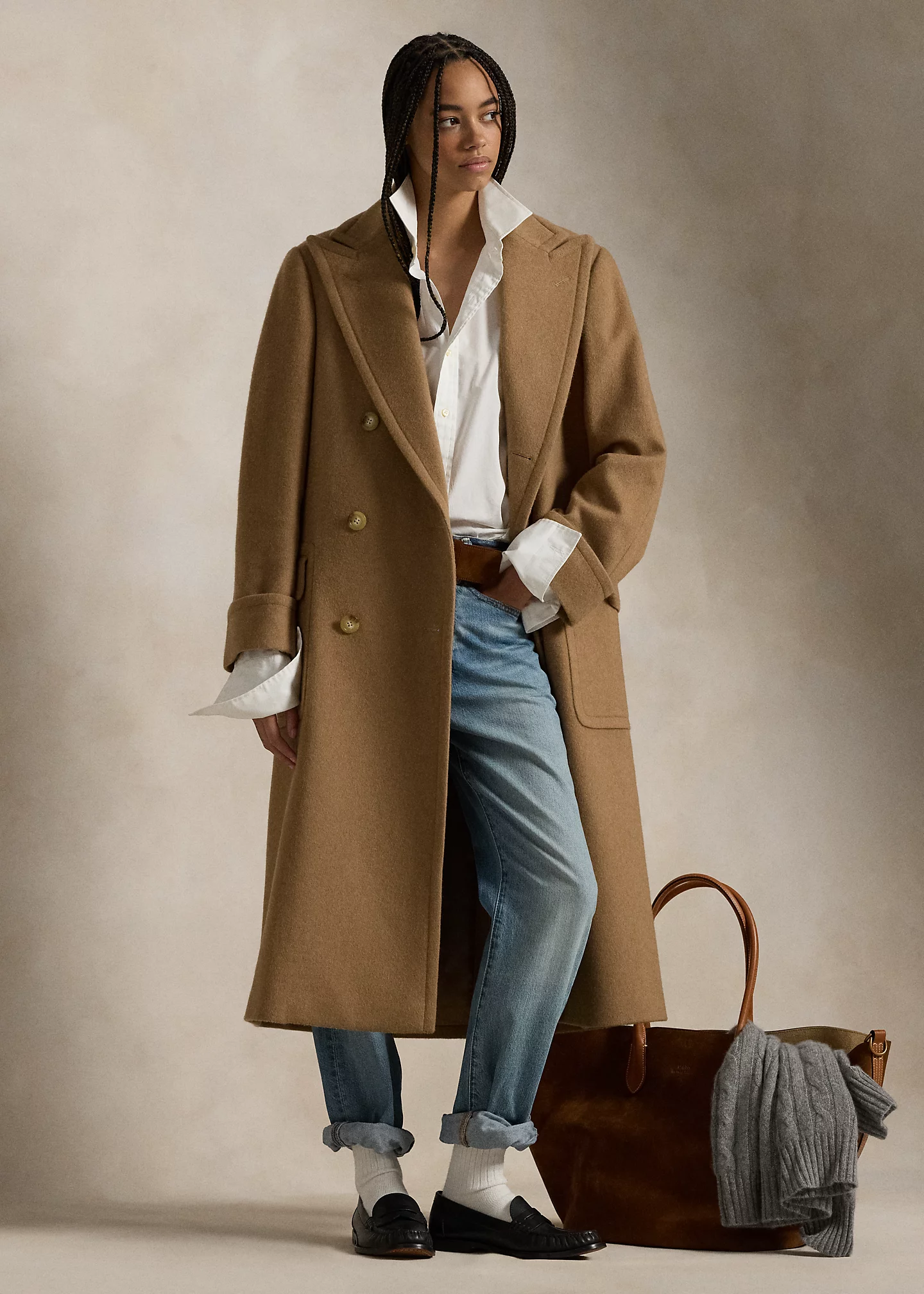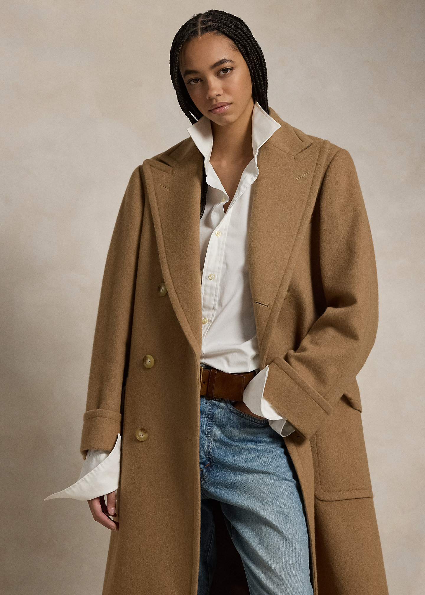 Camel-Hair Long Polo Coat