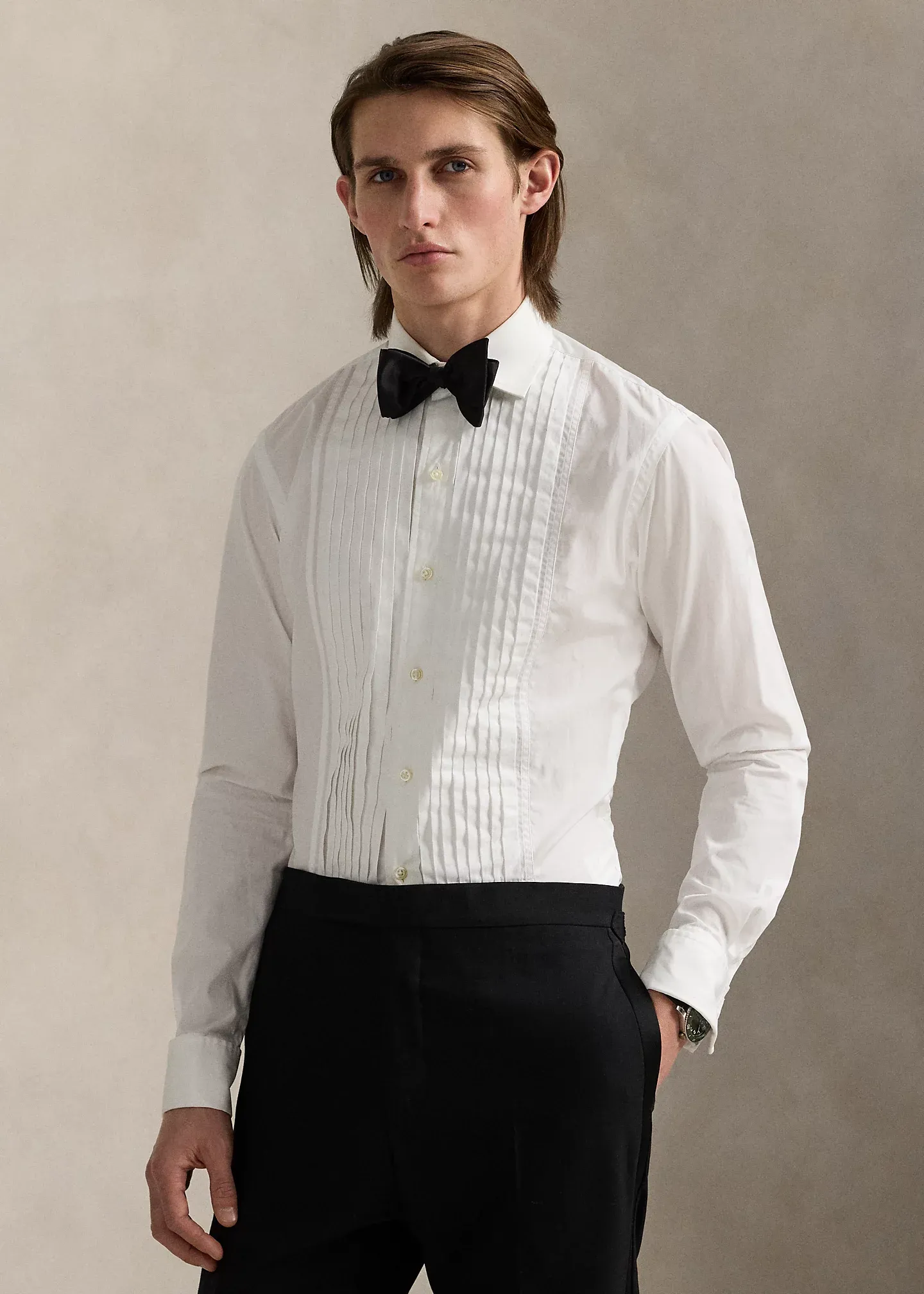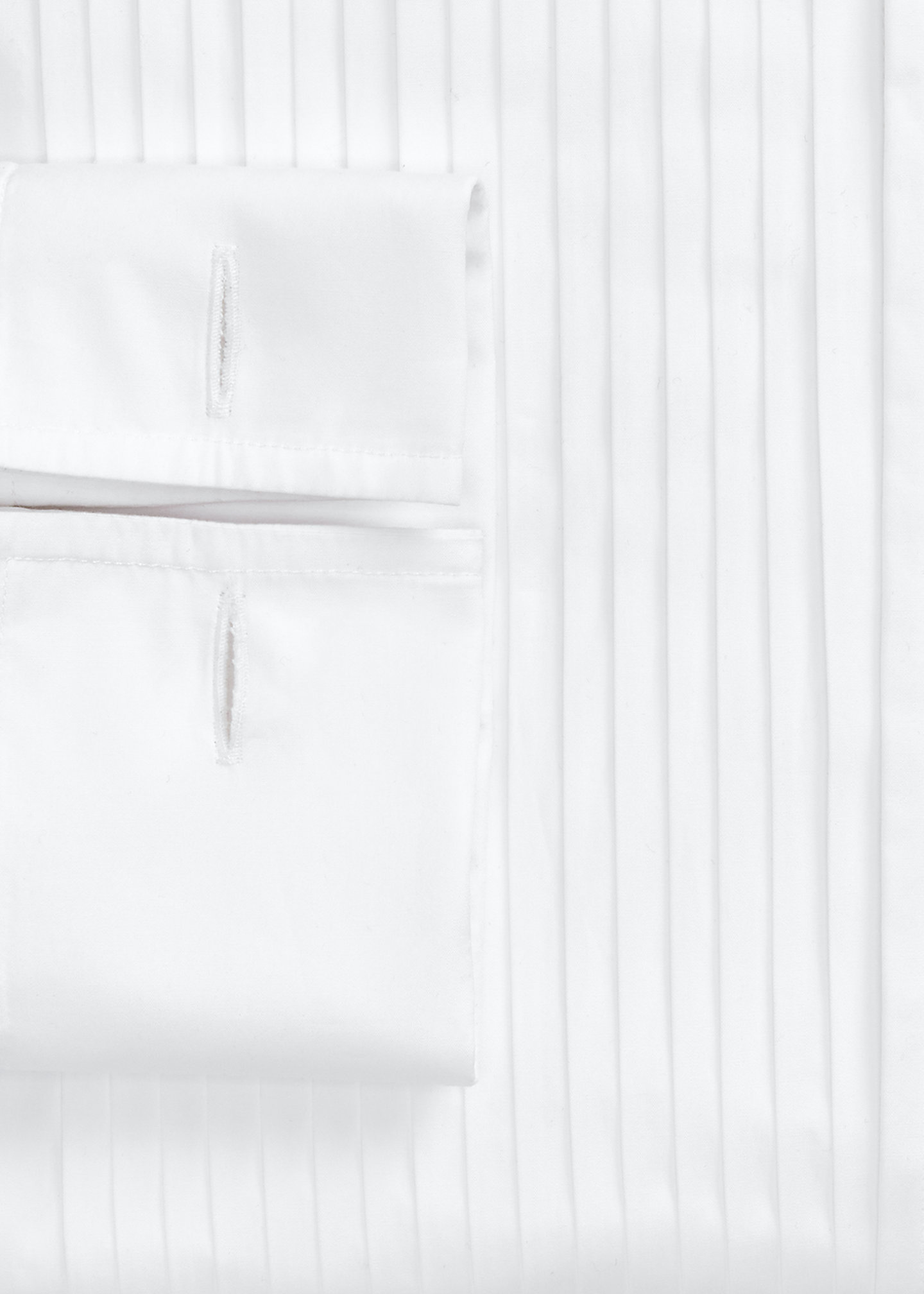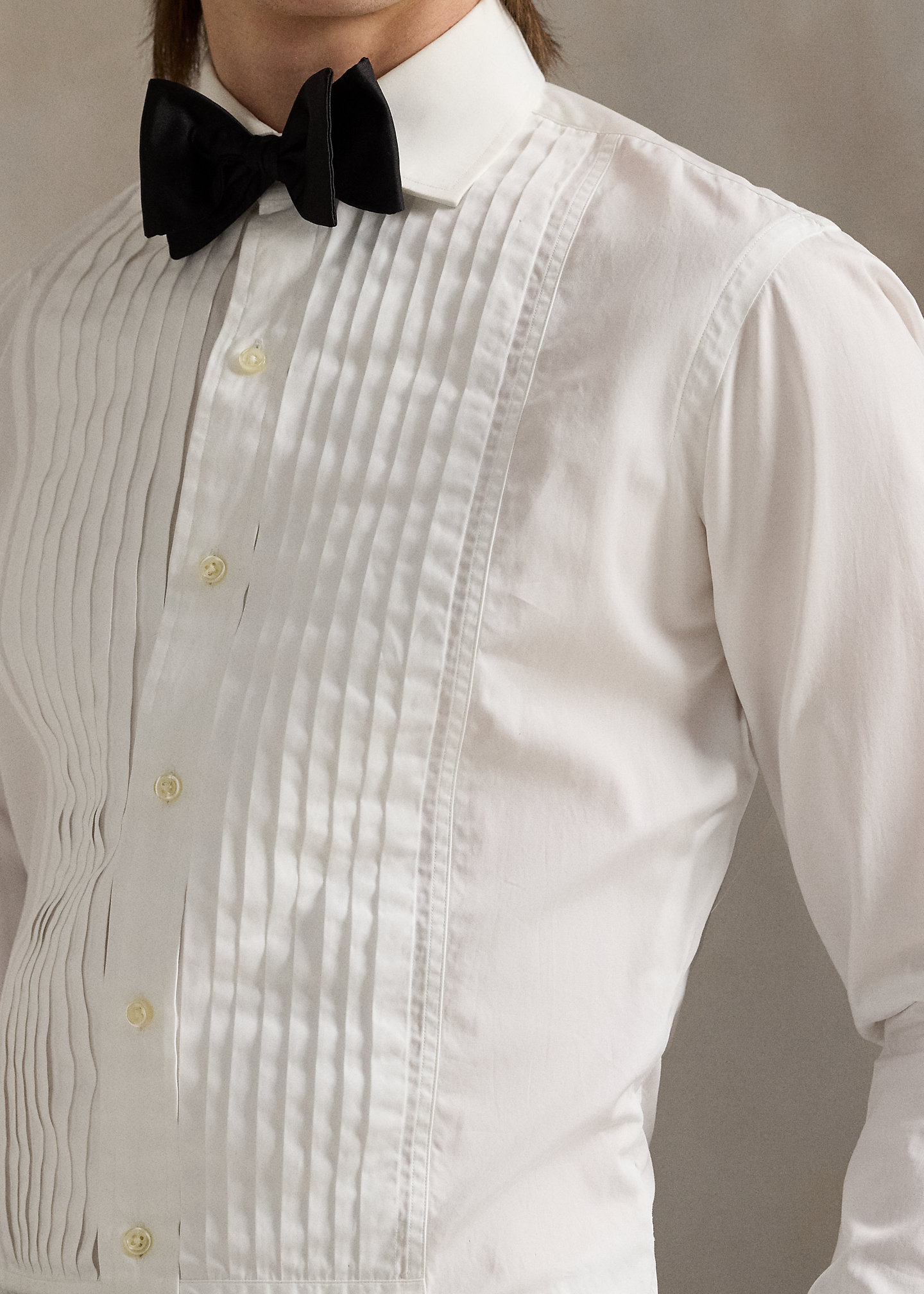 - Pleated bib. Split pleated back yoke ensures smooth, contoured shoulders.