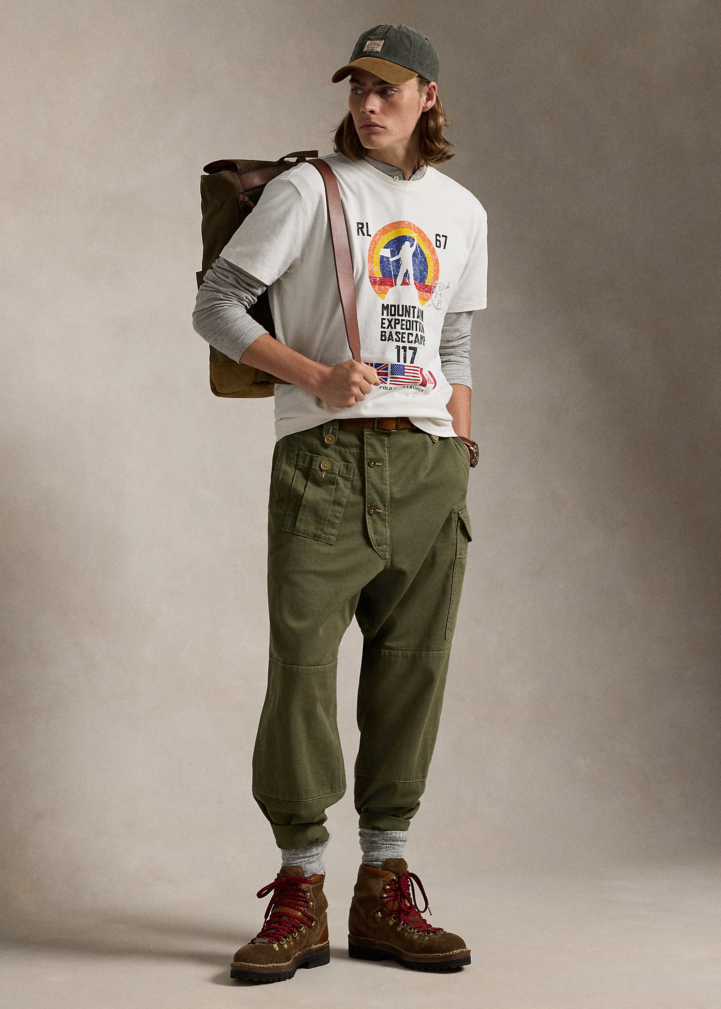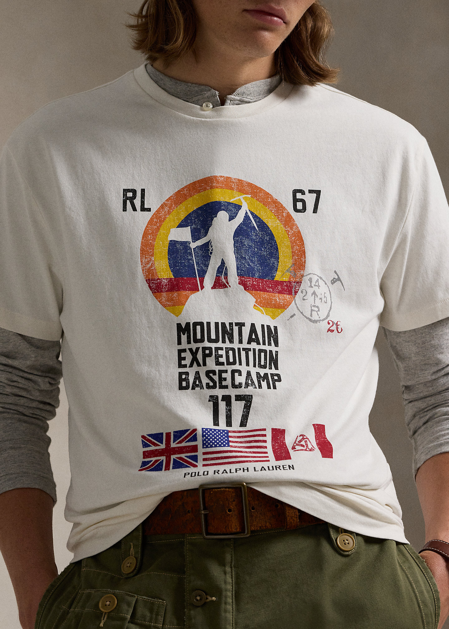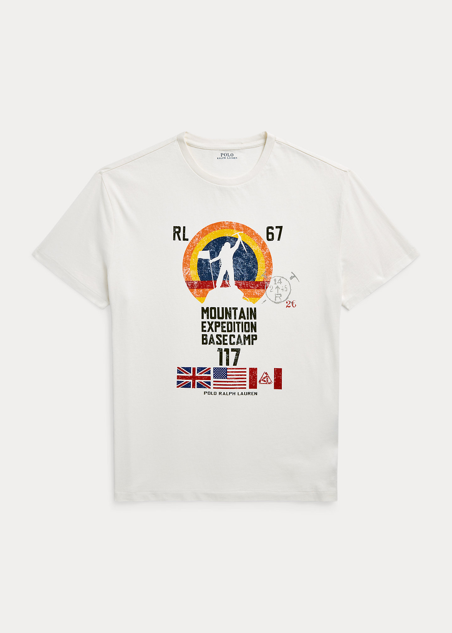 - “RL 67 Mountain Expedition Basecamp 117” and a climbing-inspired graphic printed at the center front.