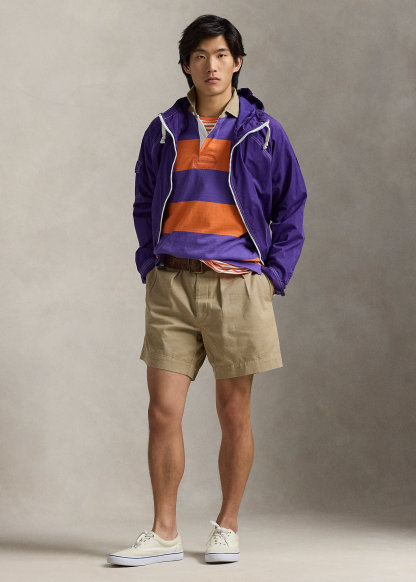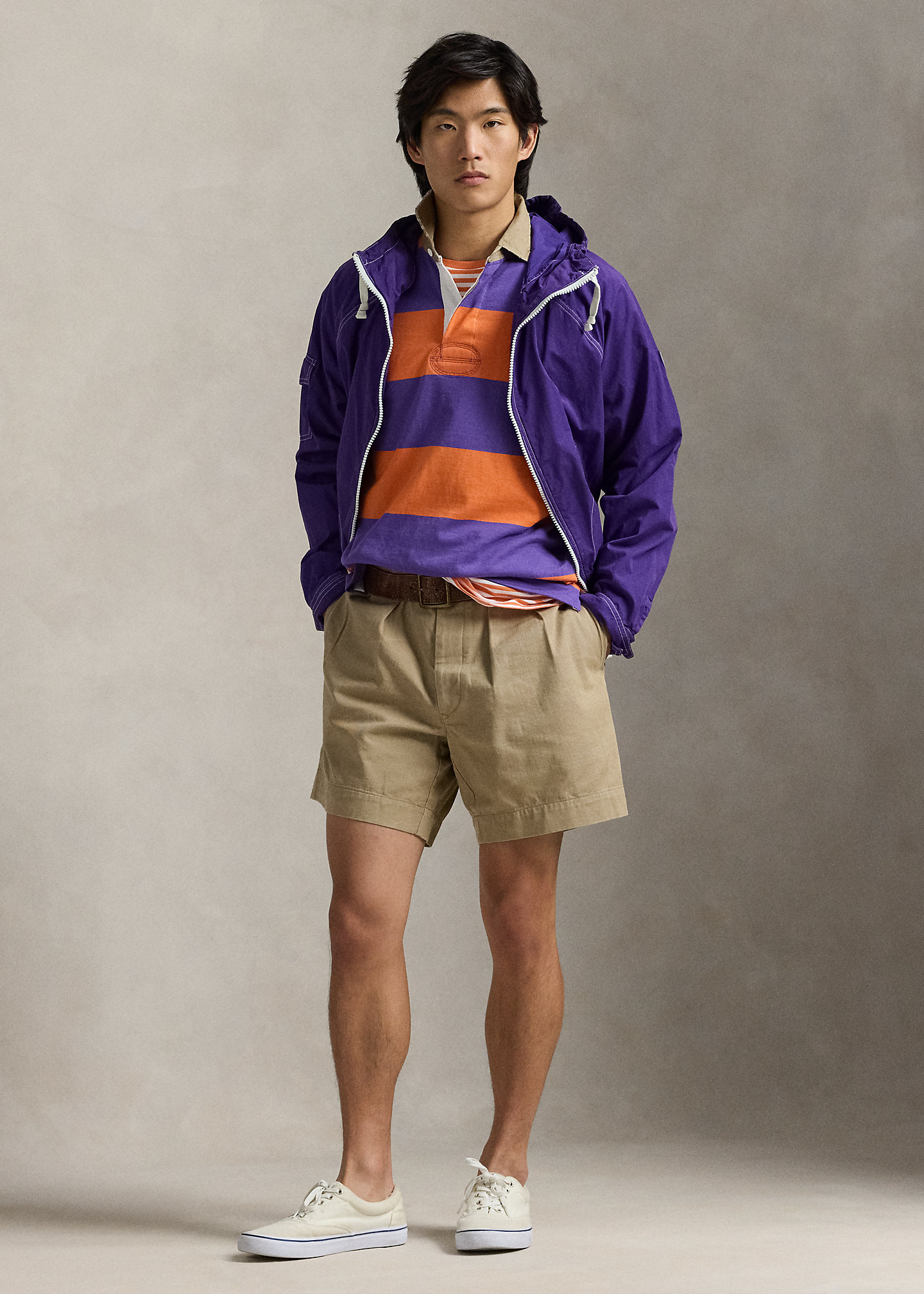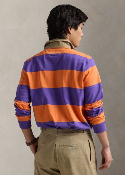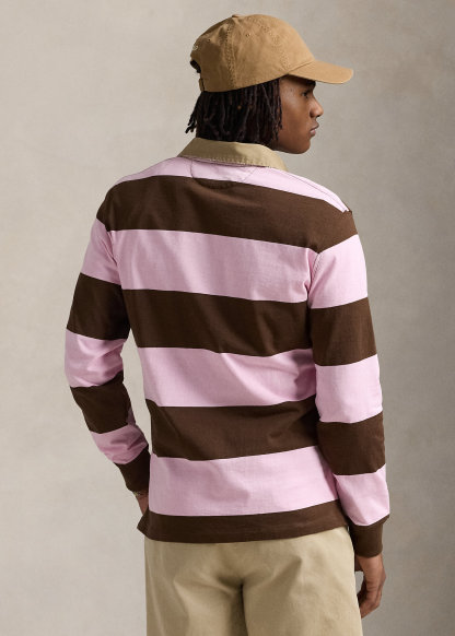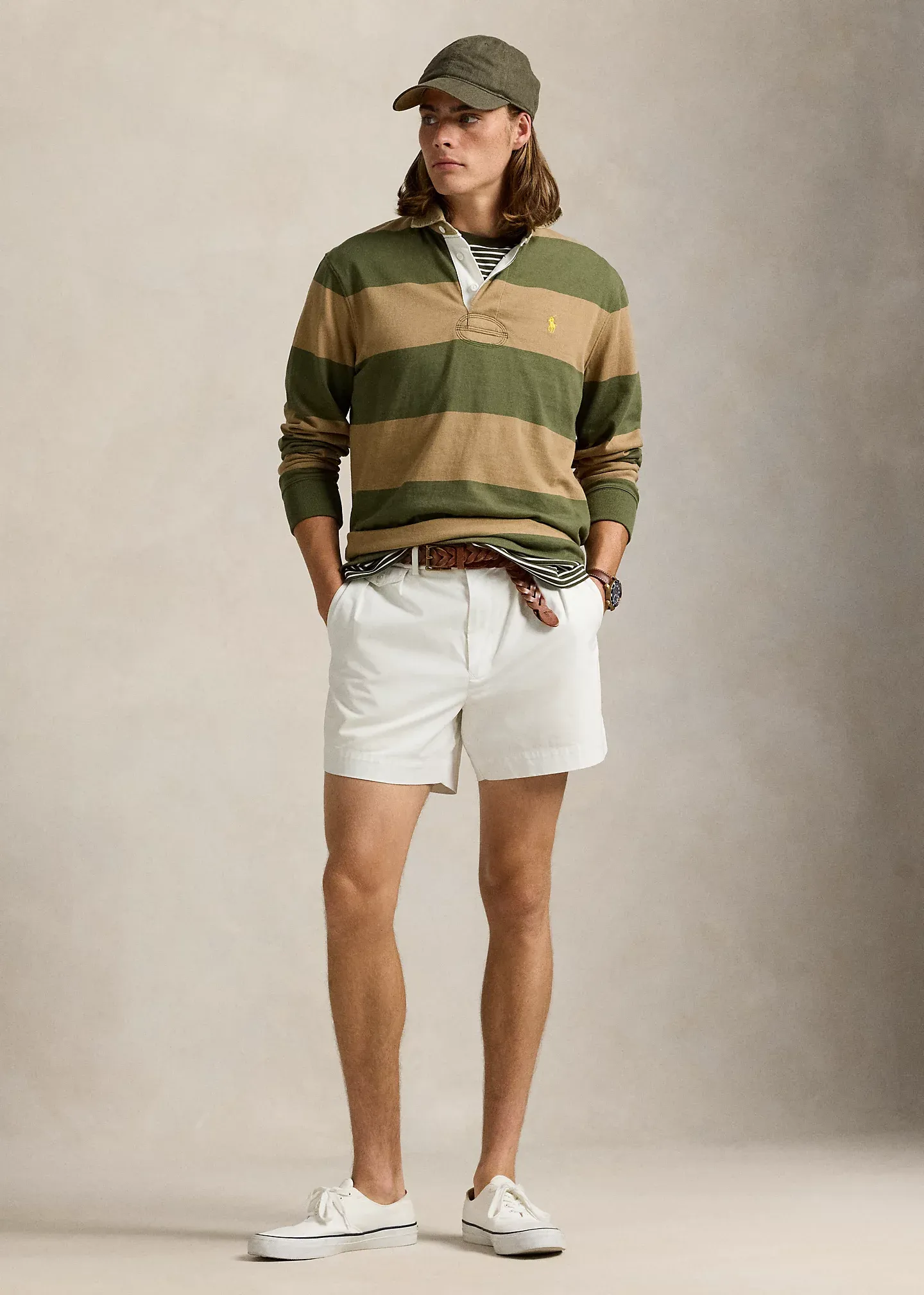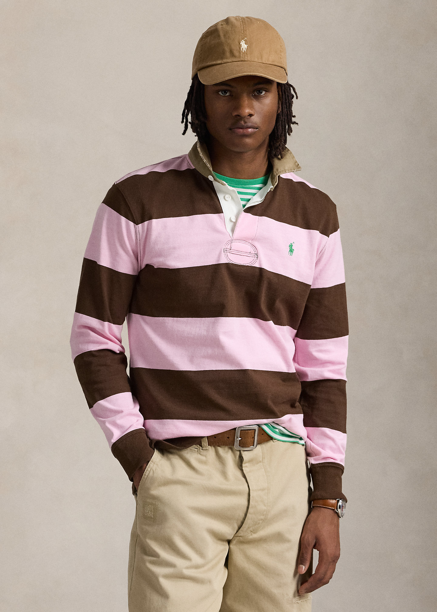 - Khaki rugby collar. Three-button rugby placket. Rubber buttons.